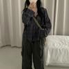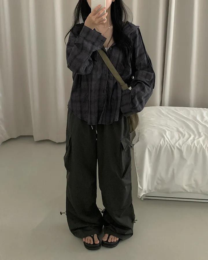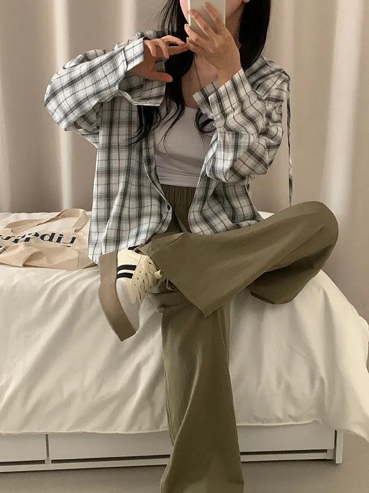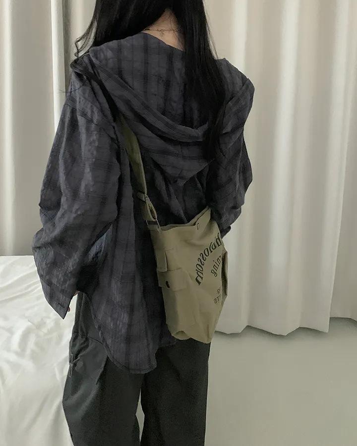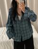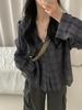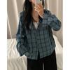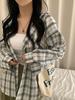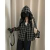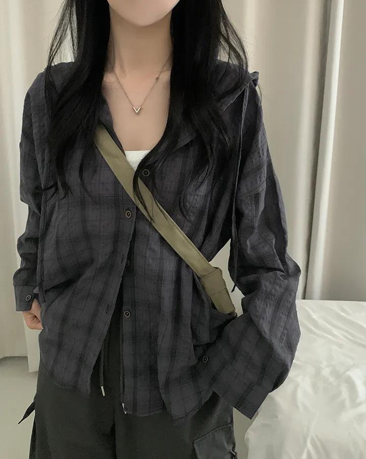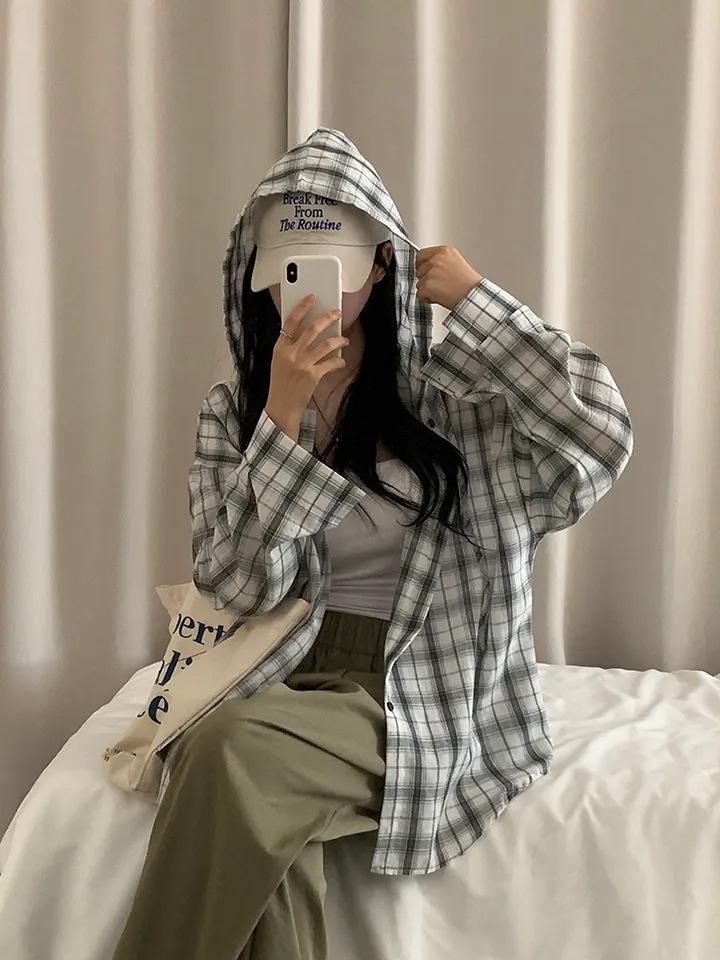 Chaqueta camisa a cuadros versátil estilo coreano con capucha para mujer, camisa de manga larga a cuadros protectora solar