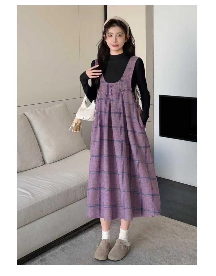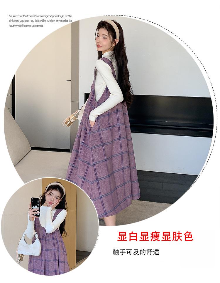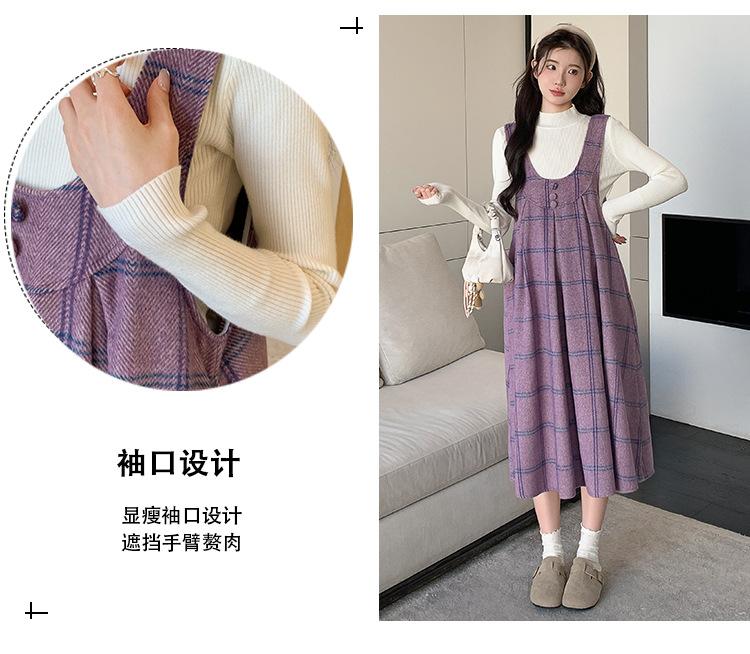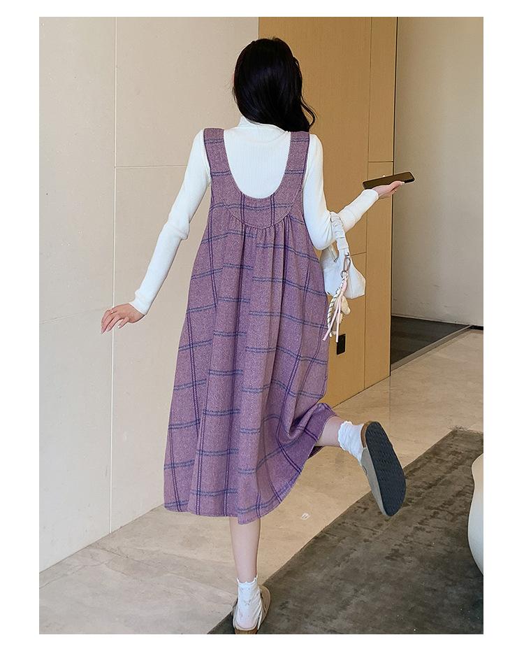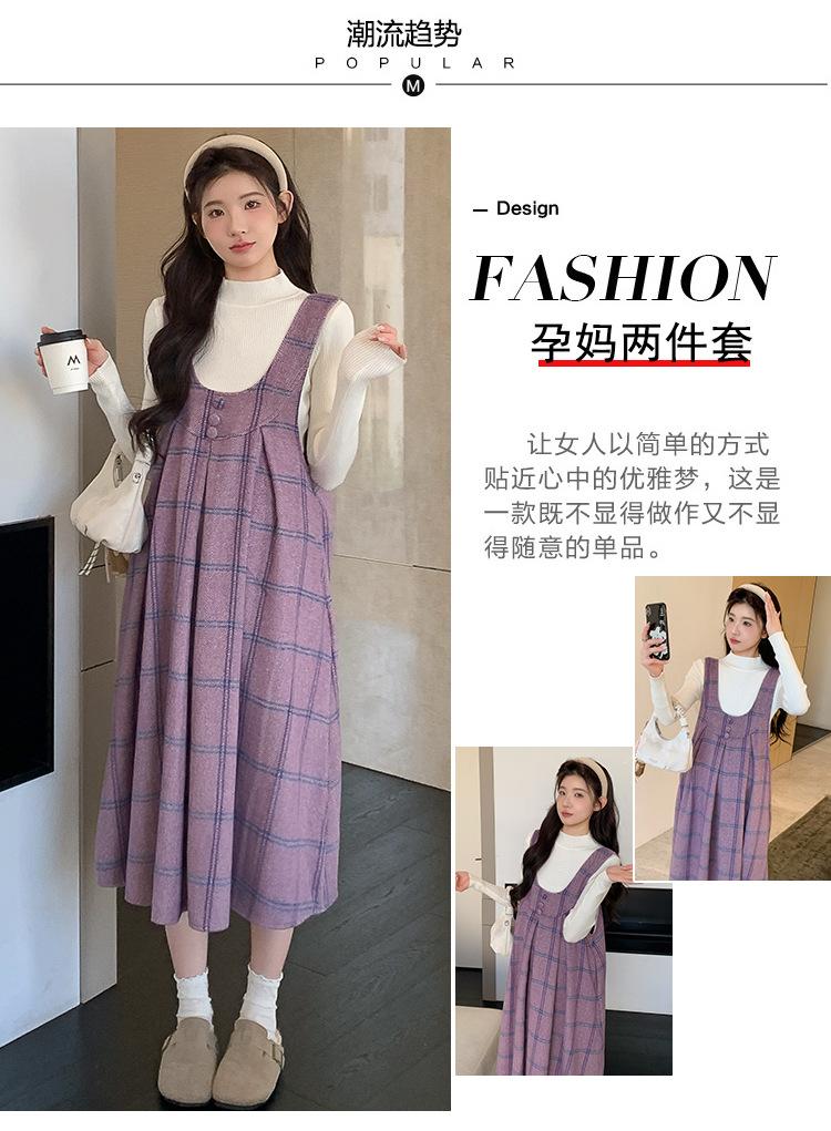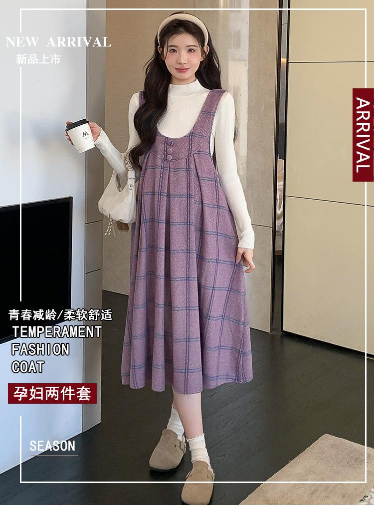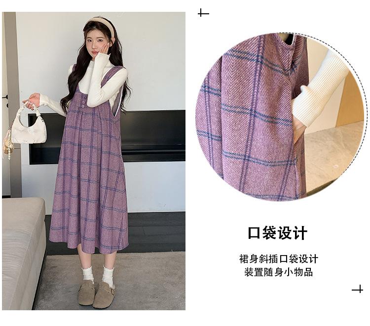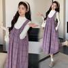 Conjunto de Vestido Chaleco de Maternidad 2025 Vestido de Maternidad Otoño Invierno Moda Lana Cuadros Media Longitud Conjunto de Dos Piezas de Maternidad