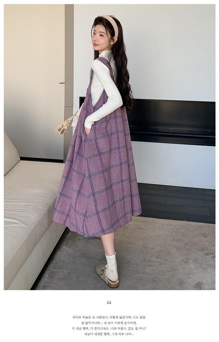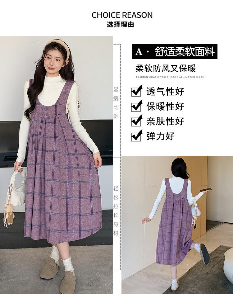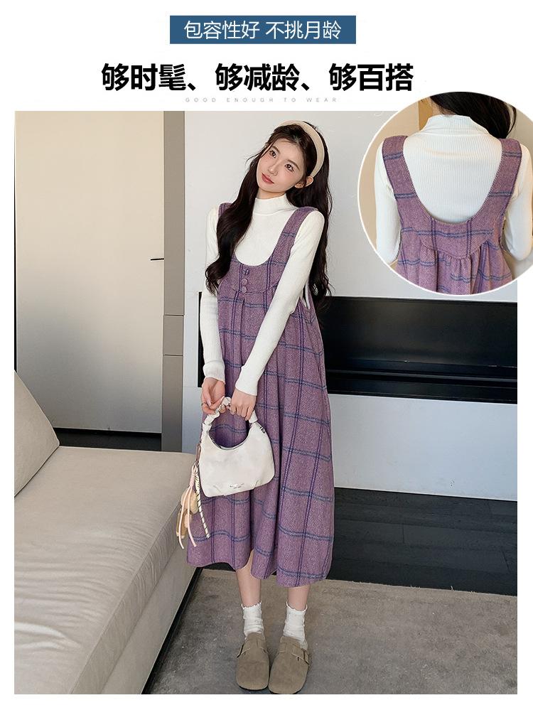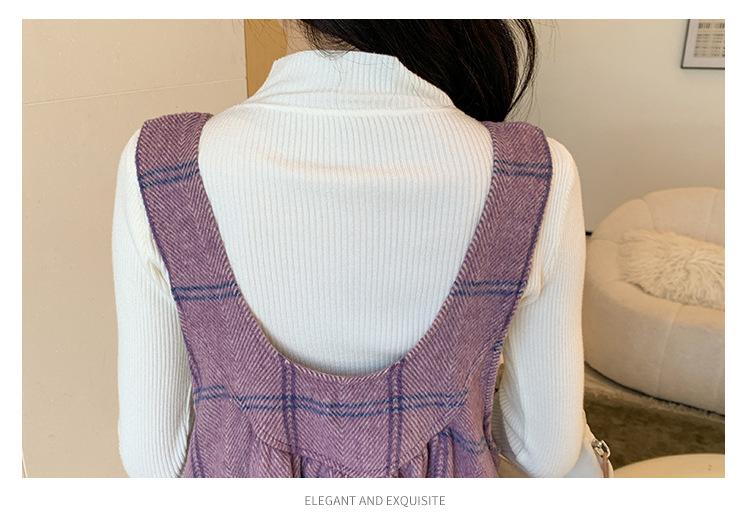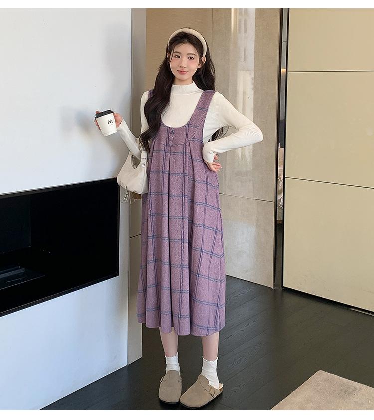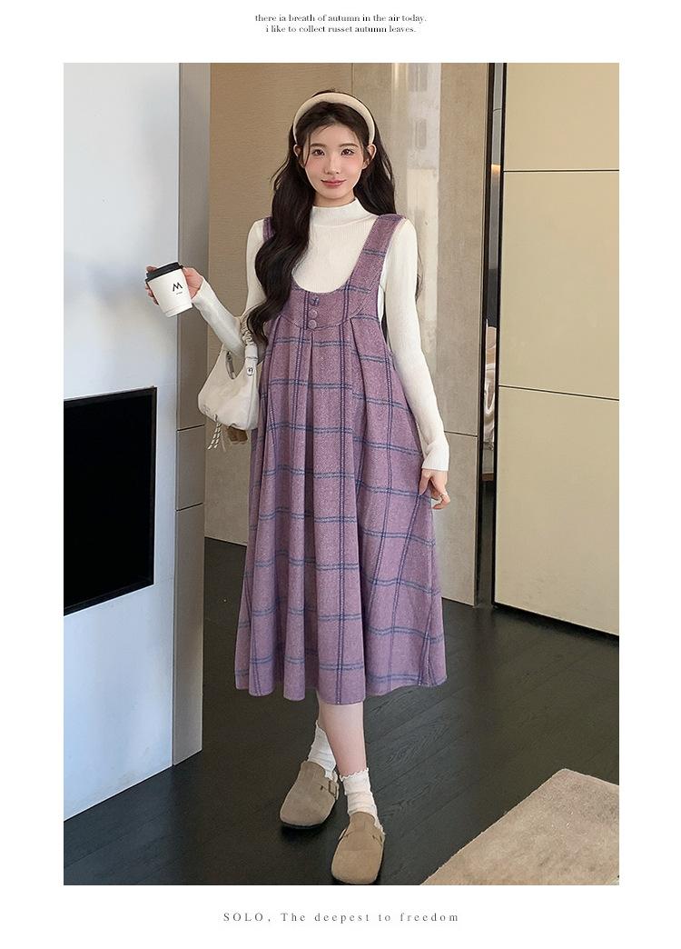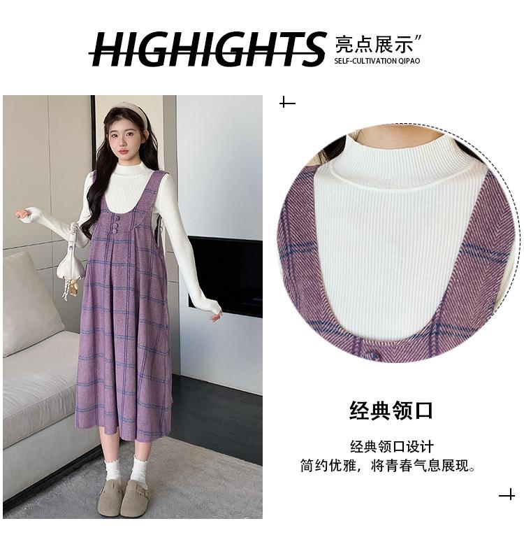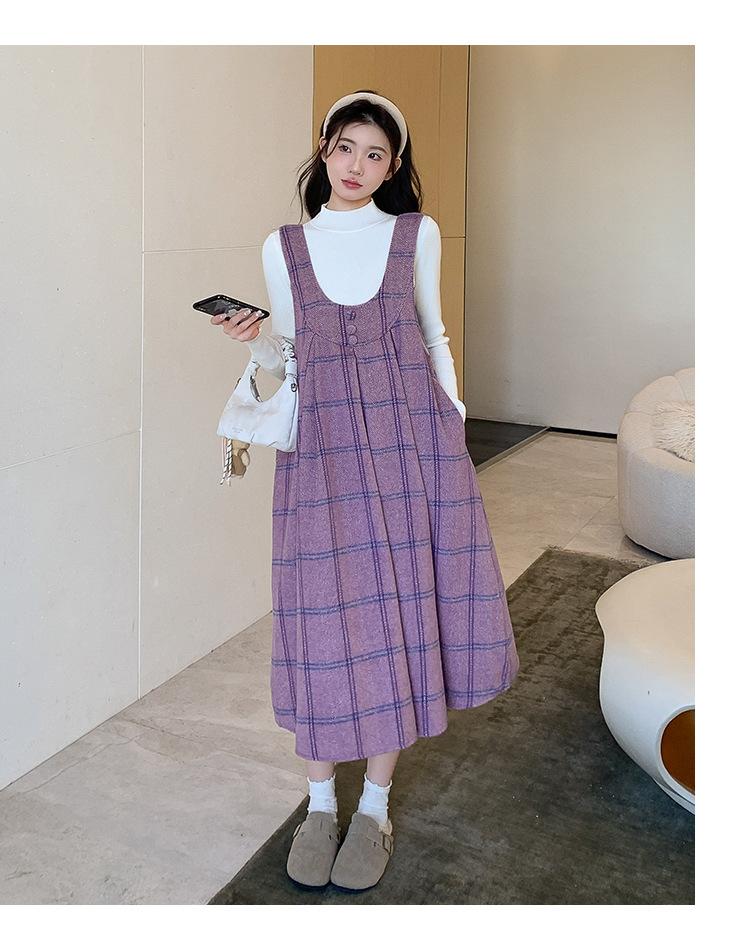 Conjunto de Vestido Chaleco de Maternidad 2025 Vestido de Maternidad Otoño Invierno Moda Lana Cuadros Media Longitud Conjunto de Dos Piezas de Maternidad