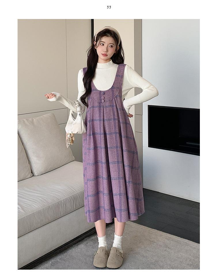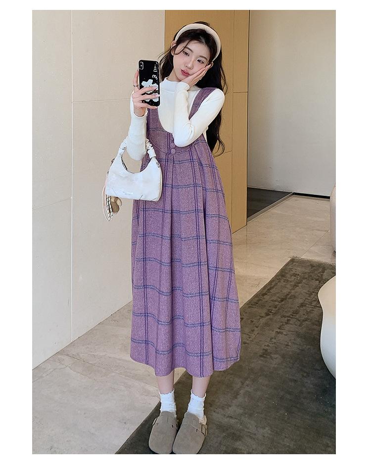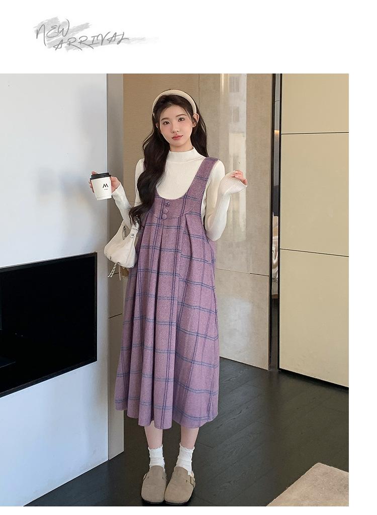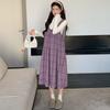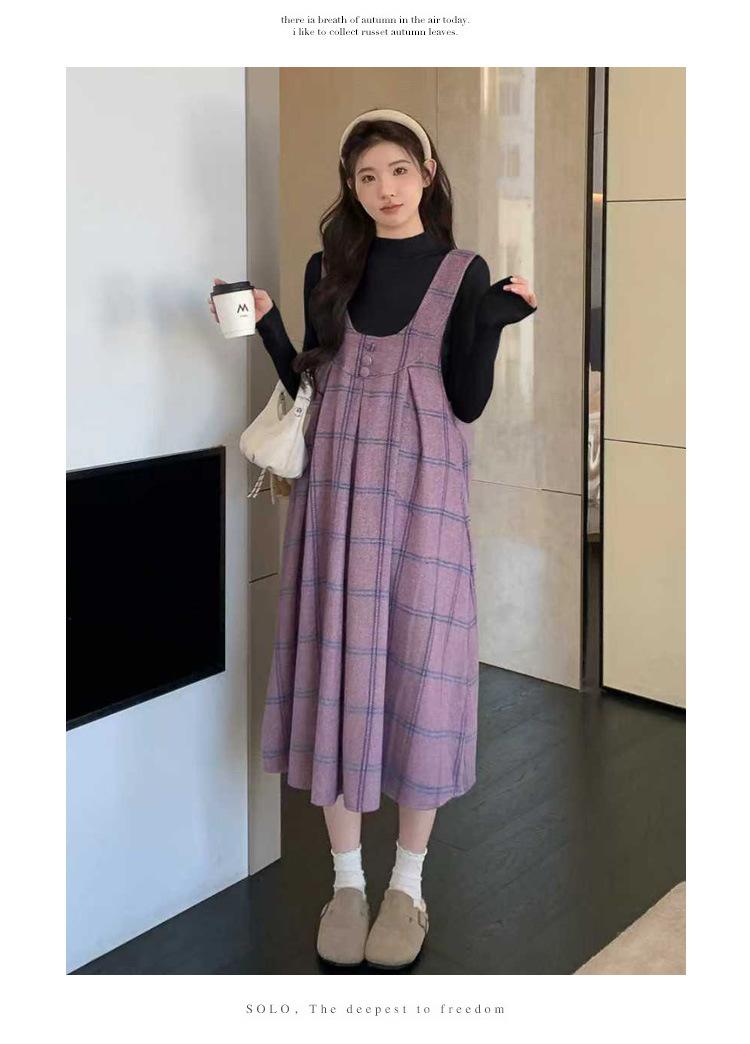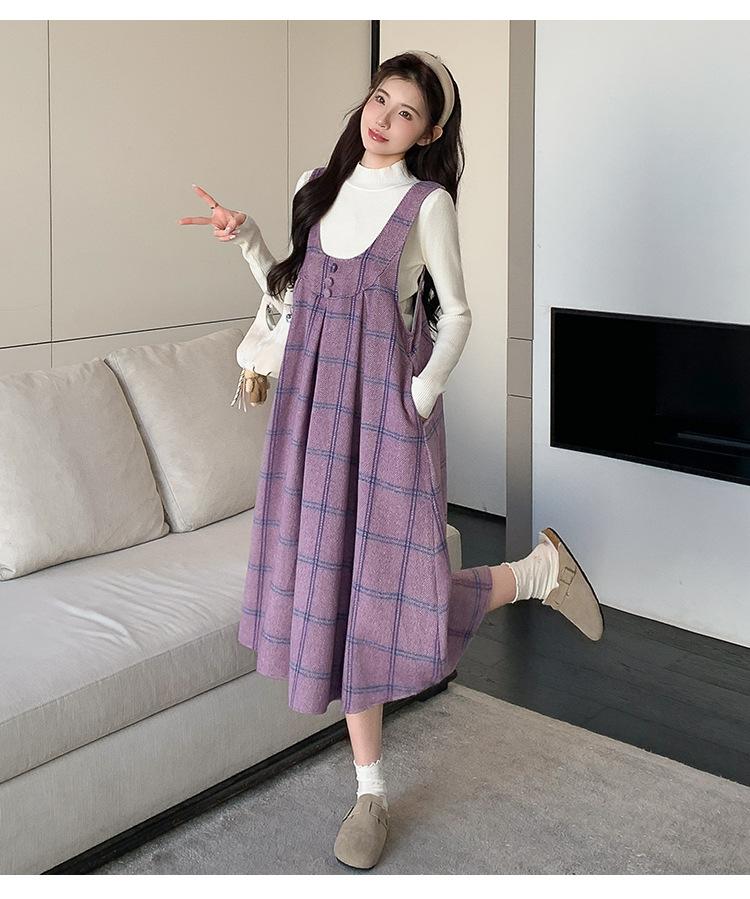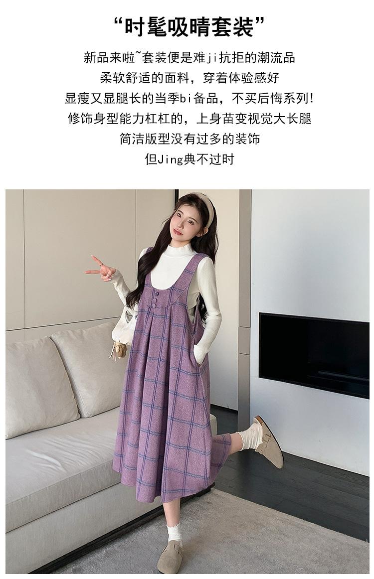 Conjunto de Vestido Chaleco de Maternidad 2025 Vestido de Maternidad Otoño Invierno Moda Lana Cuadros Media Longitud Conjunto de Dos Piezas de Maternidad
