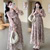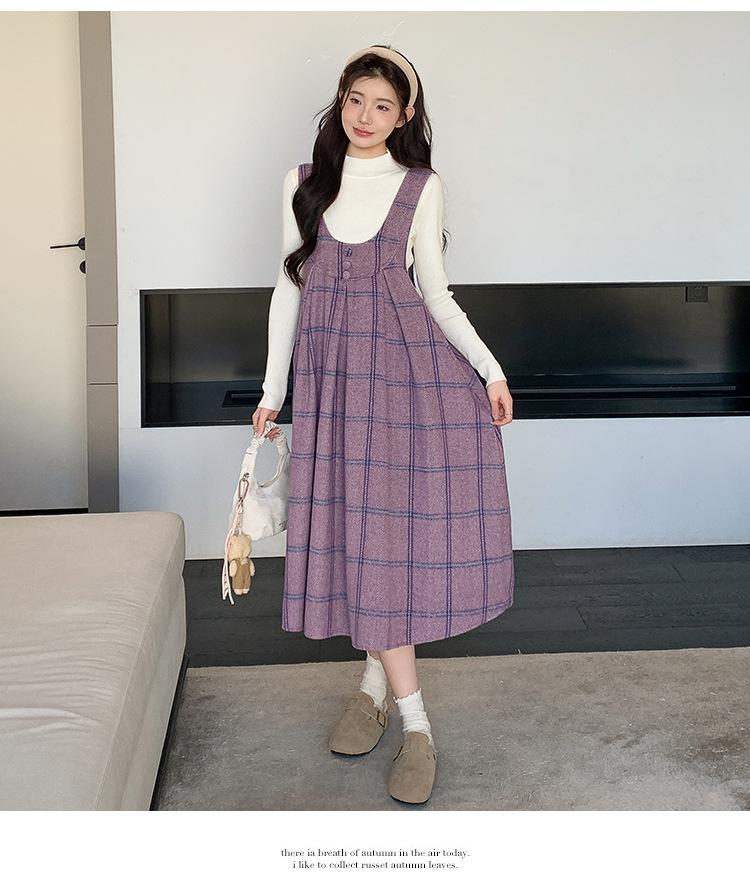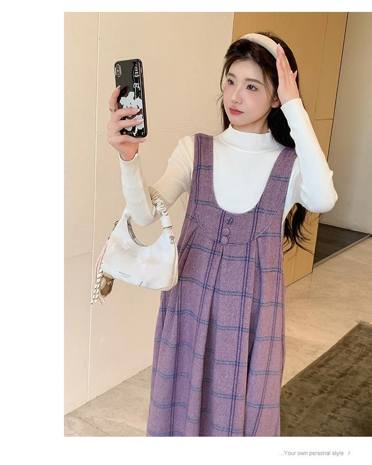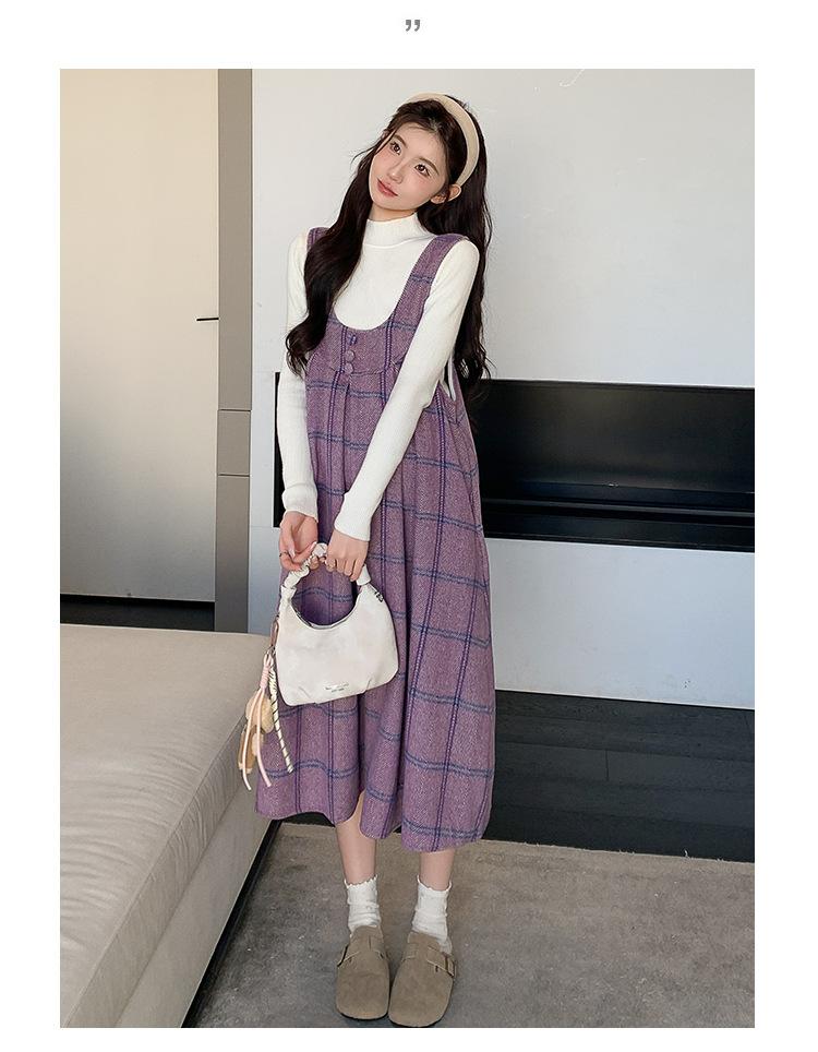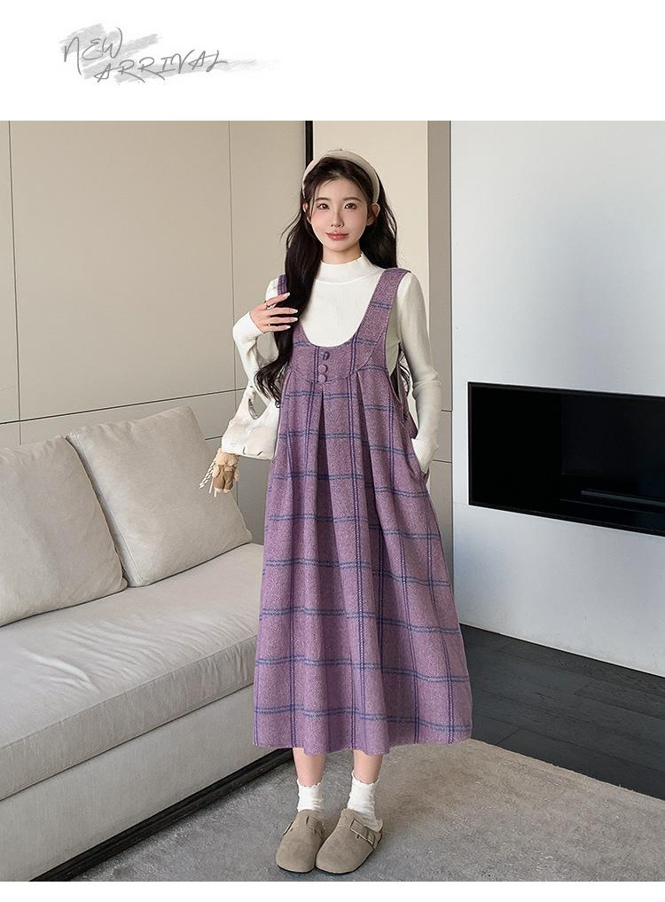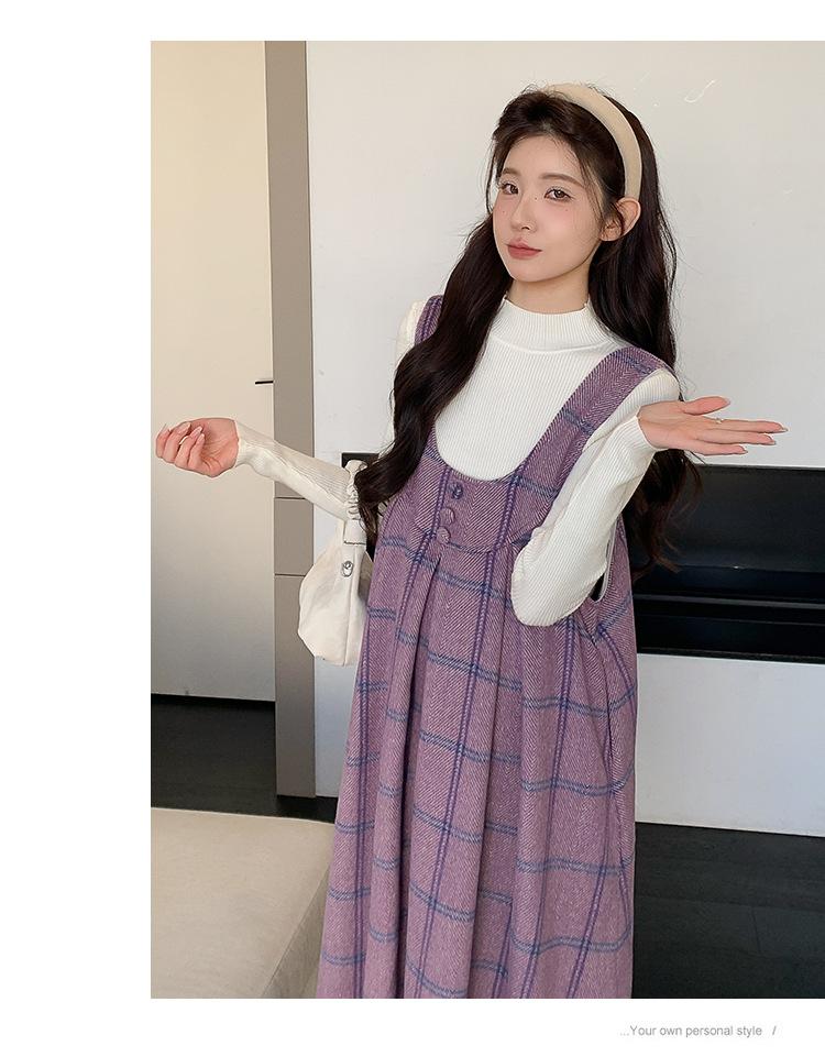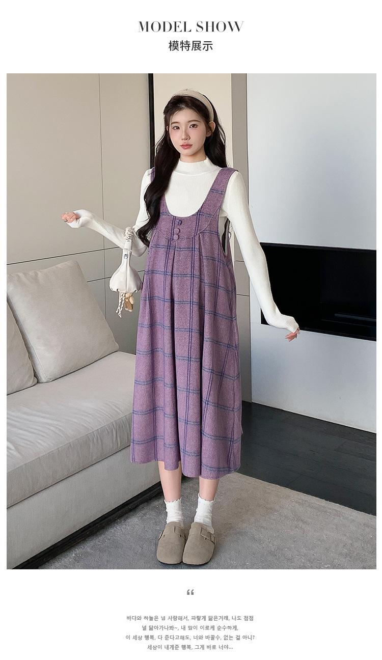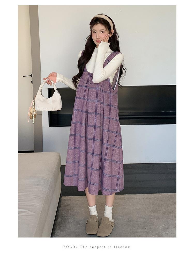 Conjunto de Vestido Chaleco de Maternidad 2025 Vestido de Maternidad Otoño Invierno Moda Lana Cuadros Media Longitud Conjunto de Dos Piezas de Maternidad