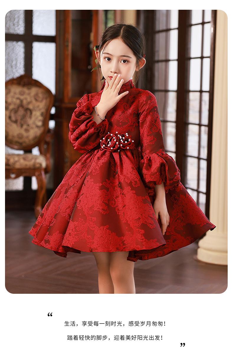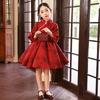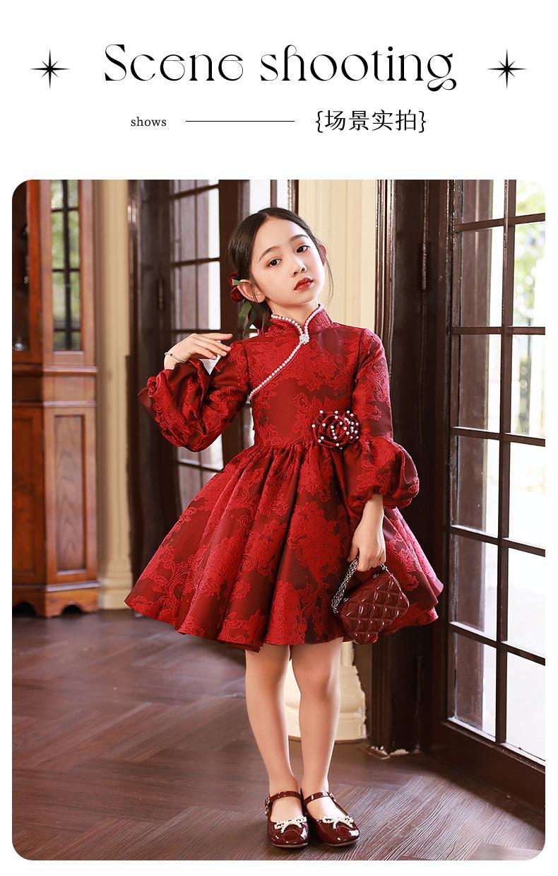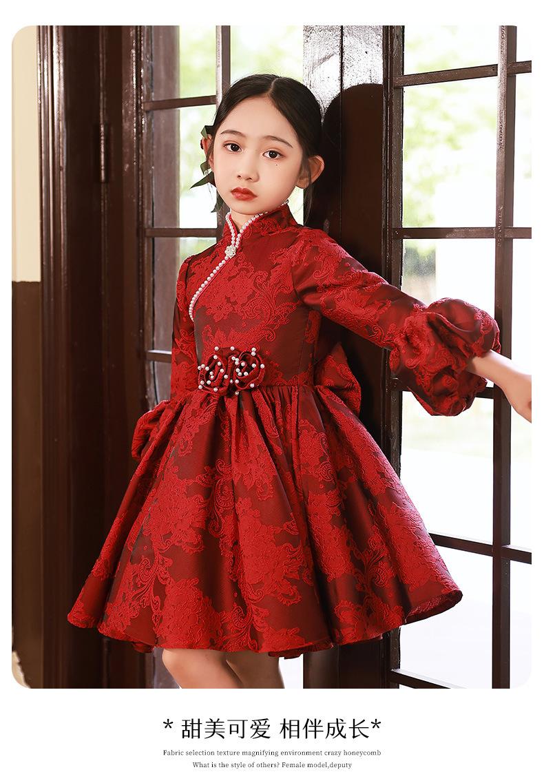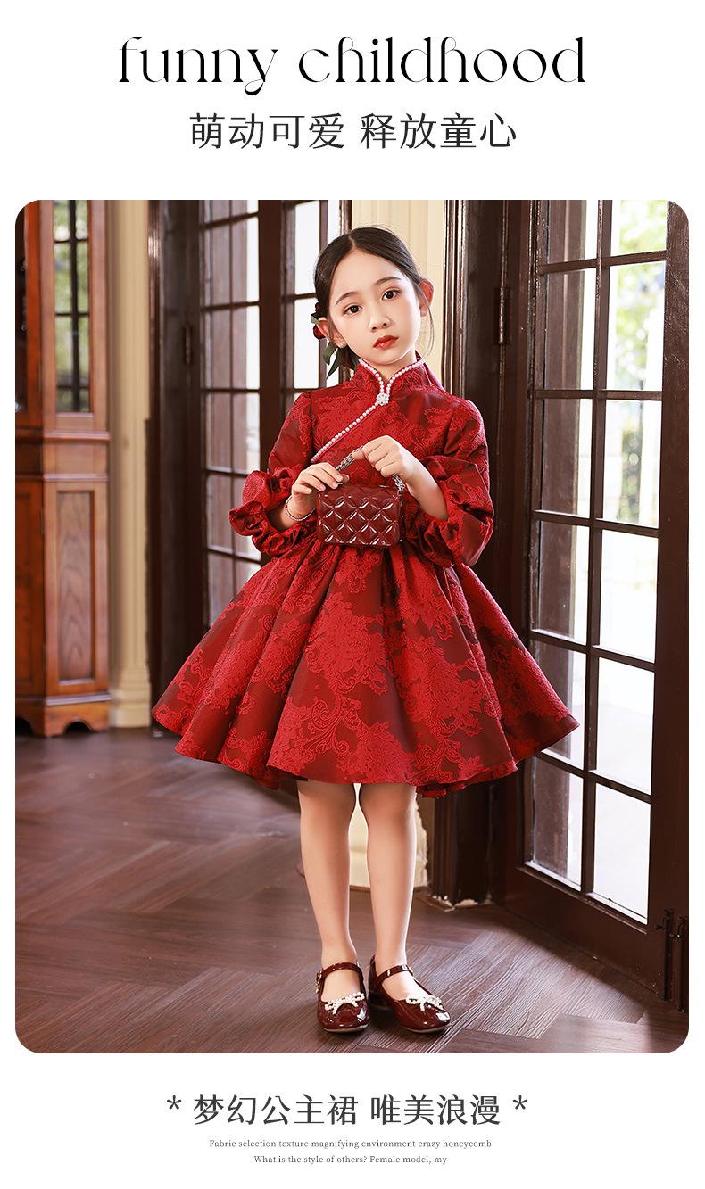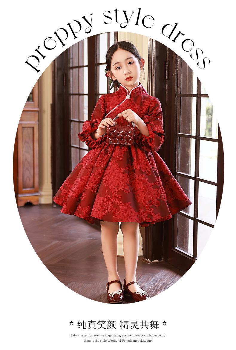 Vestido de Niña Estilo Chino Vestido de Princesa Europeo y Americano Niña Pequeña Cumpleaños Anfitriona Niños Vestido de Actuación de Piano Verano Rojo