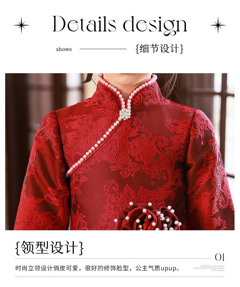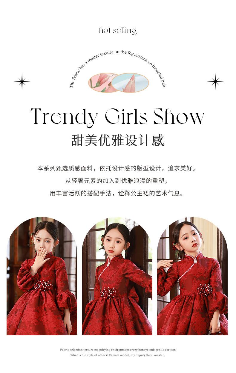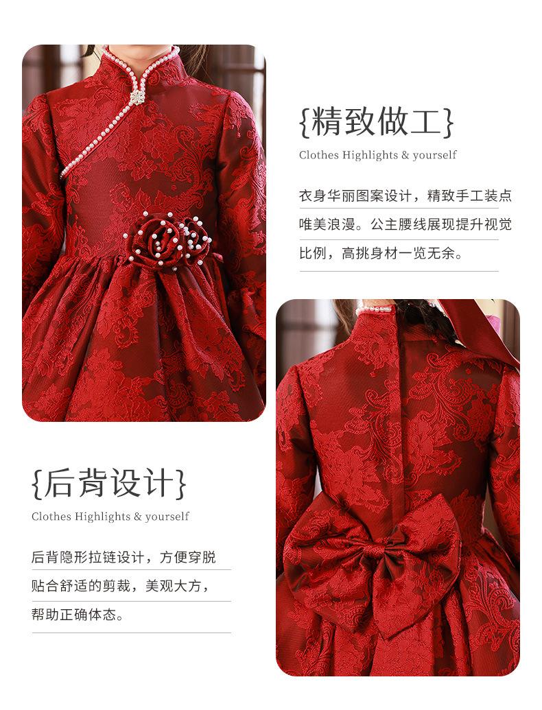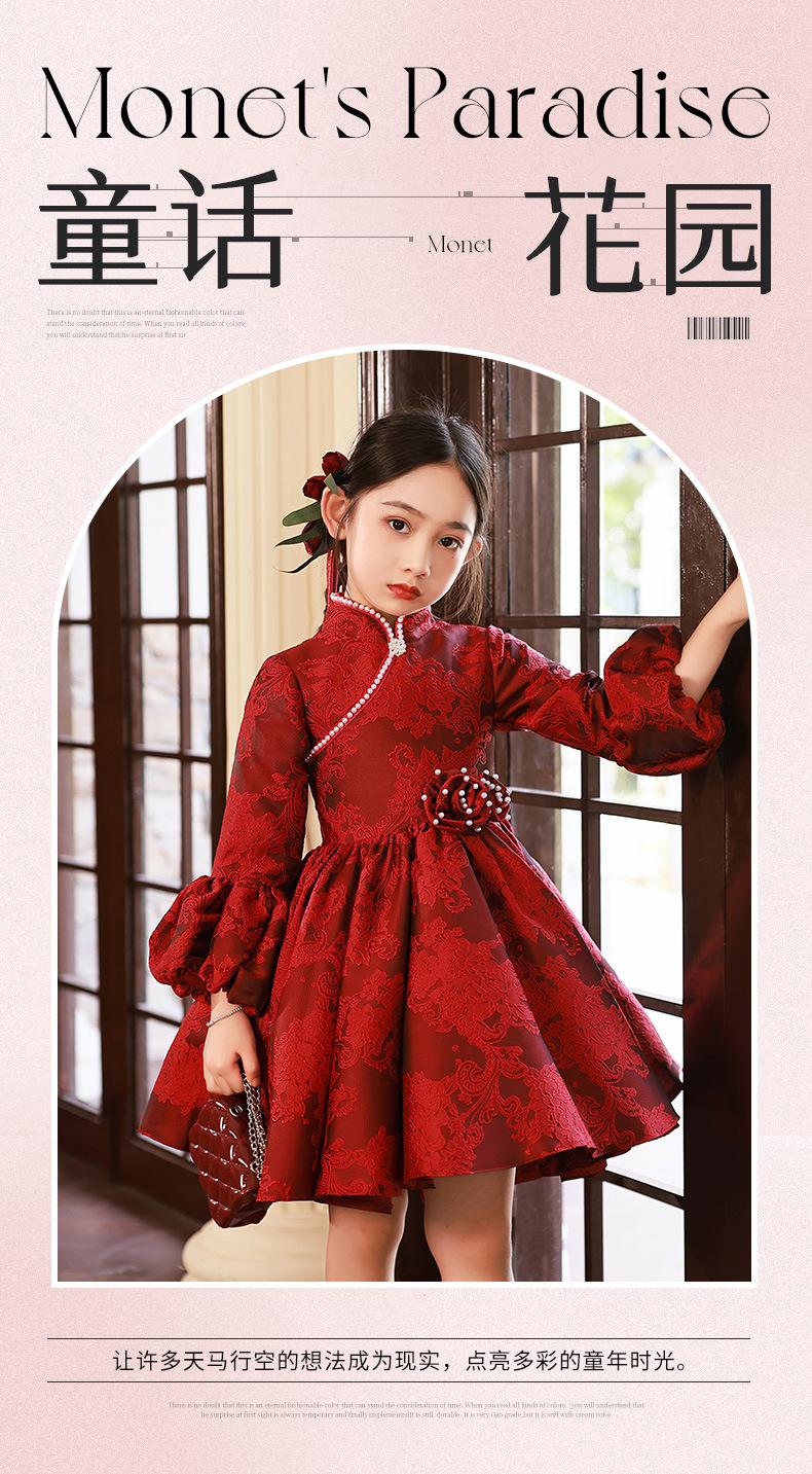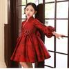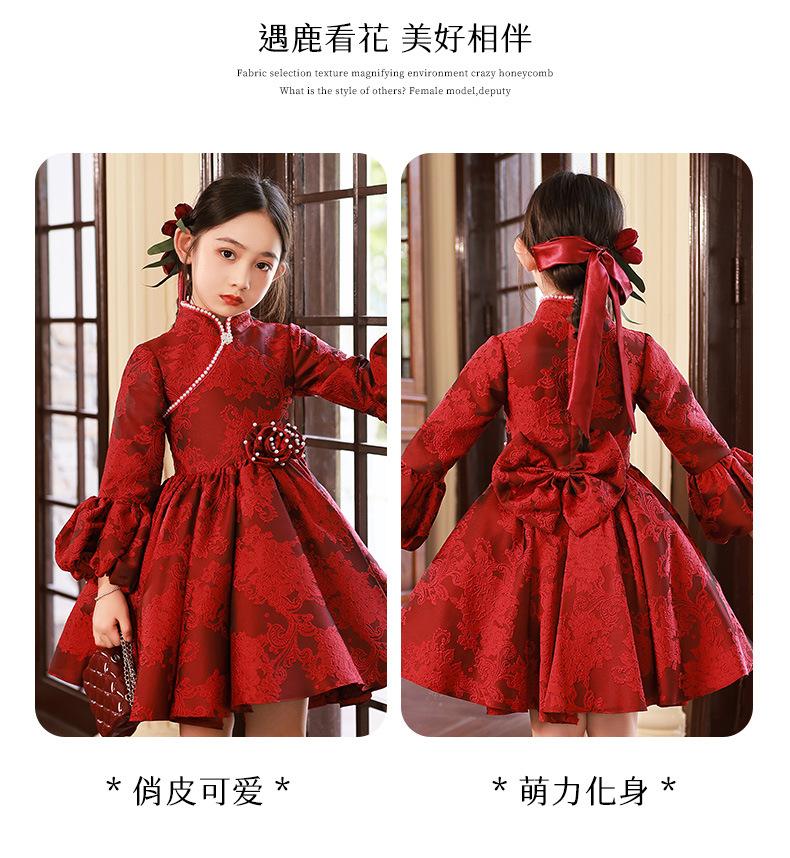Vestido de Niña Estilo Chino Vestido de Princesa Europeo y Americano Niña Pequeña Cumpleaños Anfitriona Niños Vestido de Actuación de Piano Verano Rojo