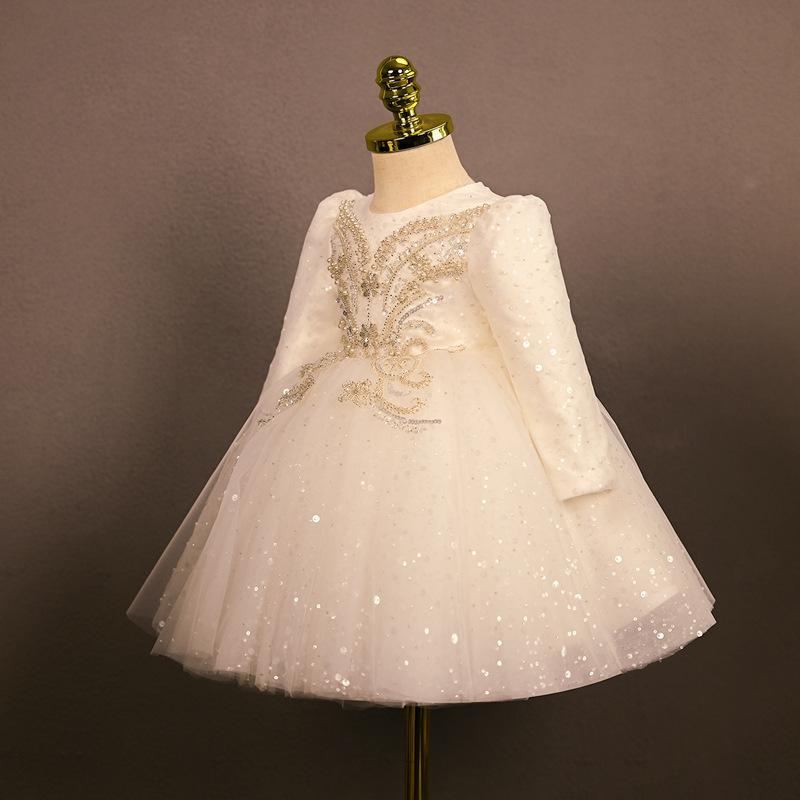 Vestido de Boda para Niñas Vestido de Princesa Vestido Grueso para Niña de las Flores Verano Bebé Primer Cumpleaños Elegante Vestido para Niña