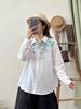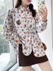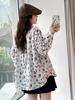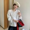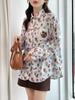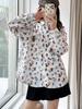 Otoño Nuevo Camisa de Algodón con Estampado de Dibujos Animados para Mujer Suelta Adelgazante Estilo Hong Kong Solapa Temperamento Reductora de Edad Top Versátil