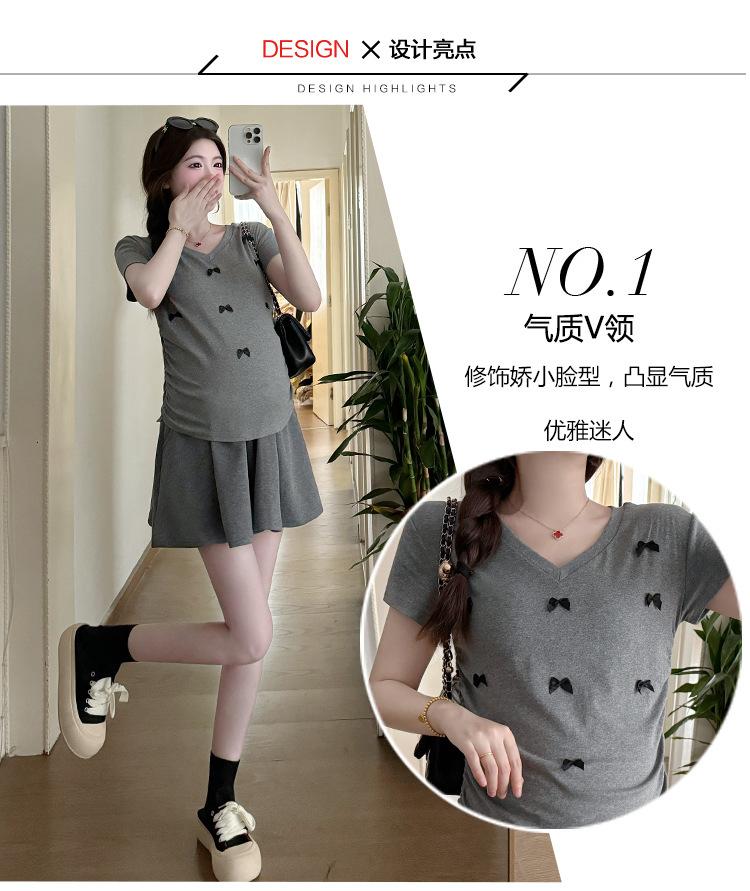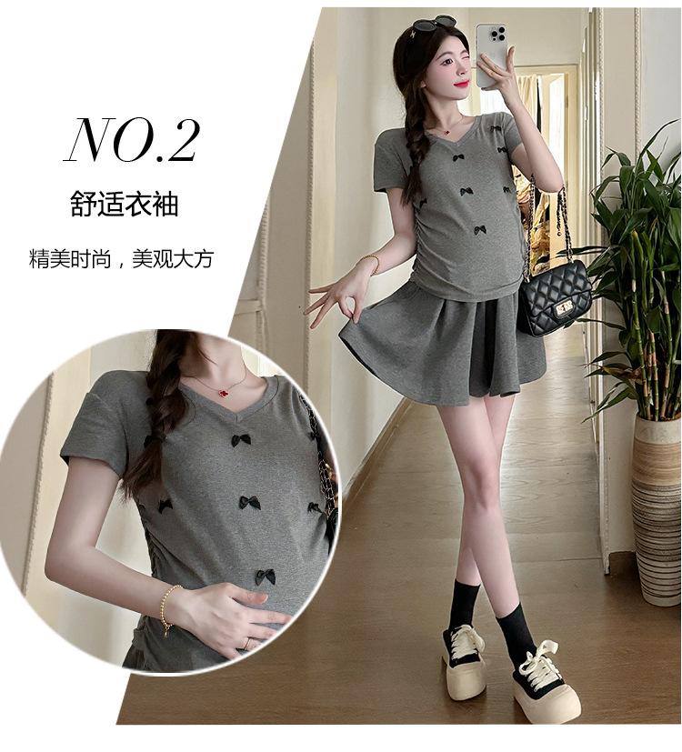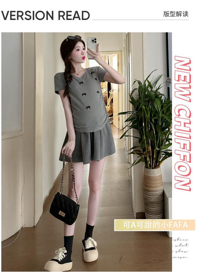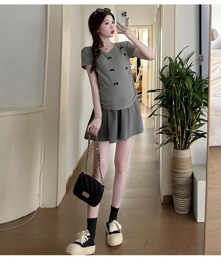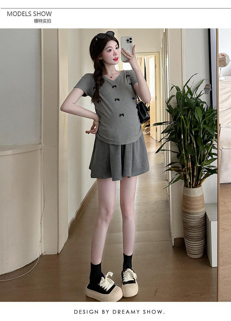 Traje para Mujeres Embarazadas Nuevo 2024 Verano Moda Ropa Exterior Estilo Occidental Lazo Top Adelgazante Suelto Shorts para el Vientre