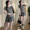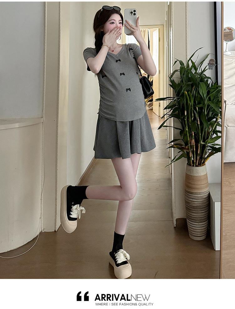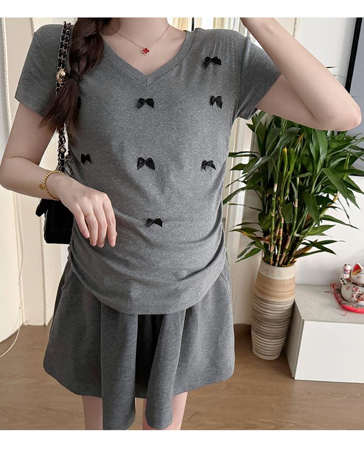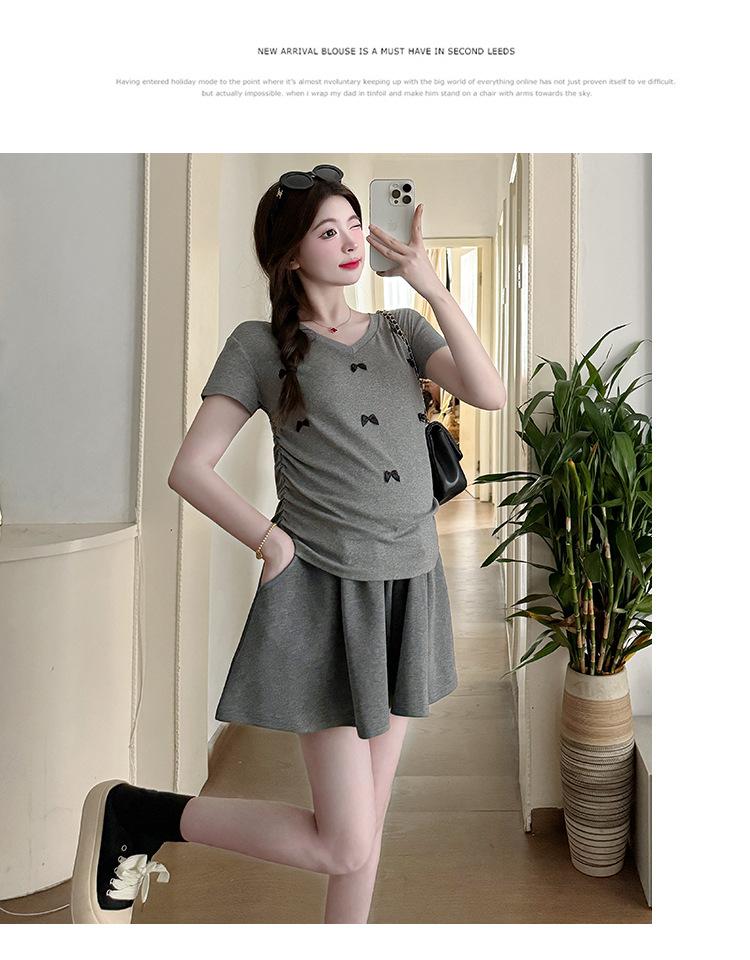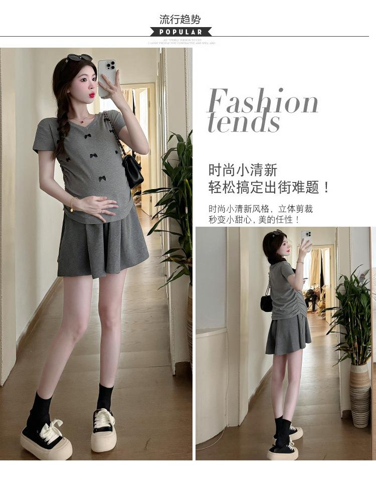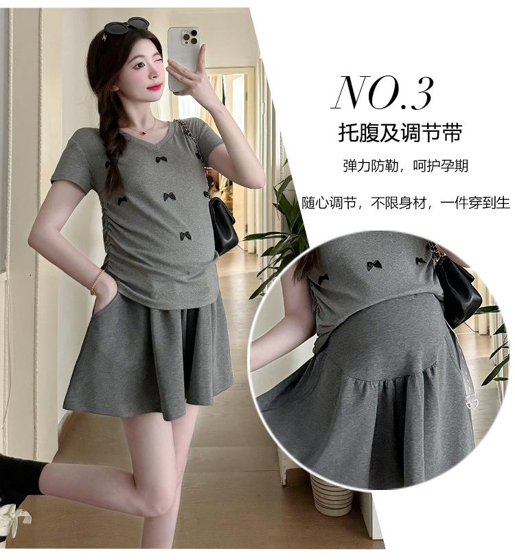 Traje para Mujeres Embarazadas Nuevo 2024 Verano Moda Ropa Exterior Estilo Occidental Lazo Top Adelgazante Suelto Shorts para el Vientre