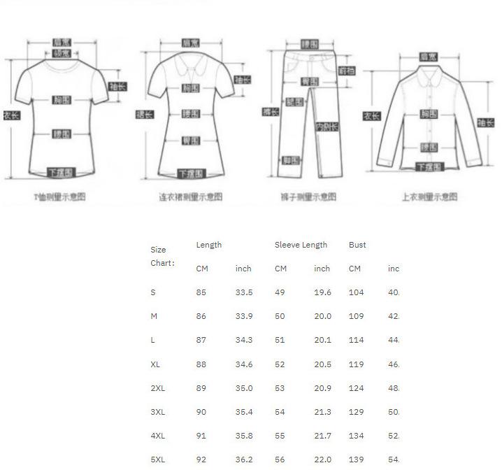 S, M, L, XL, XXL, 3XL, 4XL, 5XL