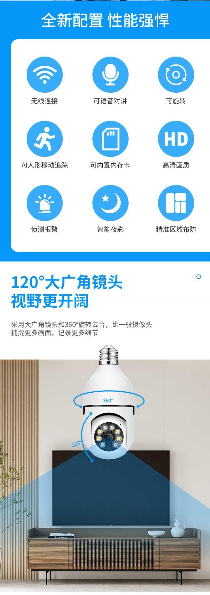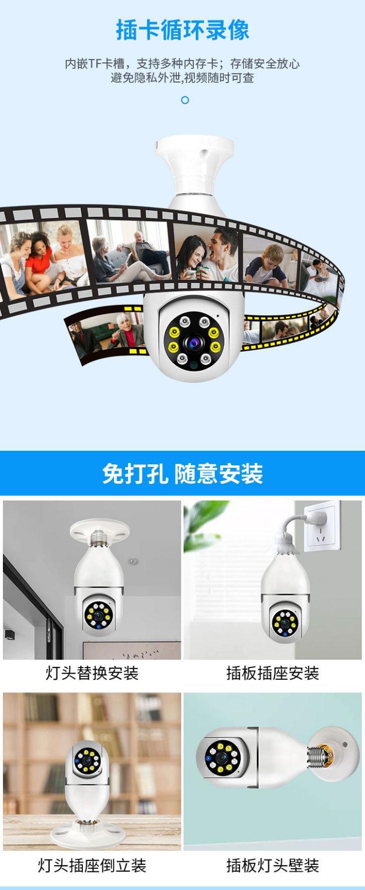 Cámara foco cámara foco Inalámbrica Doble luz a todo color 360 grados wifi monitoreo remoto cámara para el hogar