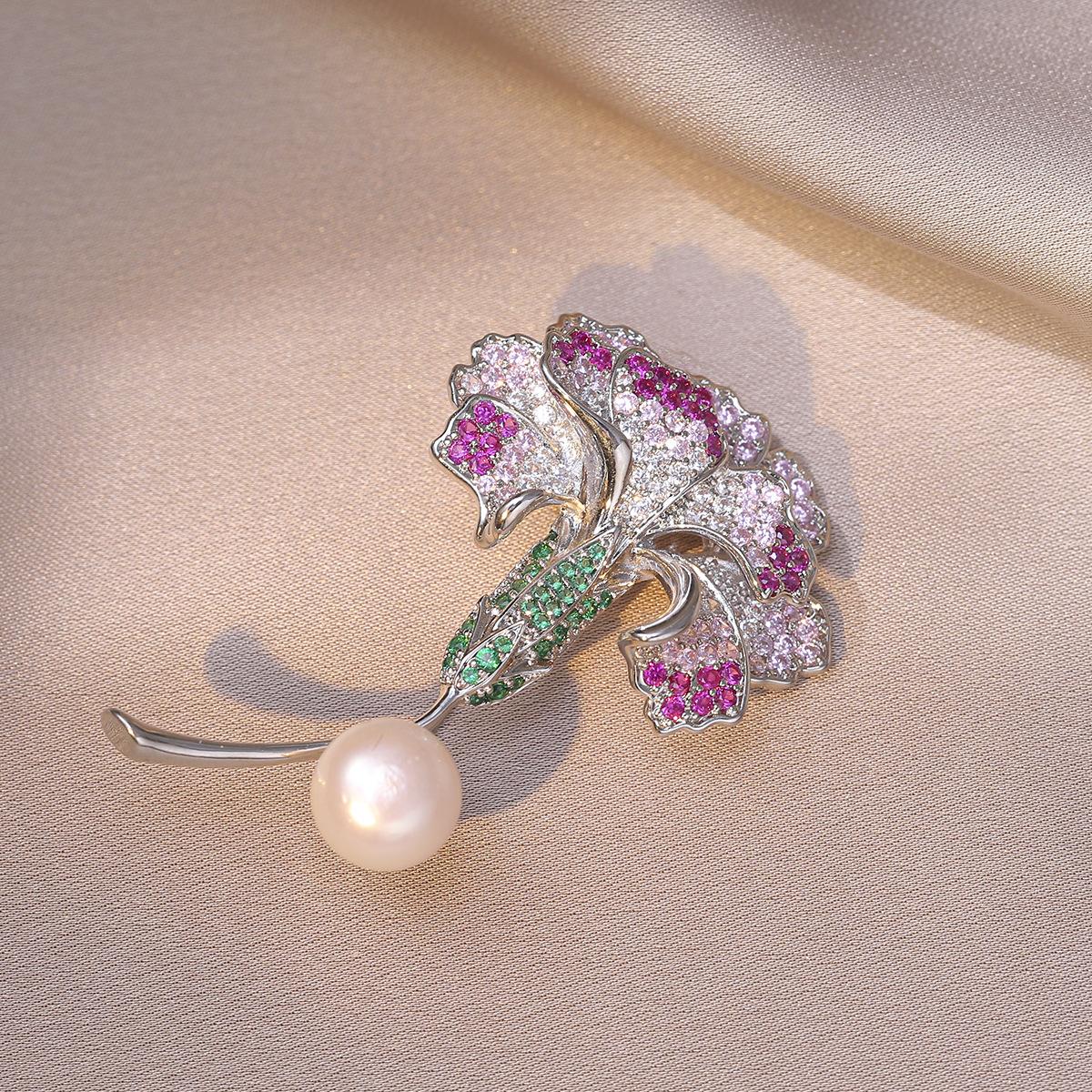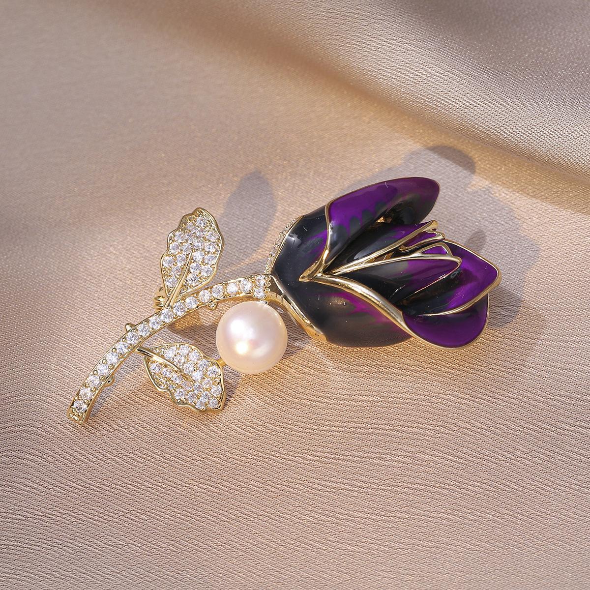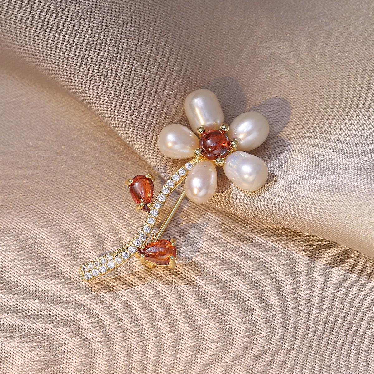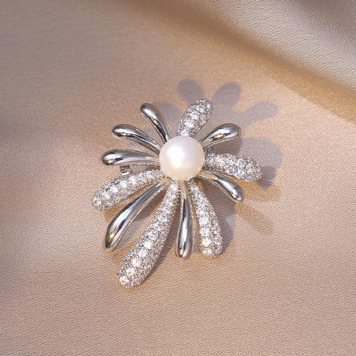 Broche para Mujer Francés Retro Flor Perla de Agua Dulce Broche Estilo Palacio Flor Diamante Completo Corsage Pin Accesorios Ropa