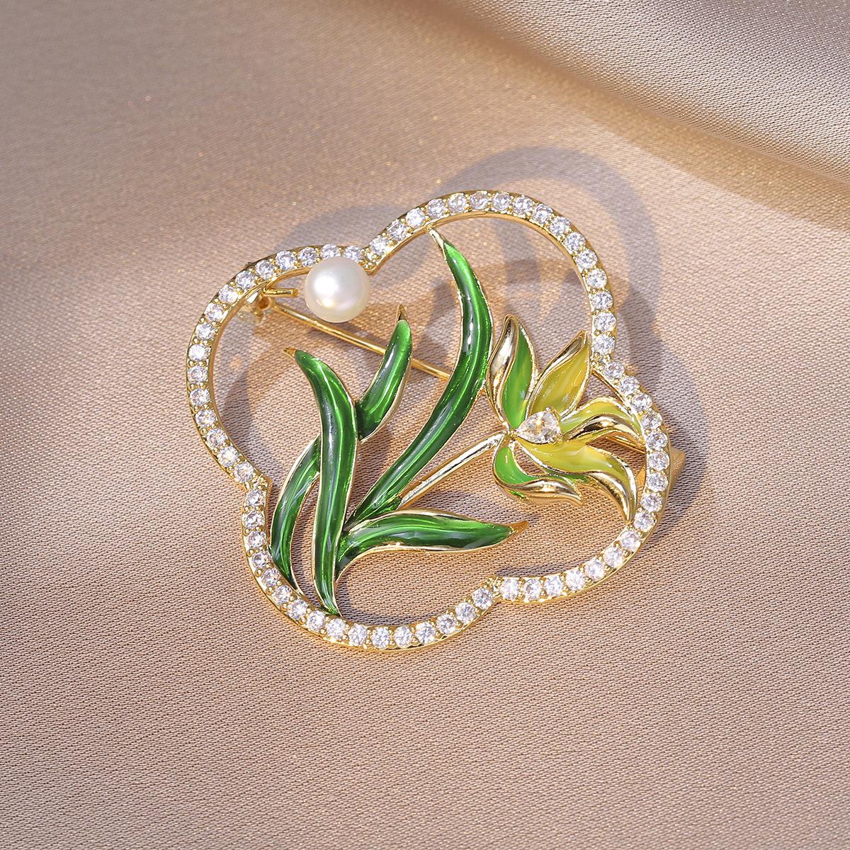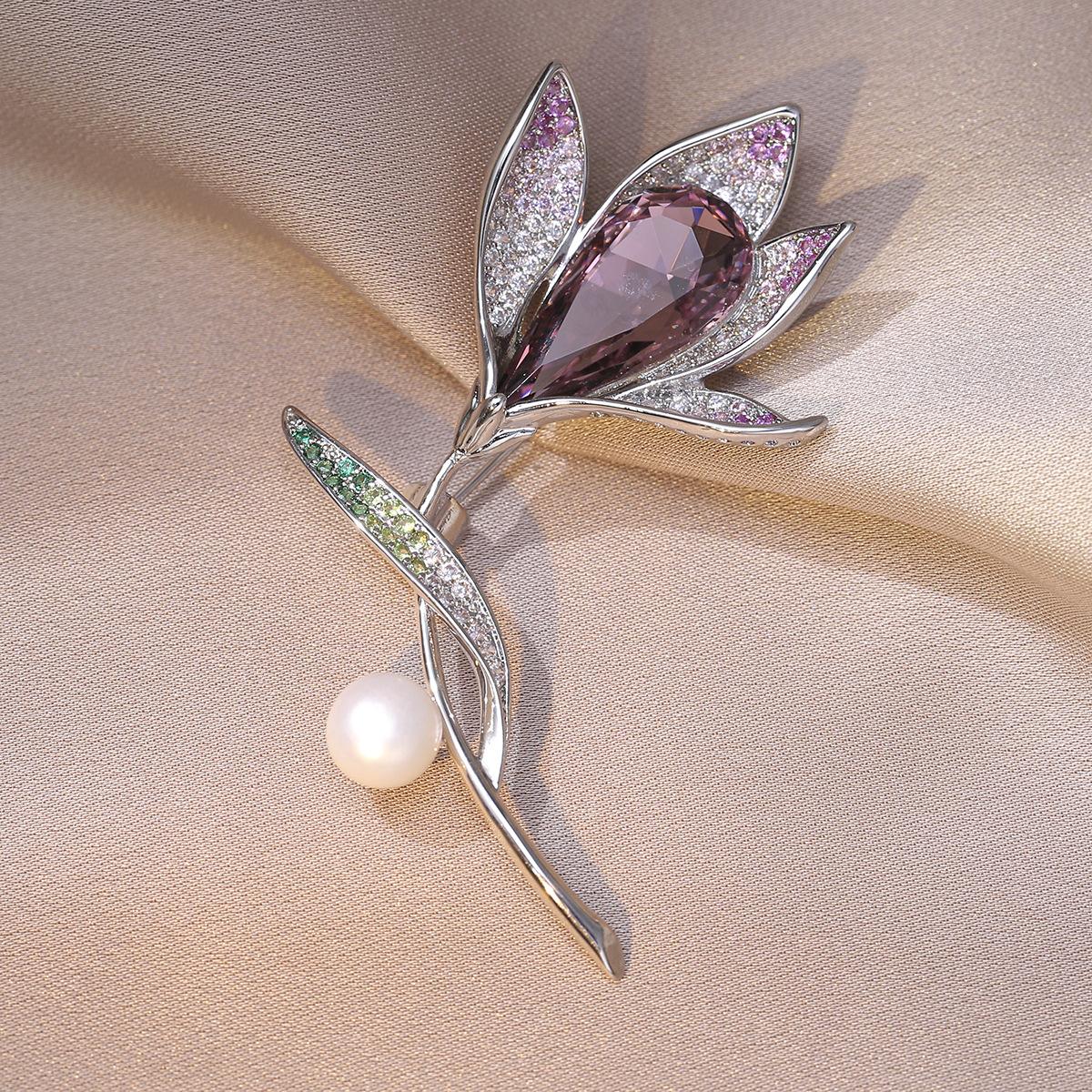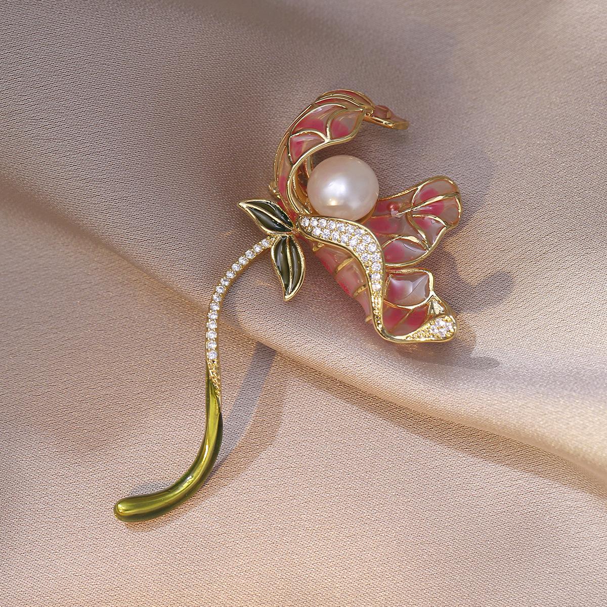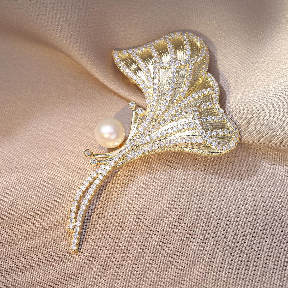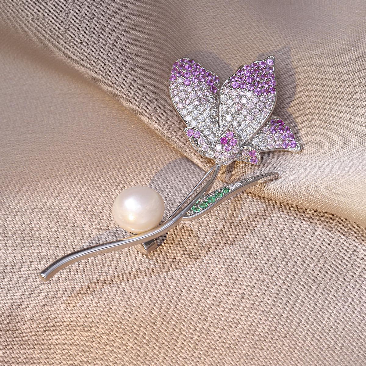 Broche para Mujer Francés Retro Flor Perla de Agua Dulce Broche Estilo Palacio Flor Diamante Completo Corsage Pin Accesorios Ropa