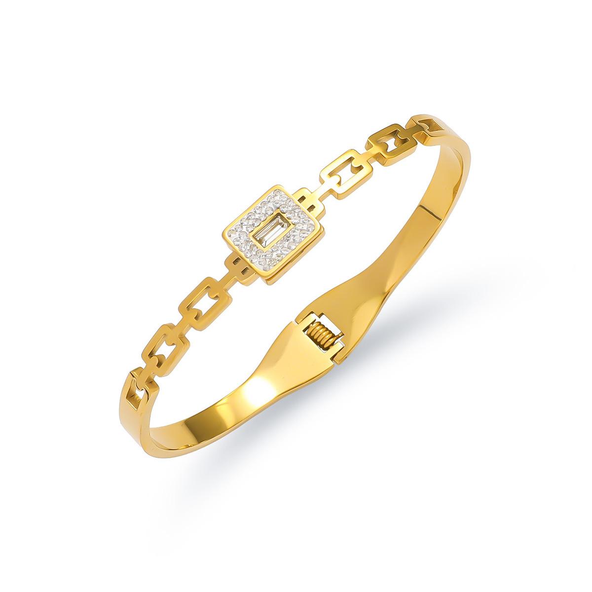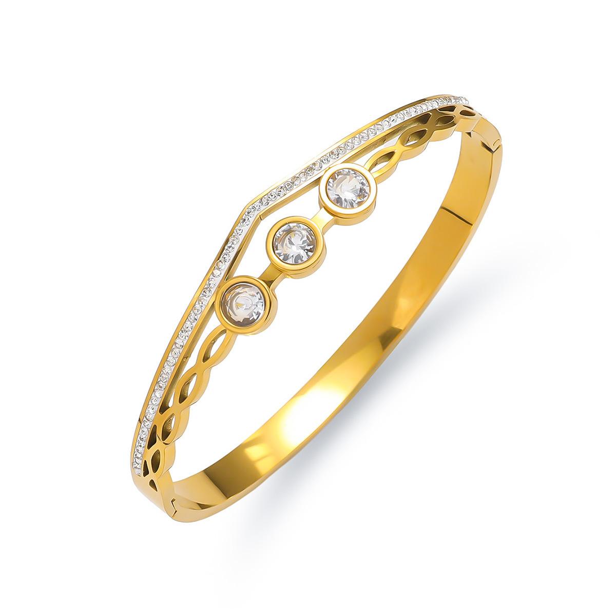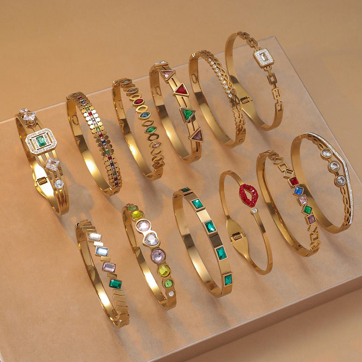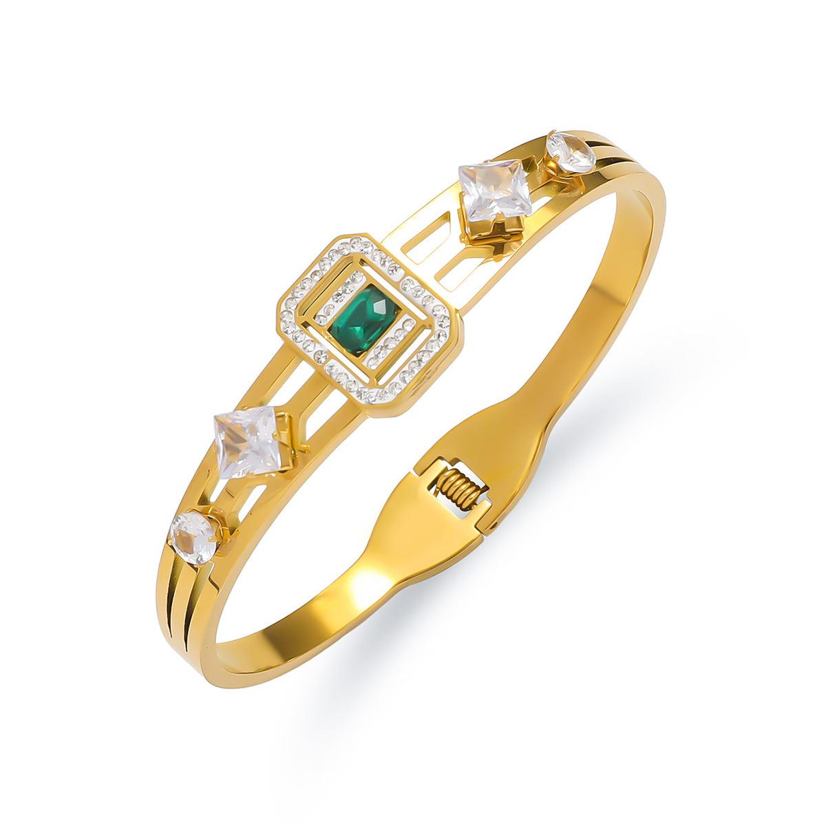Pulsera de Acero de Titanio para Mujer Pulsera Abierta Retro Ins Europea y Americana Pulsera de Acero Inoxidable Pulsera de Circonita Elegante de Moda Transfronteriza