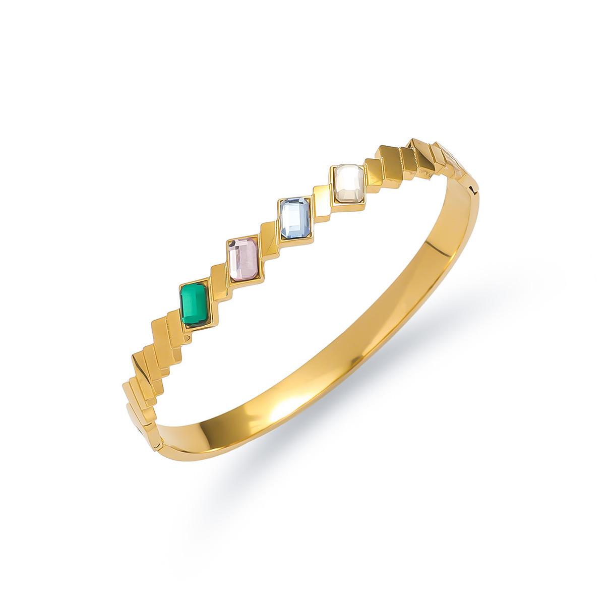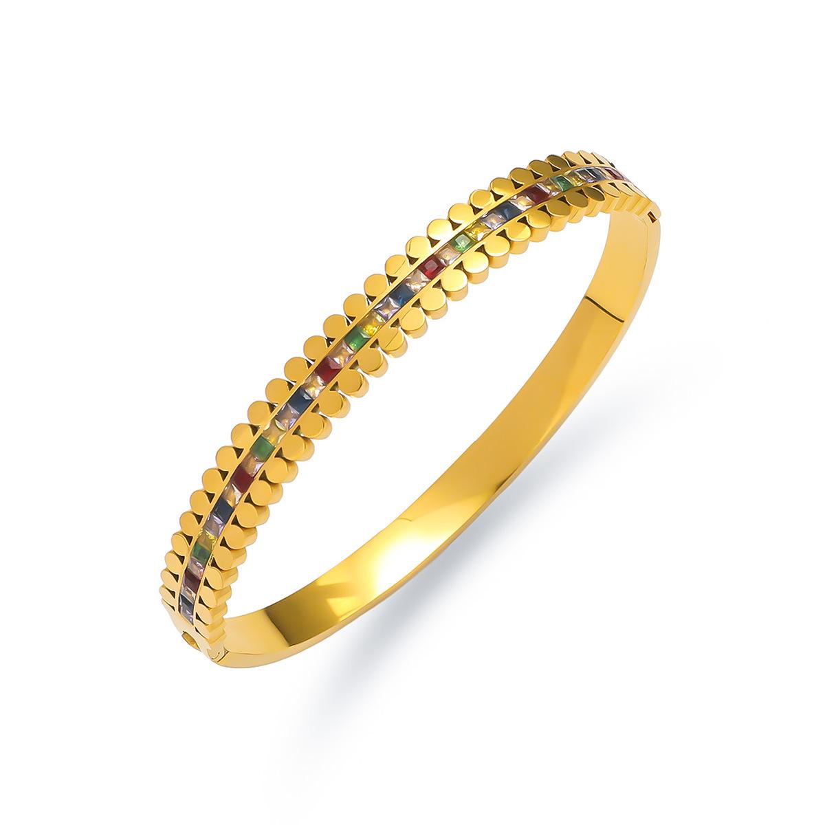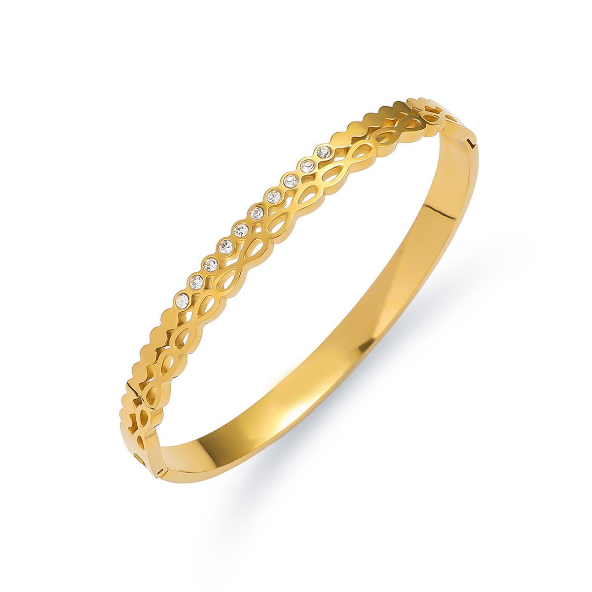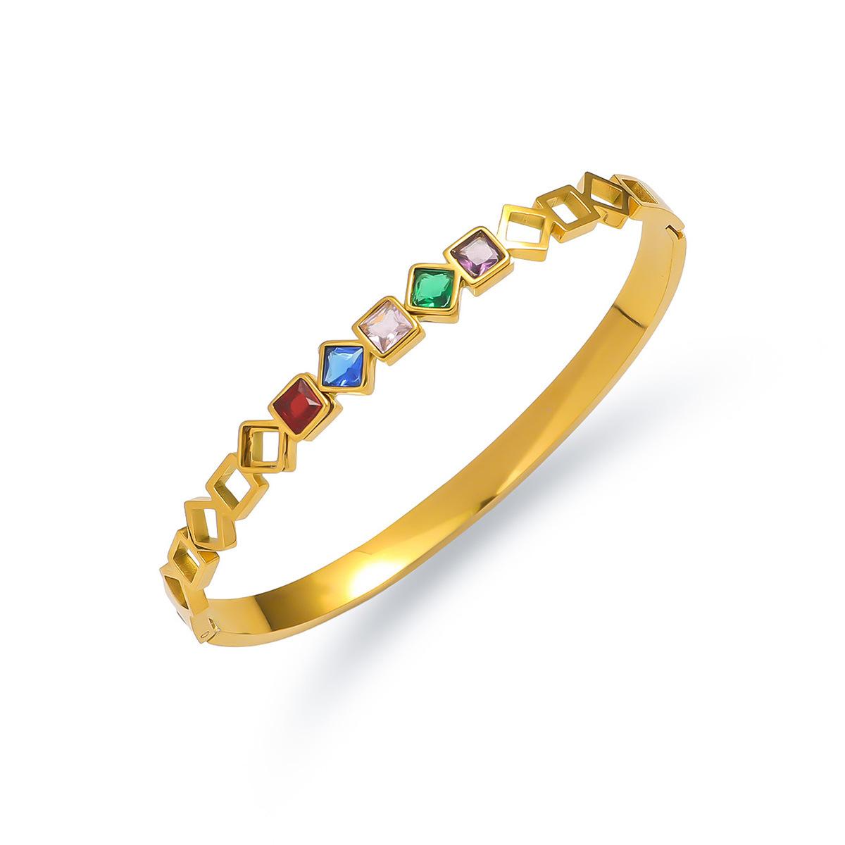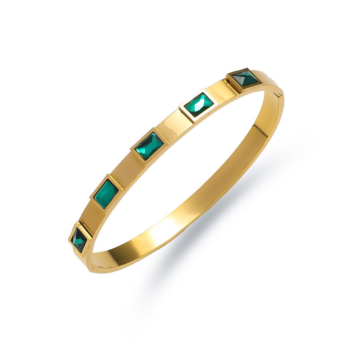 Pulsera de Acero de Titanio para Mujer Pulsera Abierta Retro Ins Europea y Americana Pulsera de Acero Inoxidable Pulsera de Circonita Elegante de Moda Transfronteriza