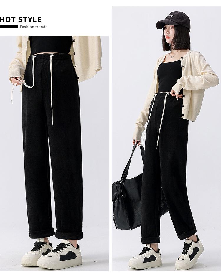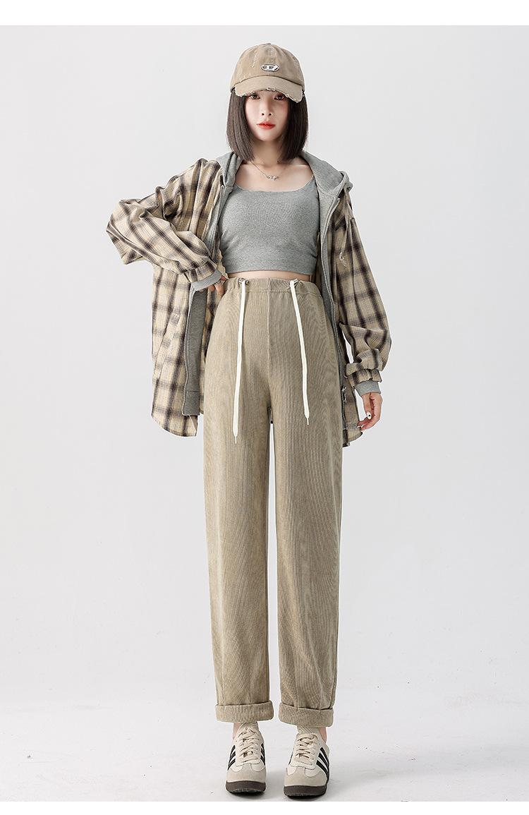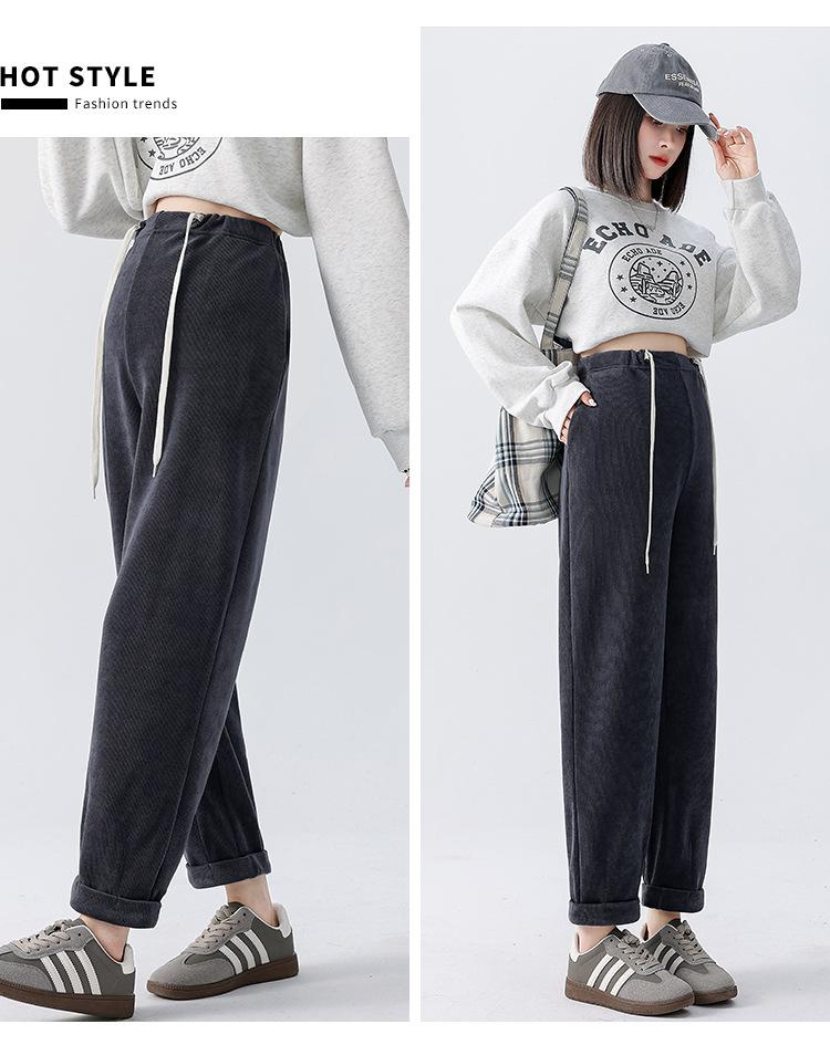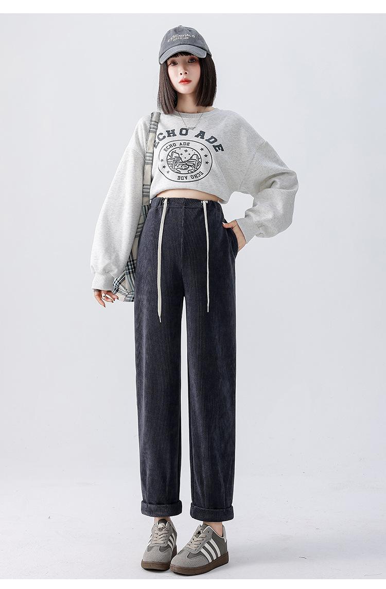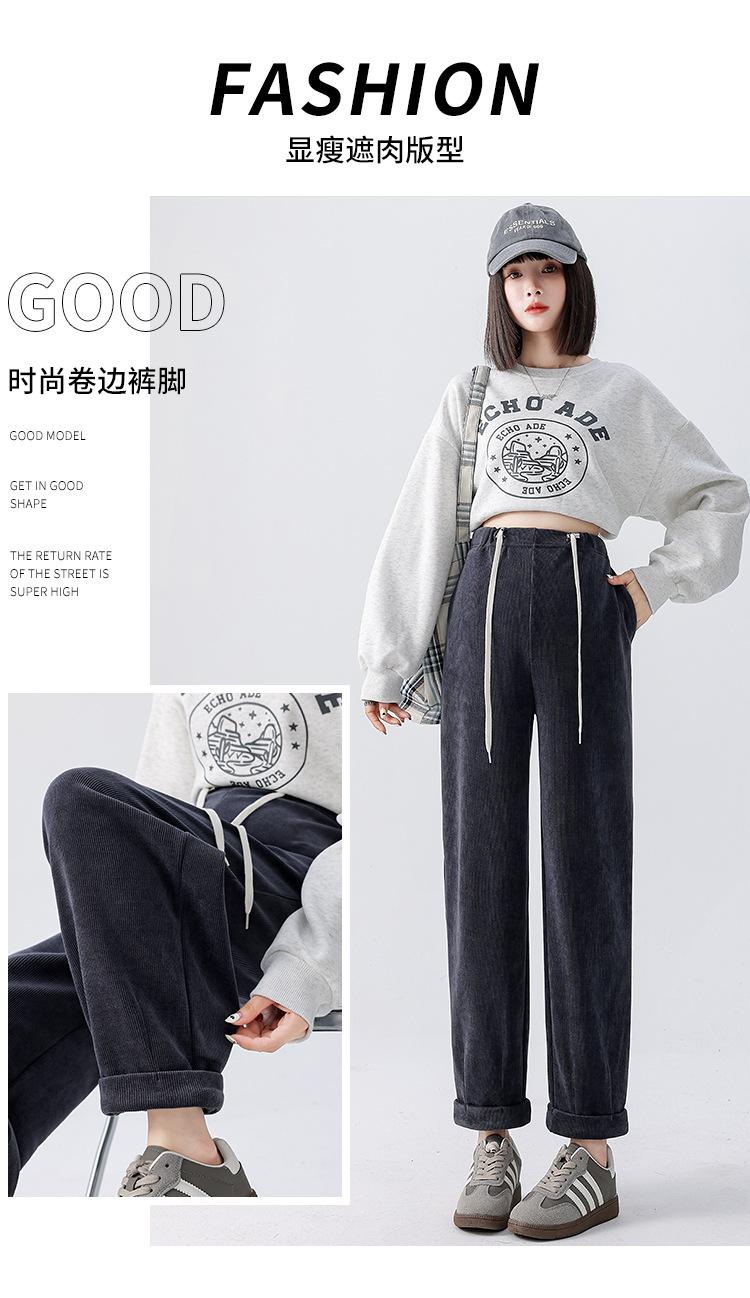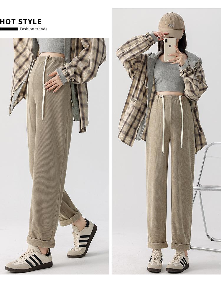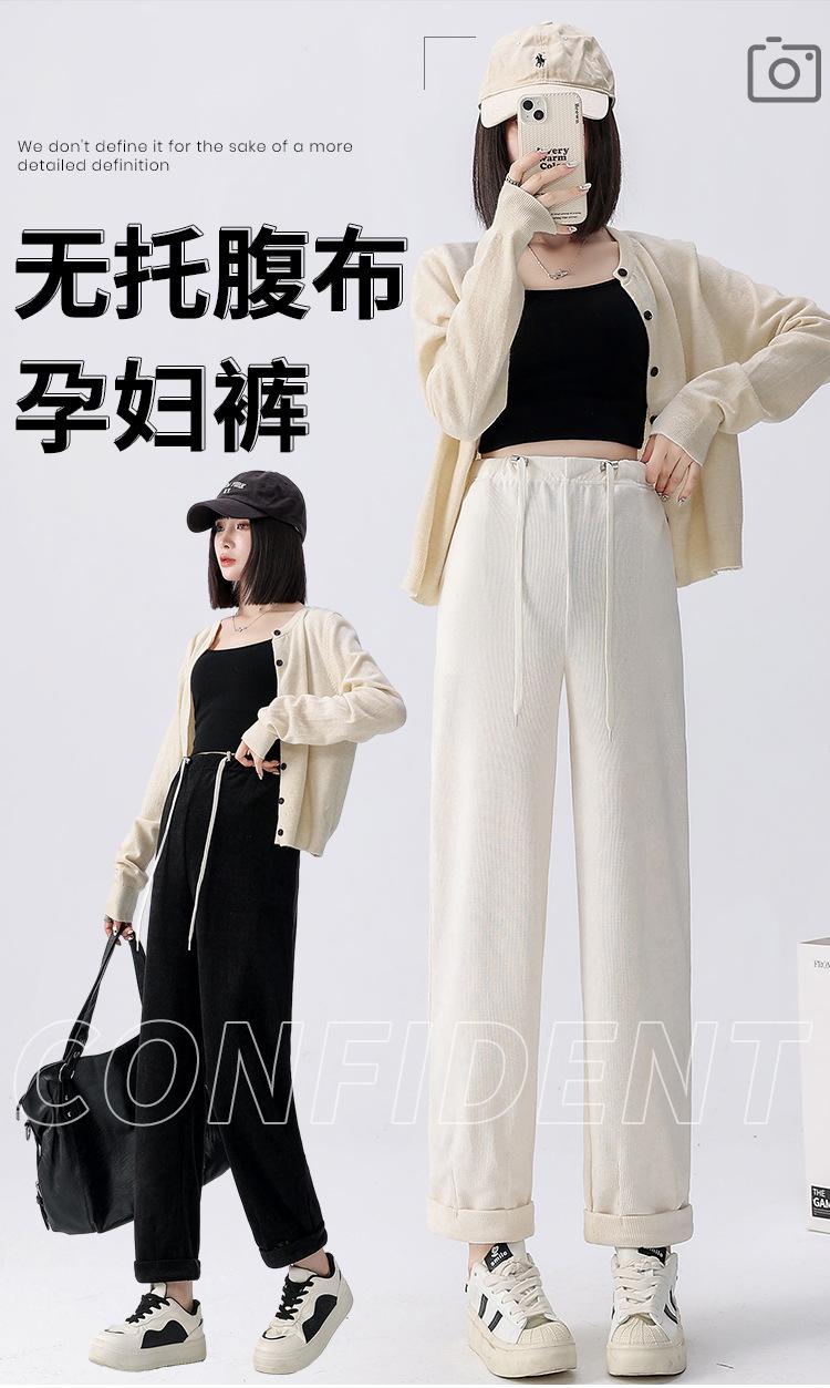 Los pantalones de mujer embarazada se pueden usar después del parto para el nuevo otoño e invierno de 2024, forrados de lana, algodón europeo suelto casual slim comodín tipo nabo