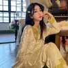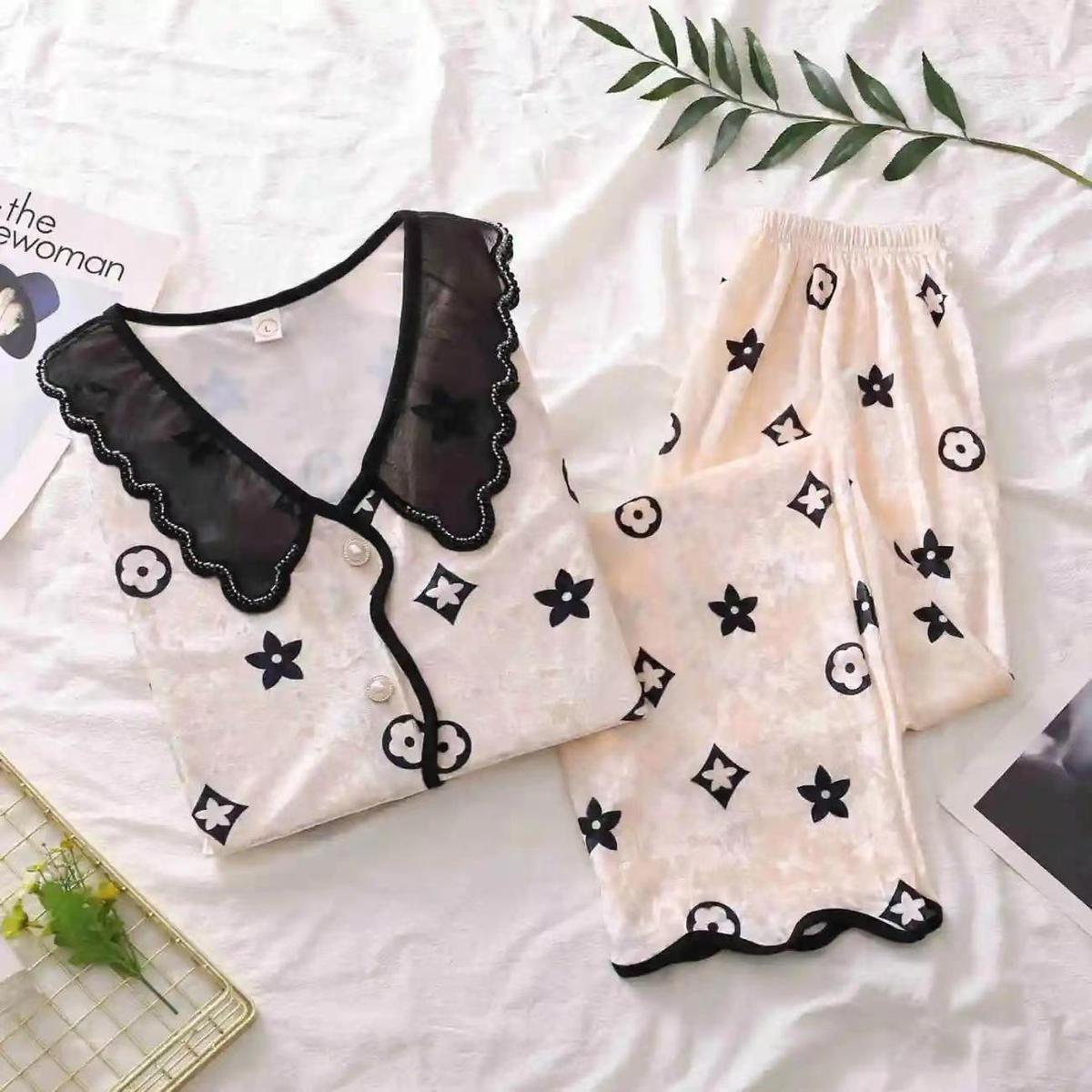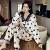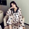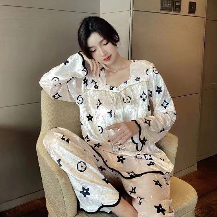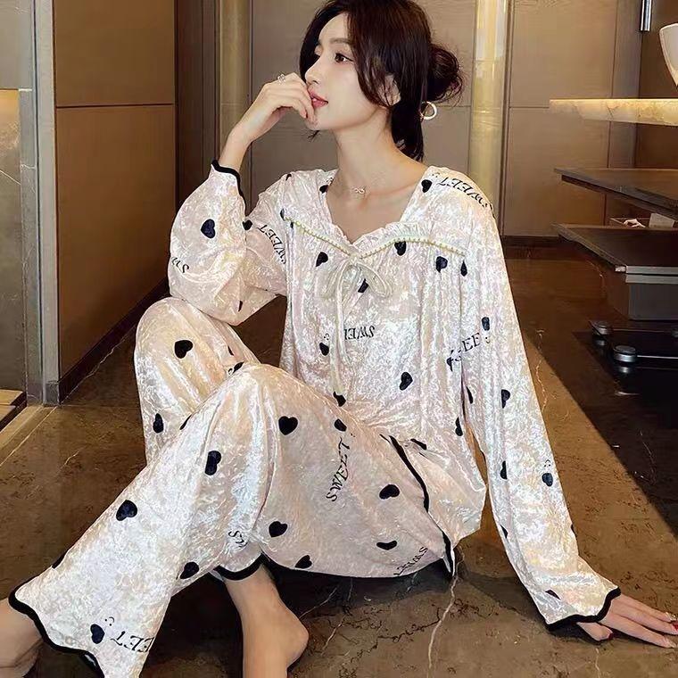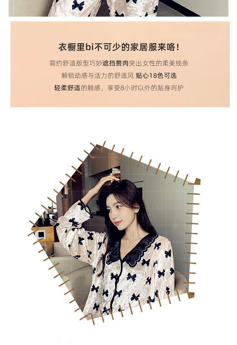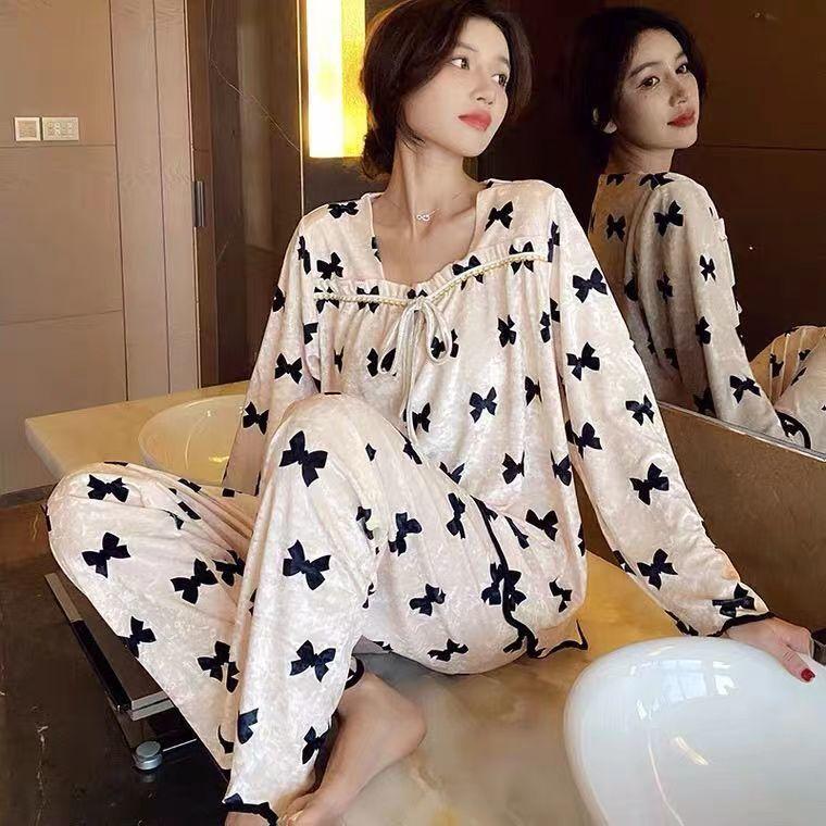 Pijama Nuevo de Mujer con Lazo Terciopelo Dorado Otoño e Invierno Cuello en V Caliente en Internet Ins Traje de Ropa para el Hogar