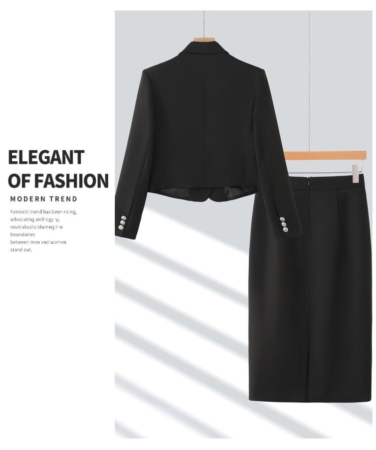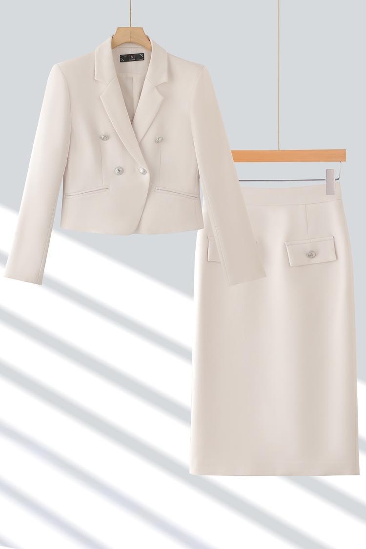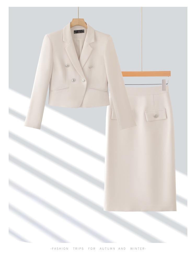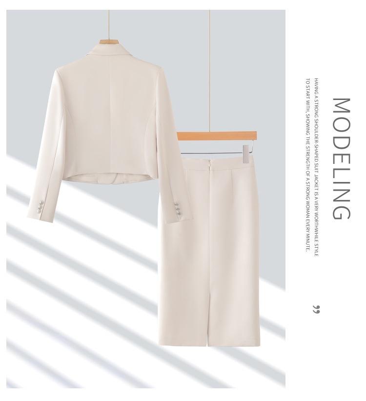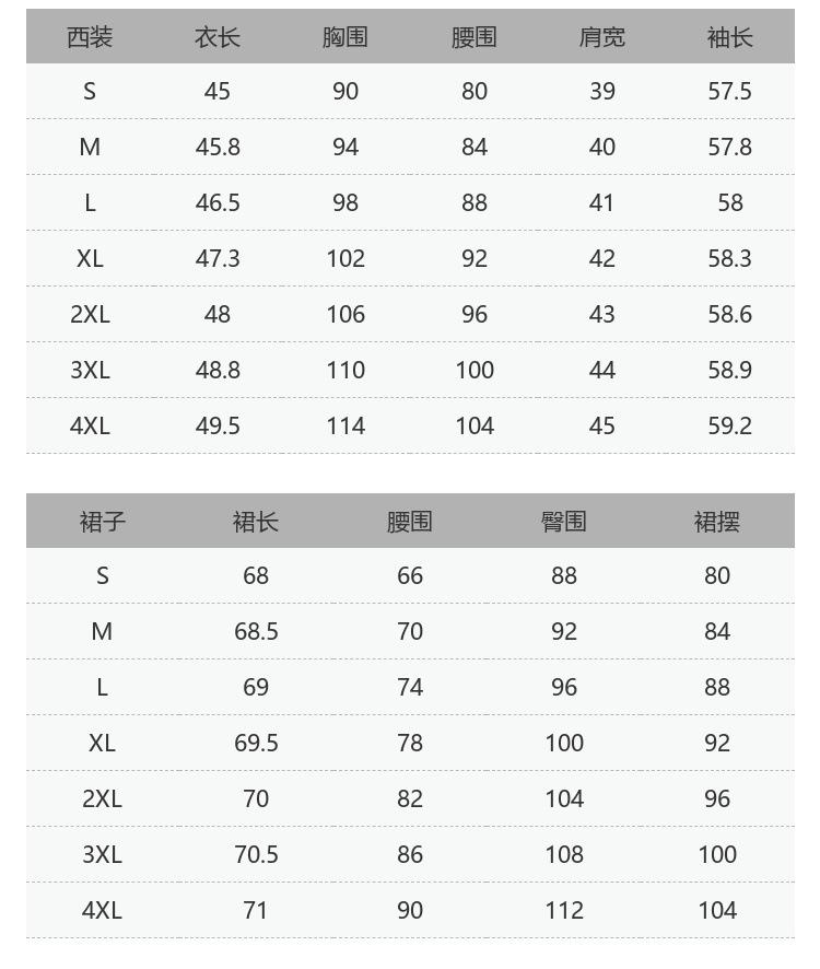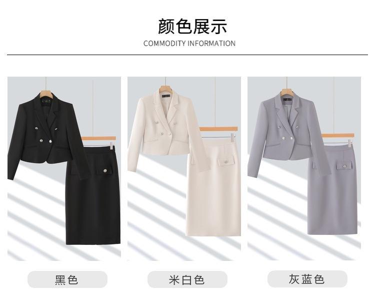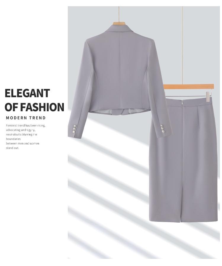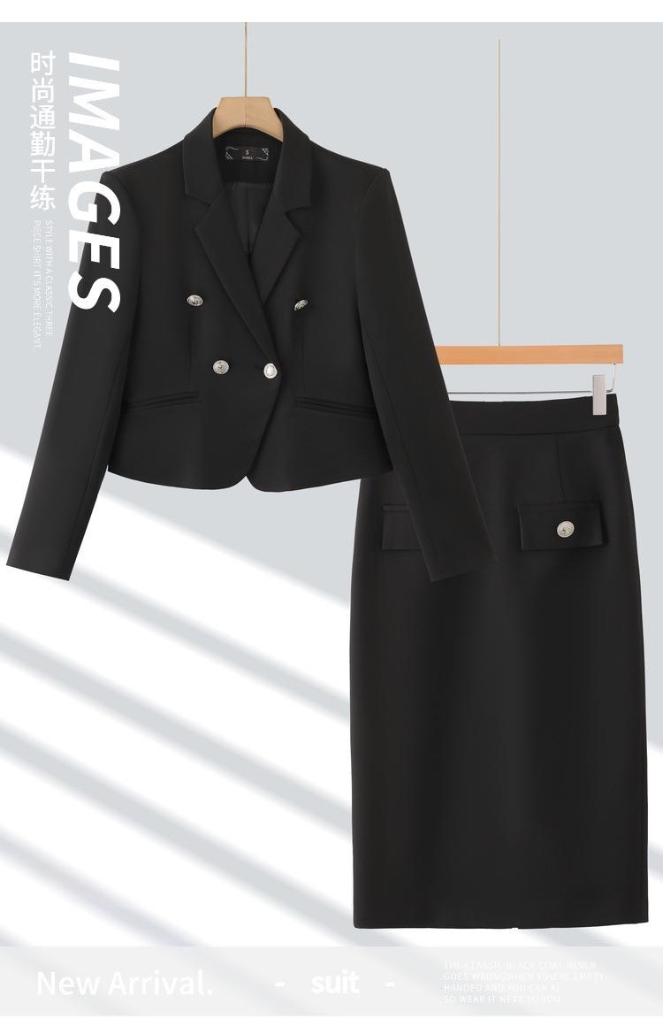 Black [single suit], Gray blue [single suit], Off-white [single suit], Black [suit + skirt], Gray blue [suit +...