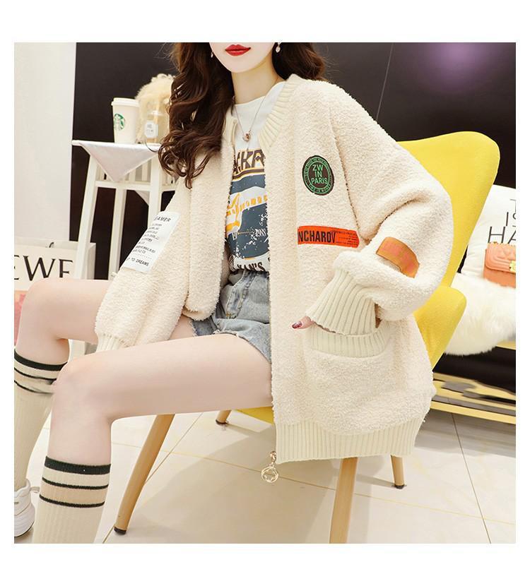 2025 Nuevo Estilo Otoñal Transfronterizo Versátil Estilo Coreano Suelto Estilo Perezoso Diseño de Chaqueta Tejida Suéter Cárdigan para Mujer