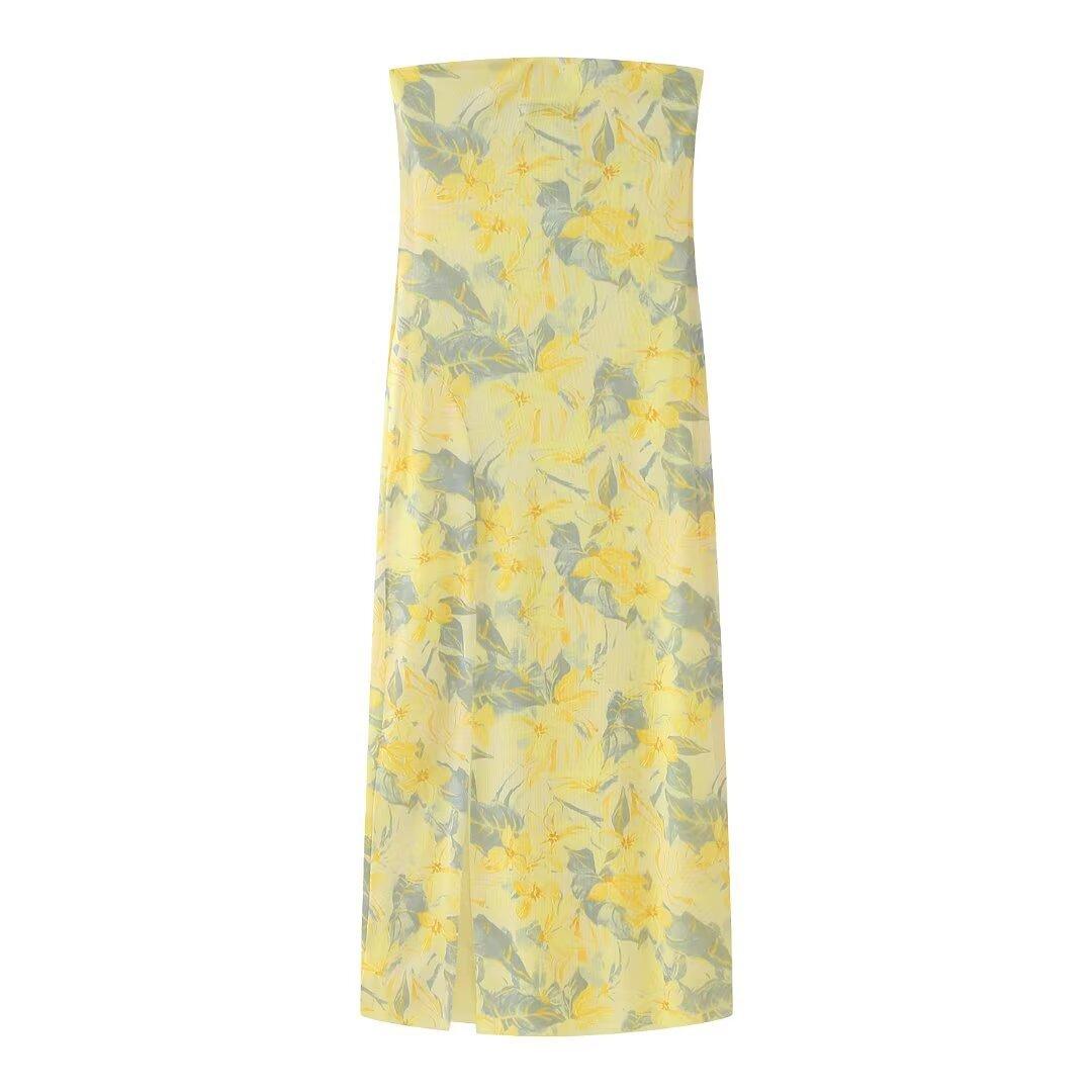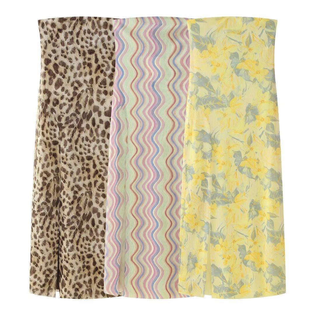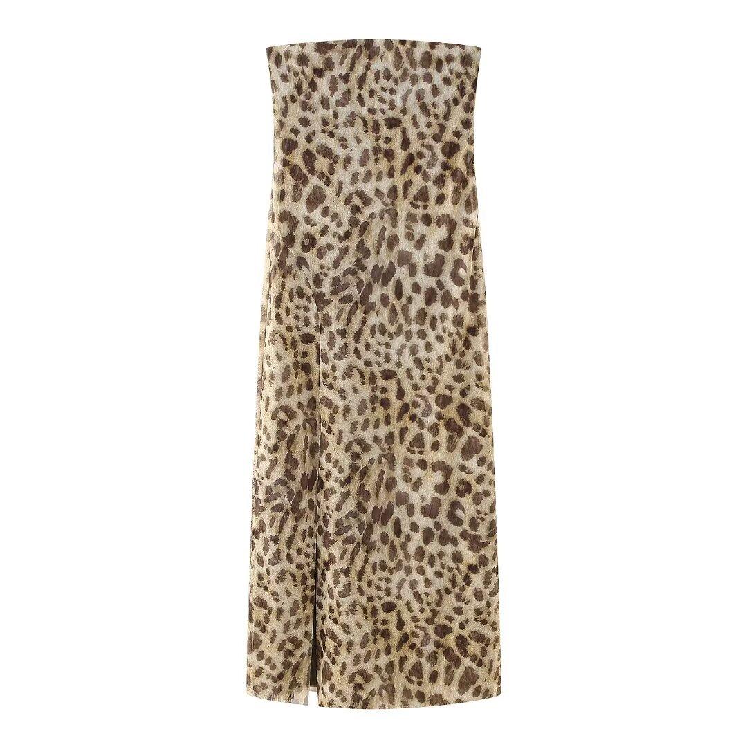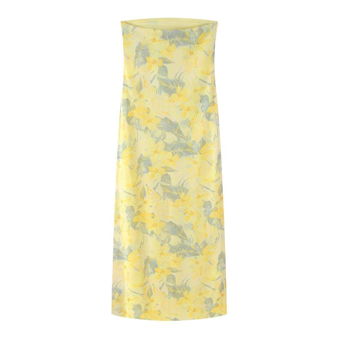 Venta al por mayor 2024 Primavera Nuevo Estilo Europeo Americano Vestido Tubo de Malla de Seda Estampada para Mujer