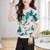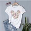 Verano Nueva Camiseta de Manga Corta Top Patrón de Rosa Estampado Top de Manga Corta para Mujer