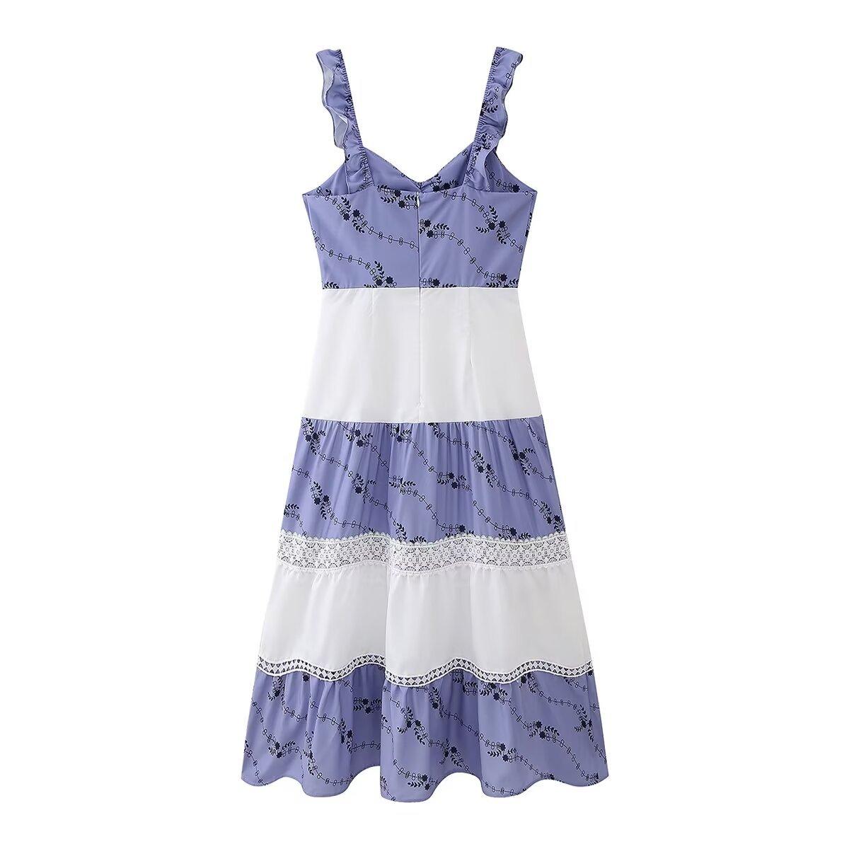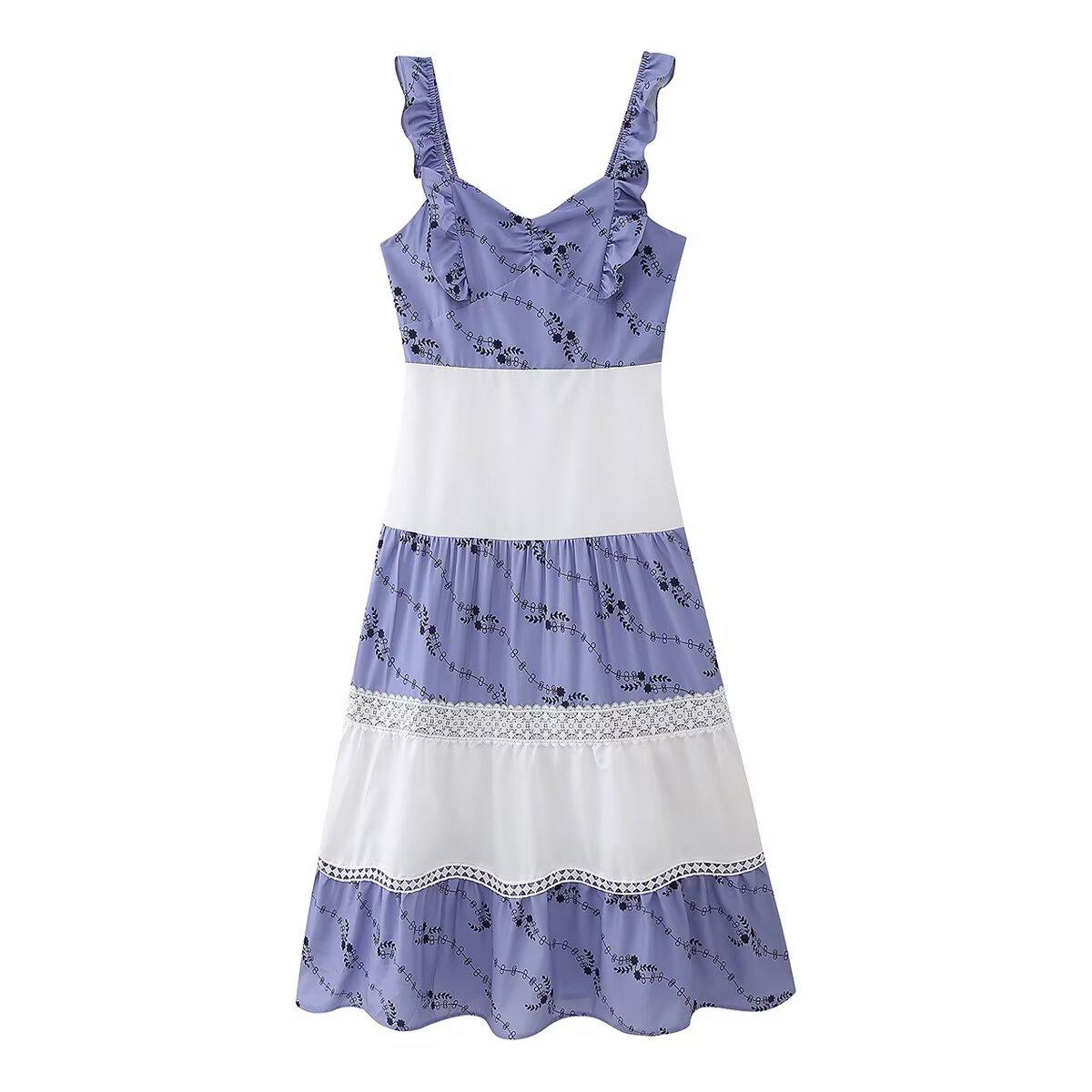 Venta al por mayor 2024 primavera nuevo estilo europeo y americano vestido de tirantes con costuras decorativas de encaje para mujer
