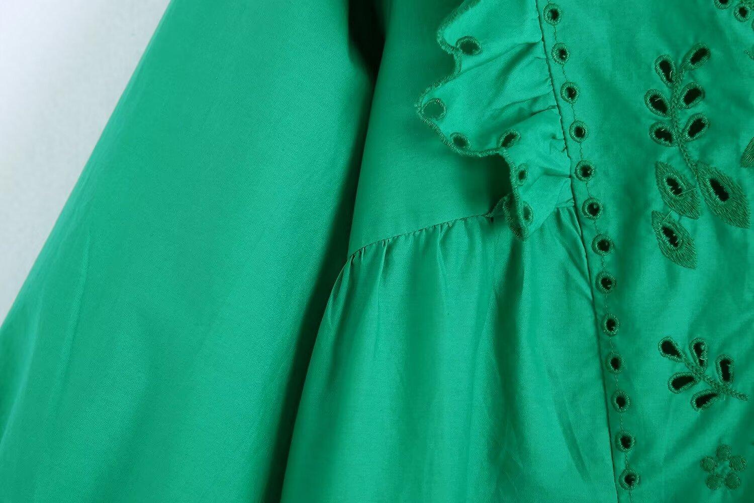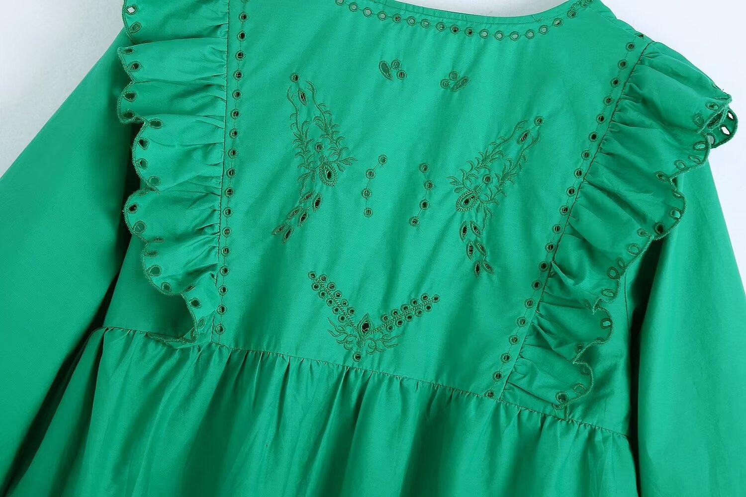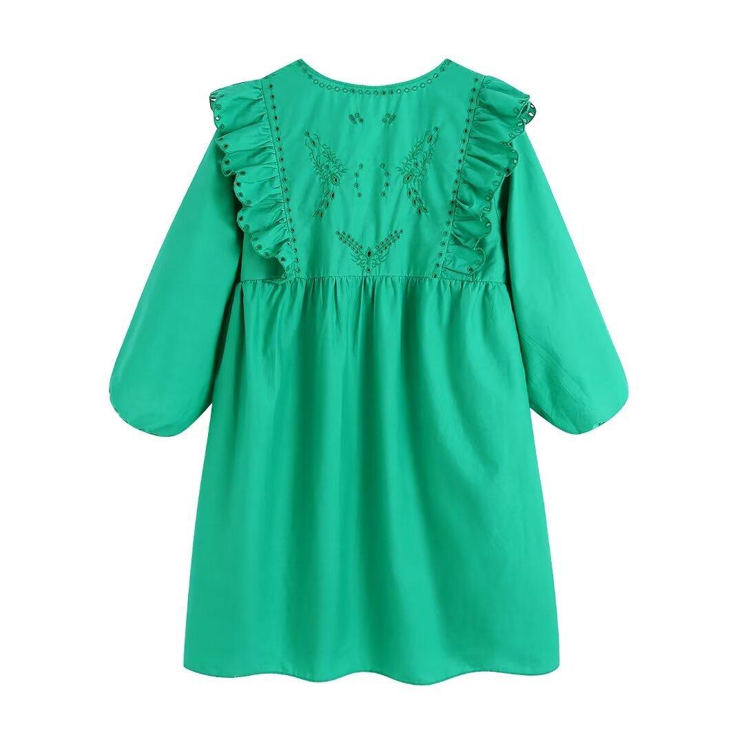 Venta al por mayor 2024 Primavera Nuevo Estilo Europeo Americano Vestido Camisero Bordado Calado de Manga Larga para Mujer