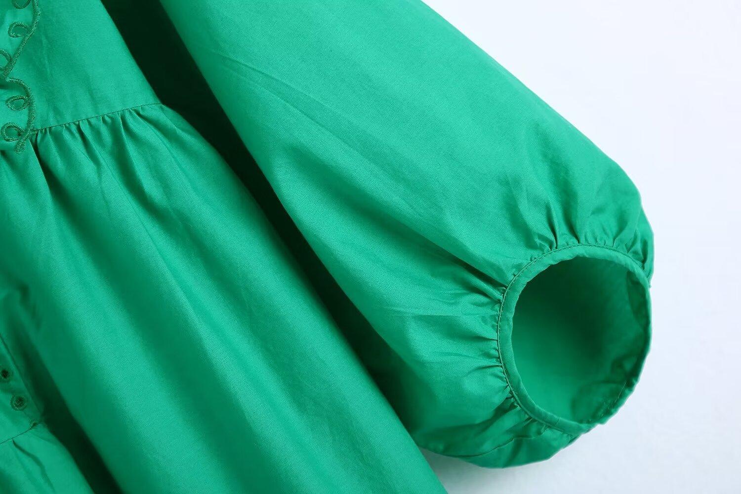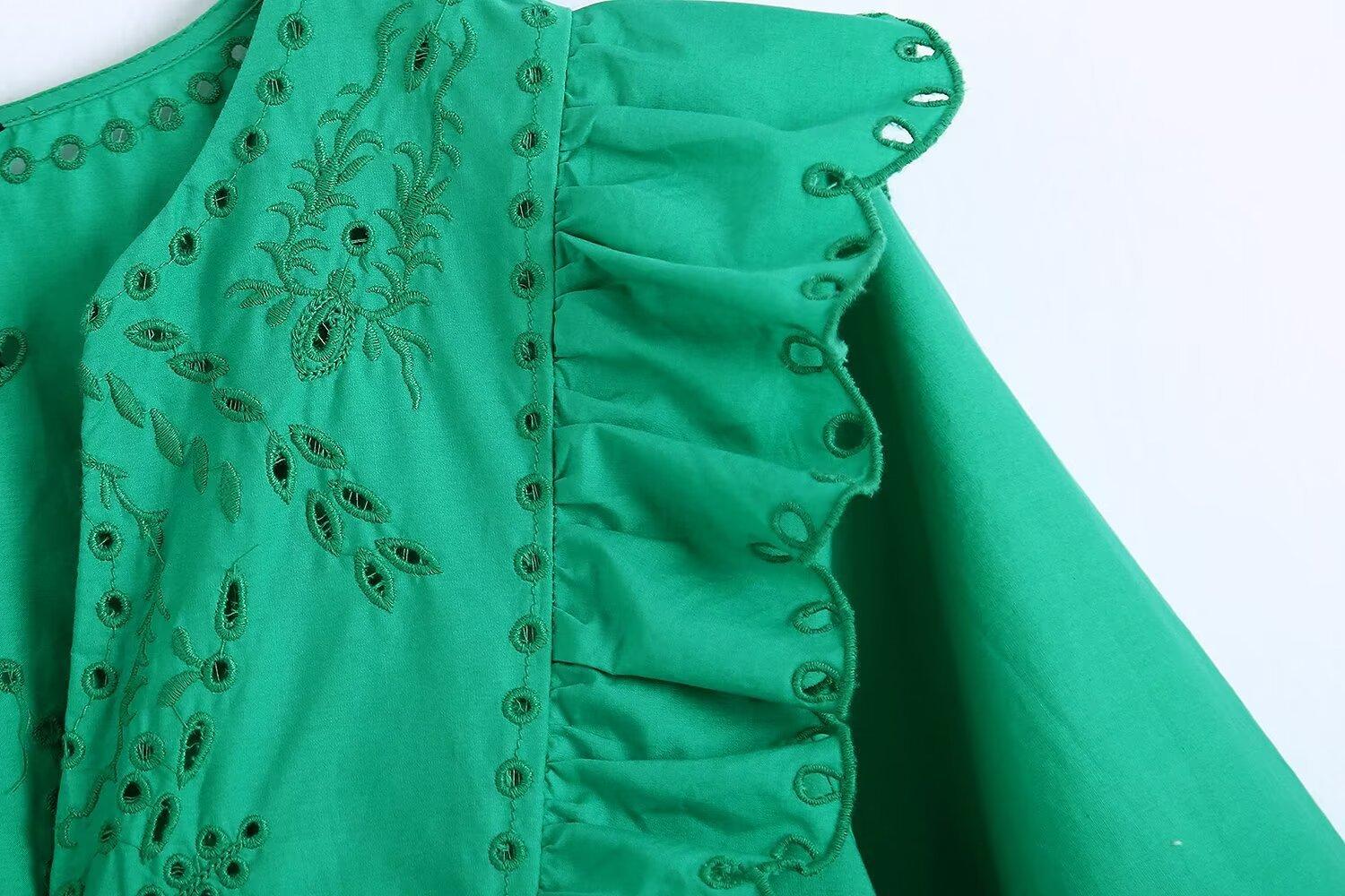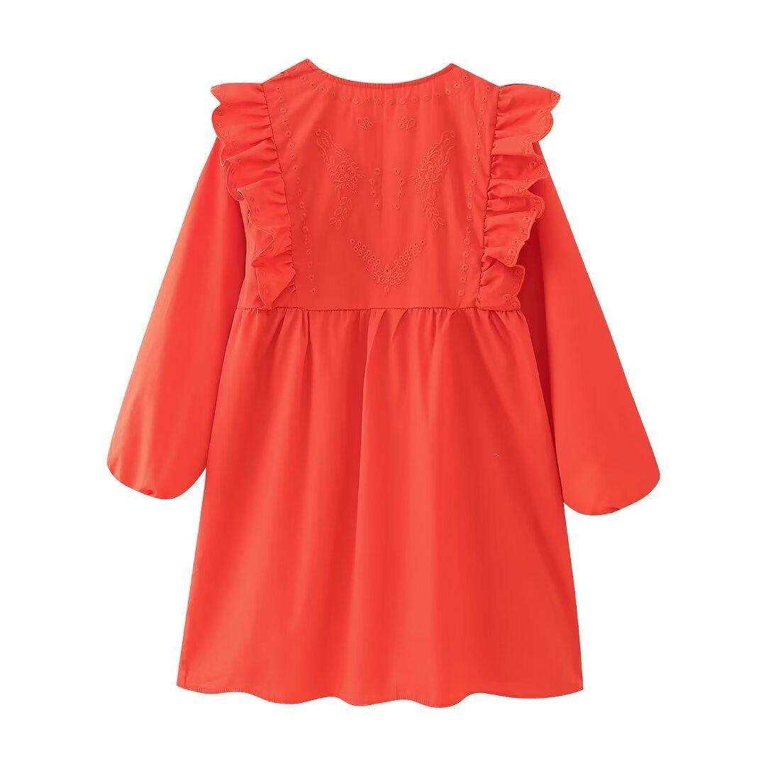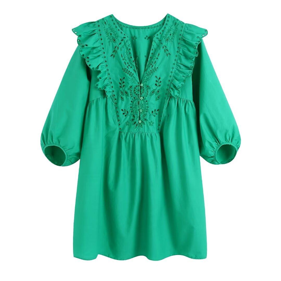 Venta al por mayor 2024 Primavera Nuevo Estilo Europeo Americano Vestido Camisero Bordado Calado de Manga Larga para Mujer