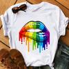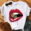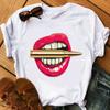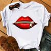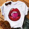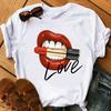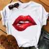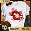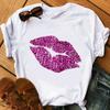 2025 Nueva Moda de Verano Manga Corta Estampado de Labios Rojos Estampado de Leopardo Estampado de Frutas Talla Grande Camiseta Top de Mujer