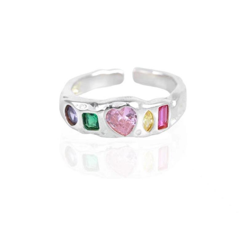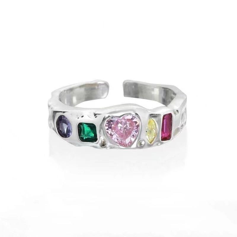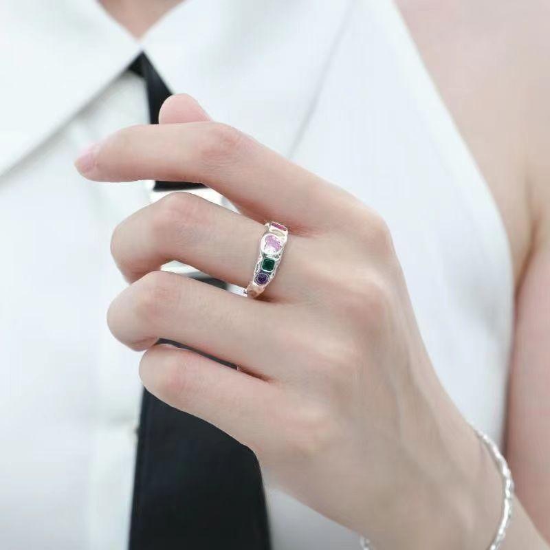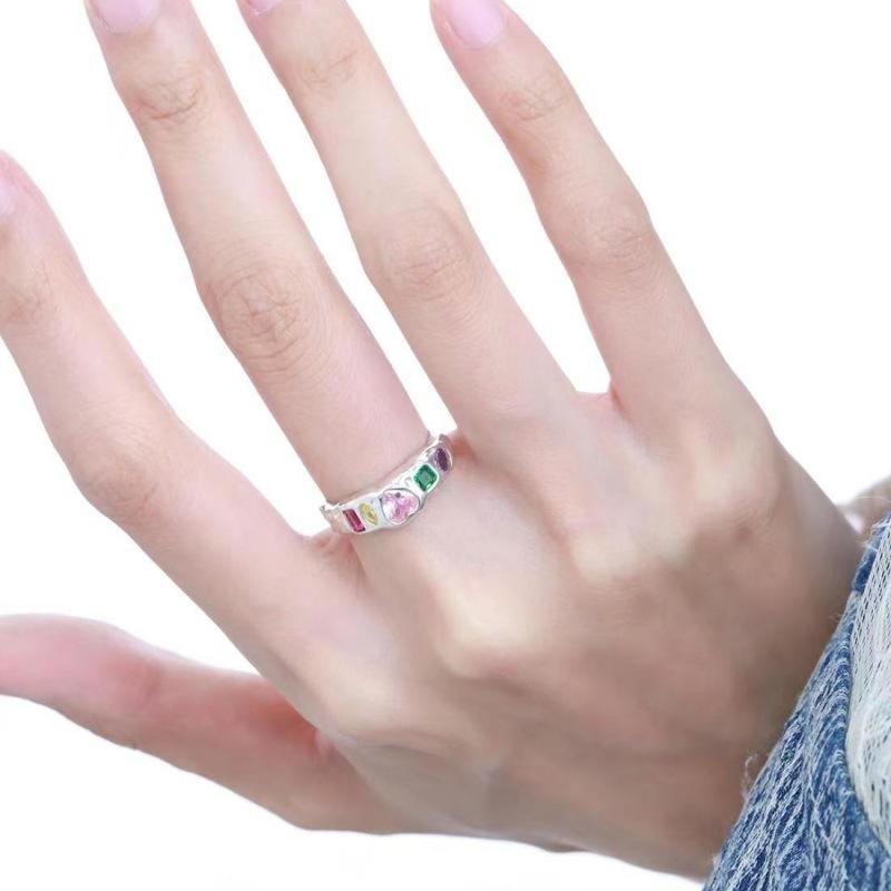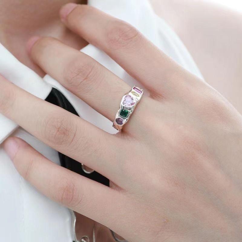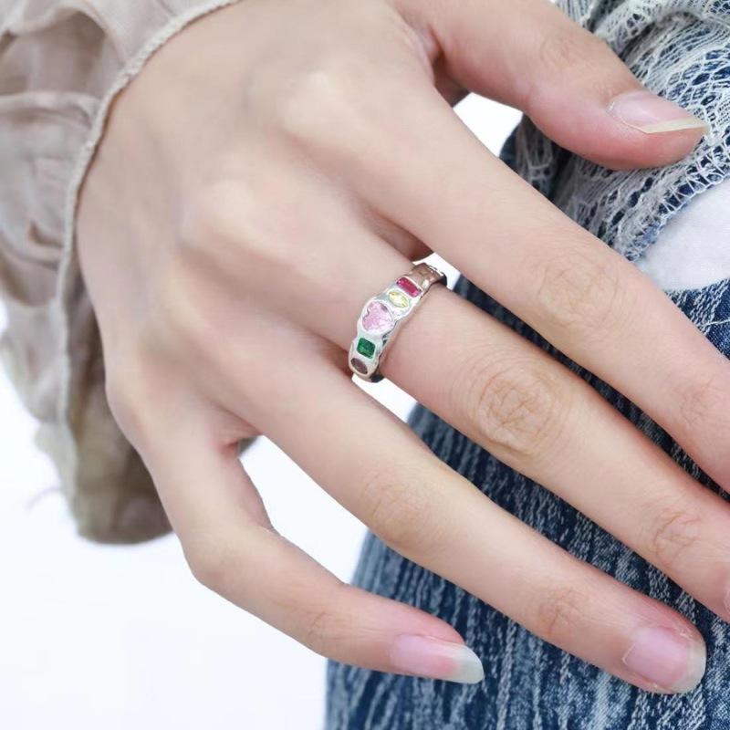 Anillo tesoro de color dopamina amor circón diseño nicho femenino alto sentido dedo índice apertura no puede quitar color moda dedo