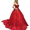 Comercio exterior europeo y americano Amazon AliExpress wish señoras nuevo vestido de novia rojo largo con temperamento de hombros descubiertos