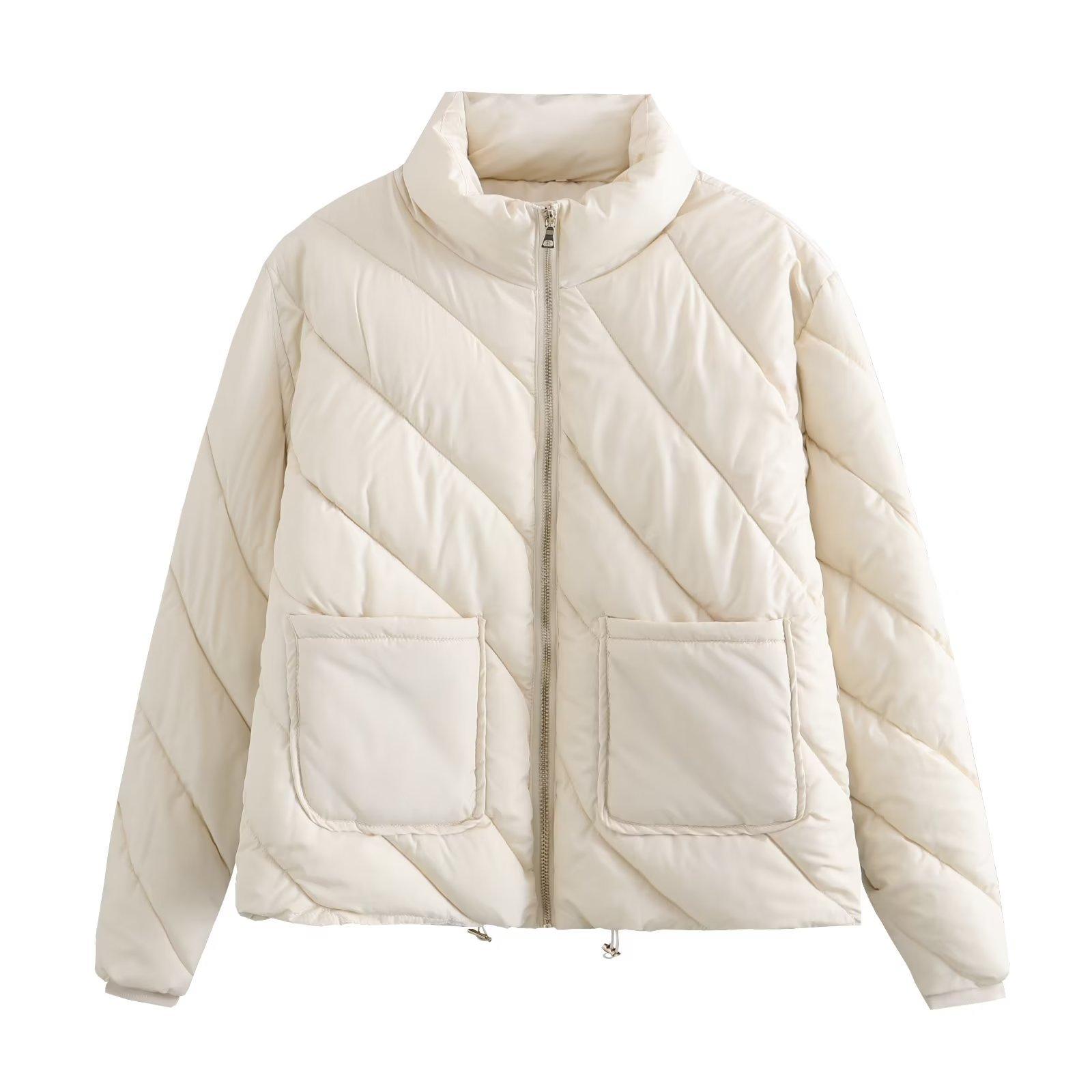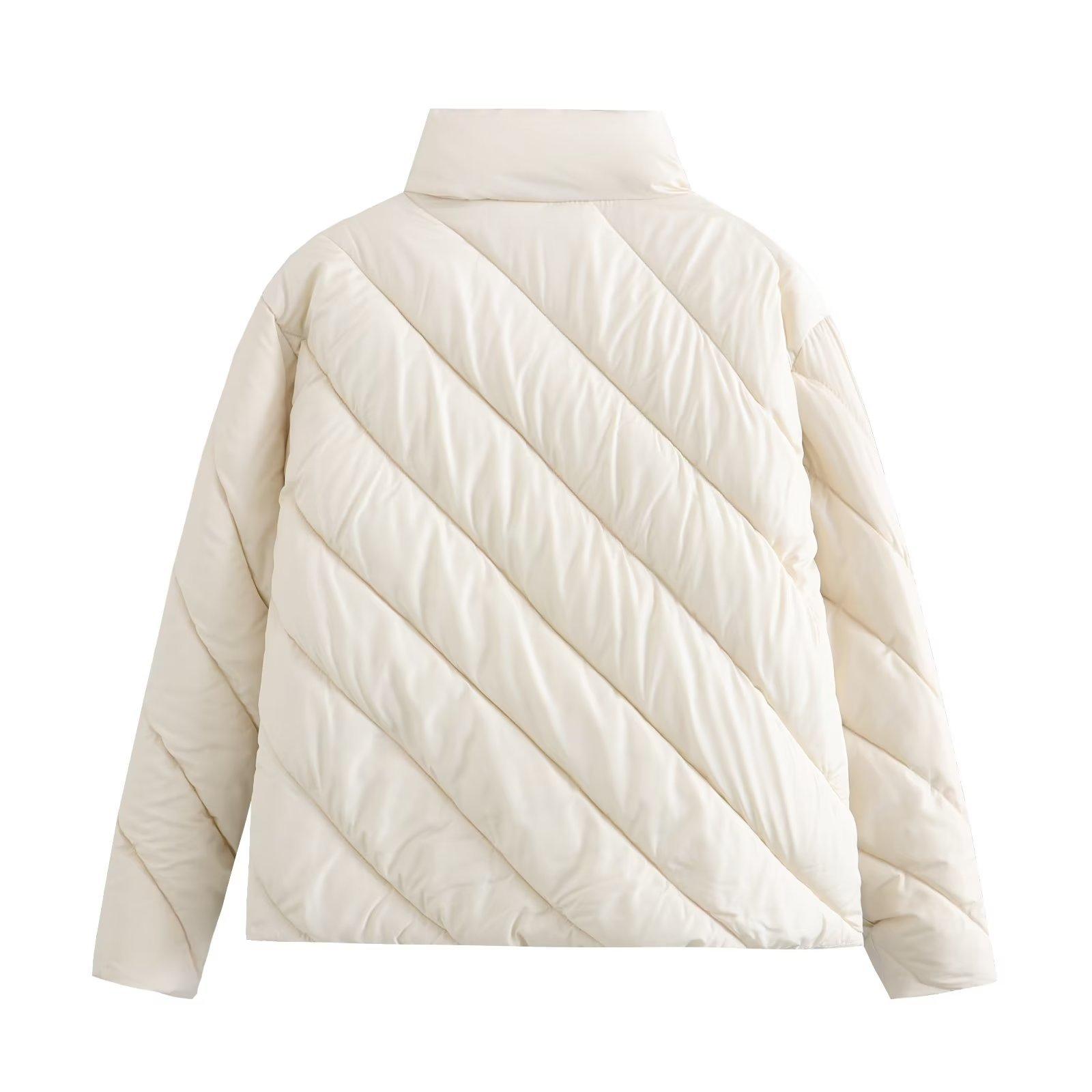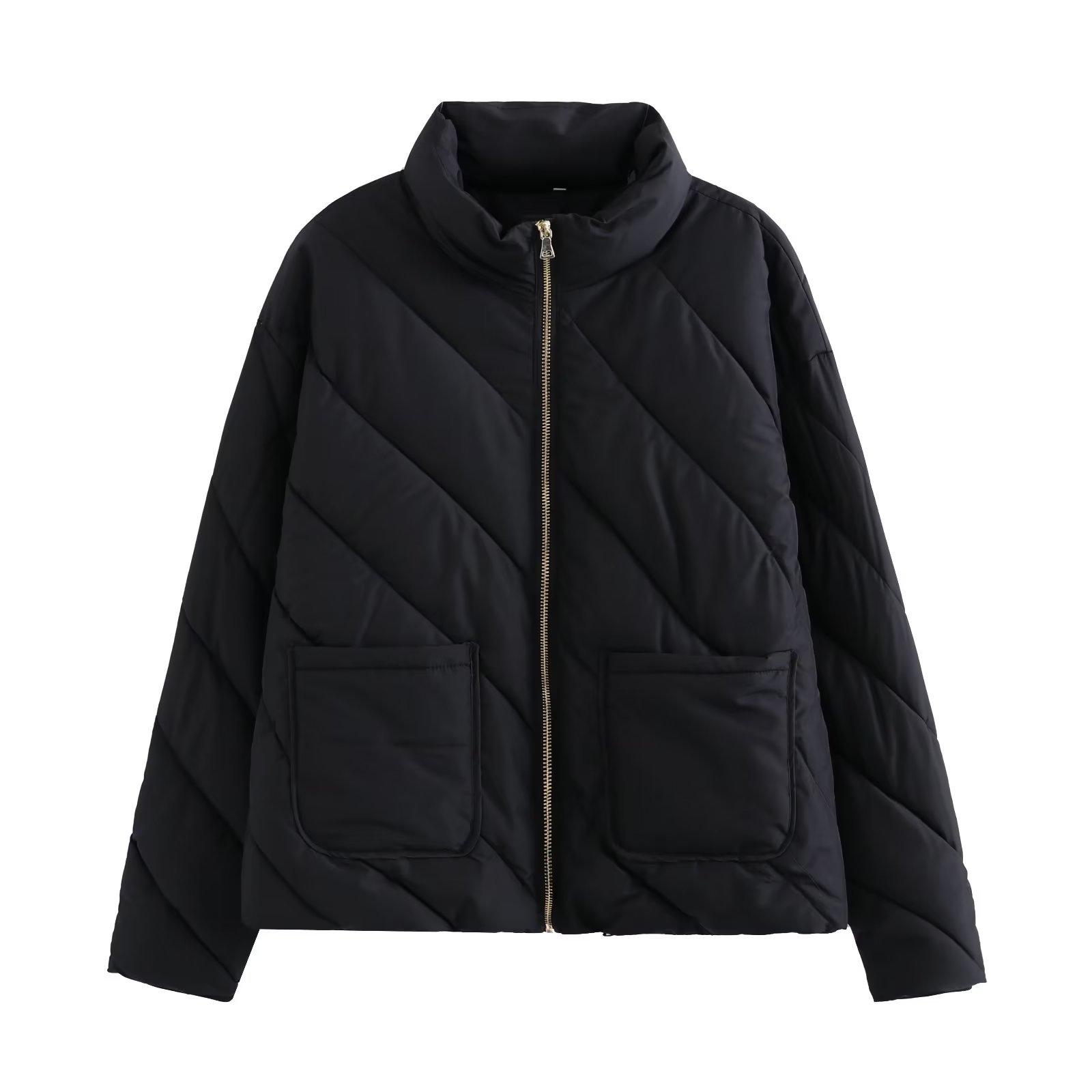 Otoño e Invierno Estilo Europeo y Americano Nueva Ropa de Mujer Cuello Alto Manga Larga Sarga Acolchada Cálida Algodón Chaqueta Exterior Exterior de Algodón Fino
