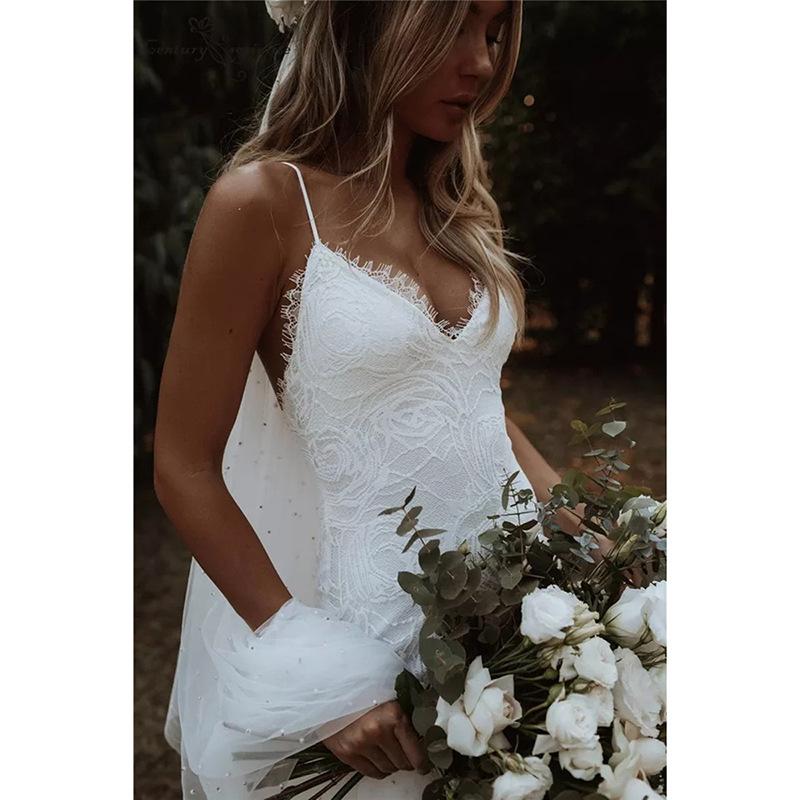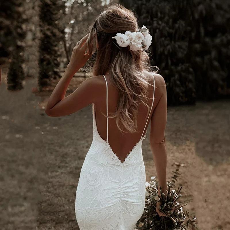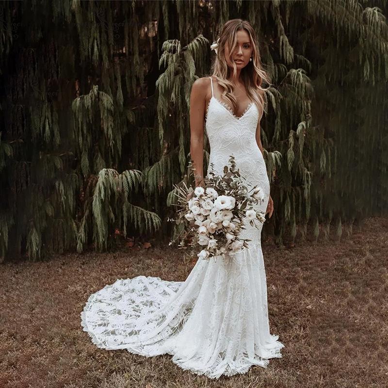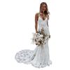 Amazon Bestseller Vestido de Novia Transfronterizo 2025 Encaje Espalda Descubierta Bohemio Playa Sexy Vestido de Fiesta con Cola