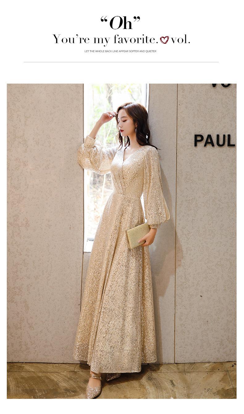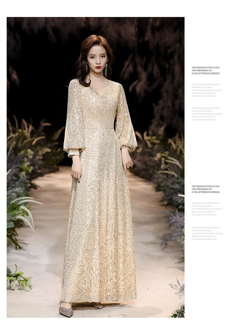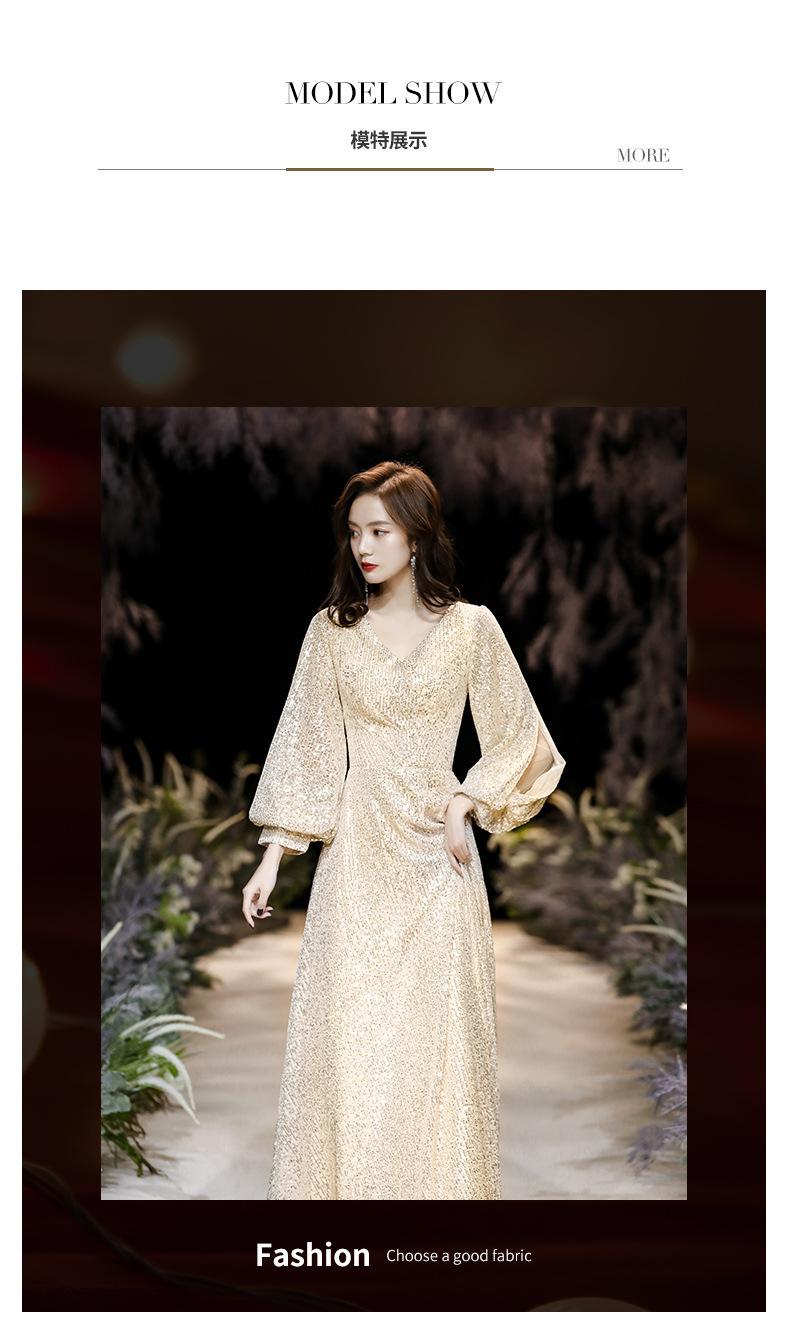 Vestido de Noche de Banquete 2025 Nuevo Elegante Vestido de Dama Dorada Largo Anfitrión Fiesta Anual Vestido de Cena