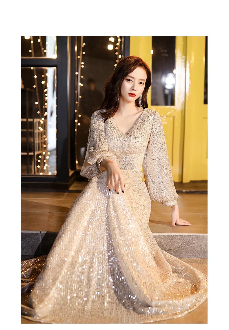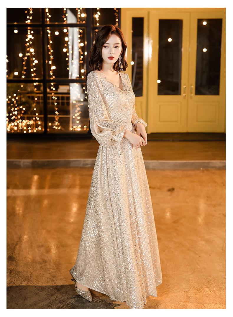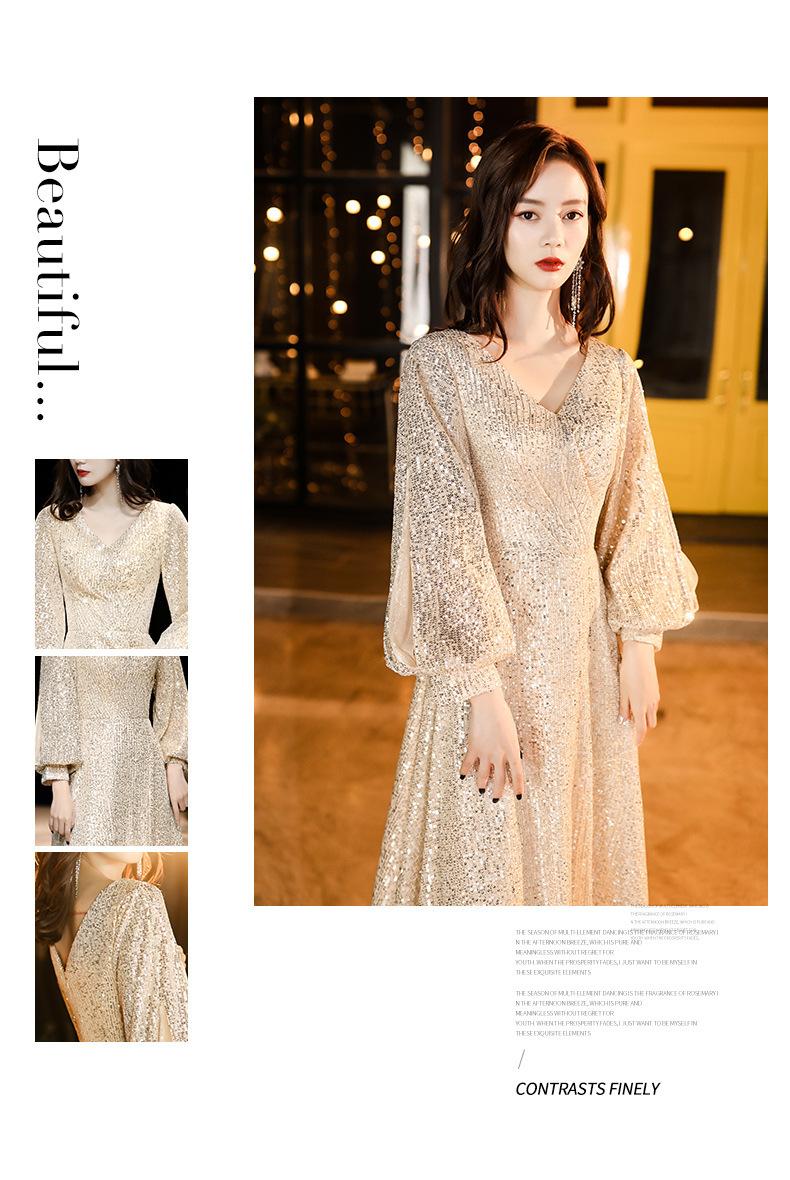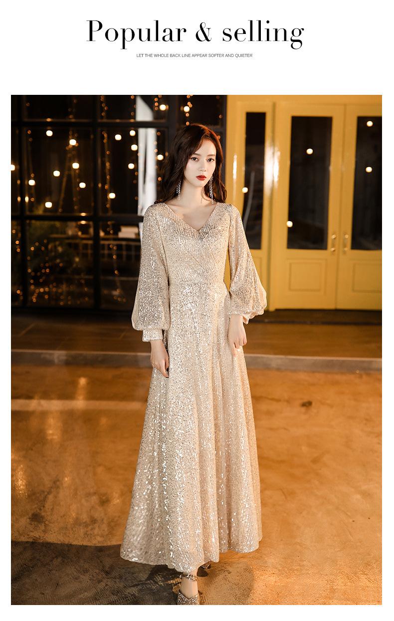 Vestido de Noche de Banquete 2025 Nuevo Elegante Vestido de Dama Dorada Largo Anfitrión Fiesta Anual Vestido de Cena