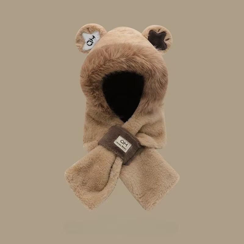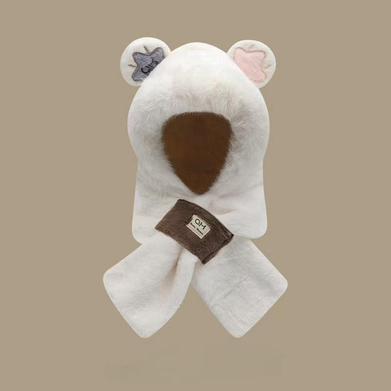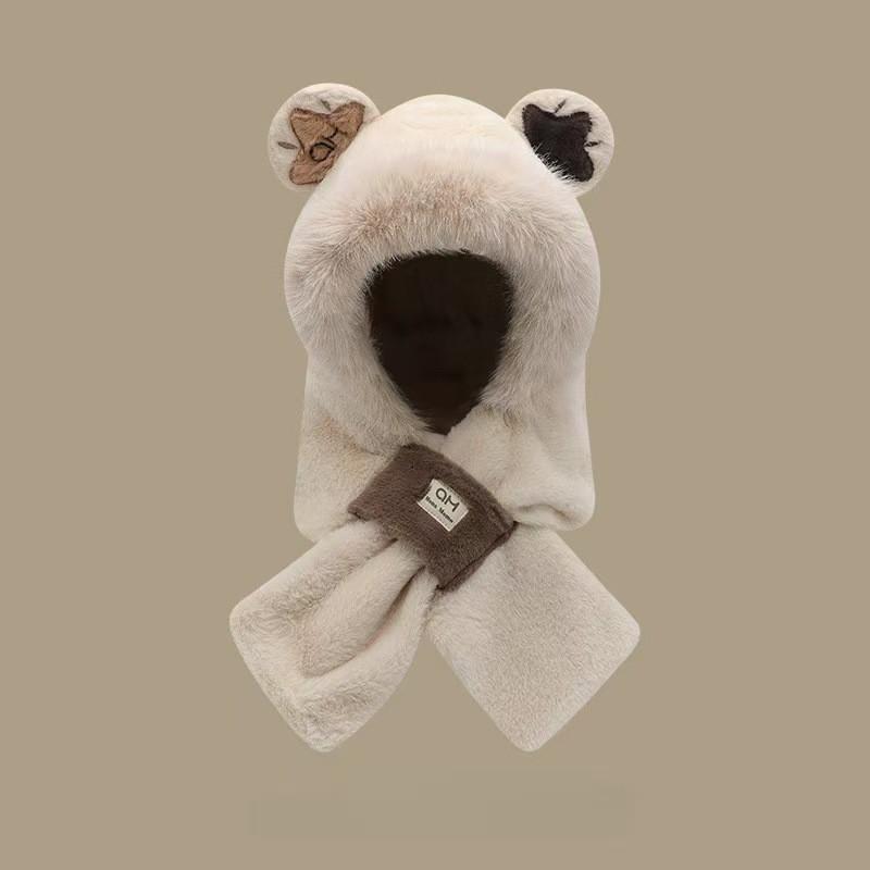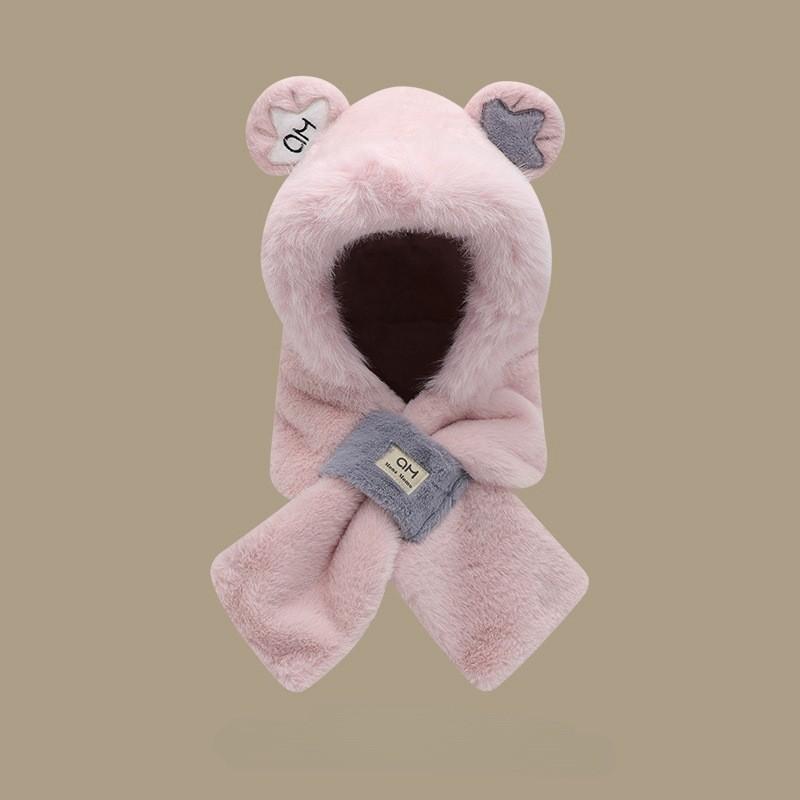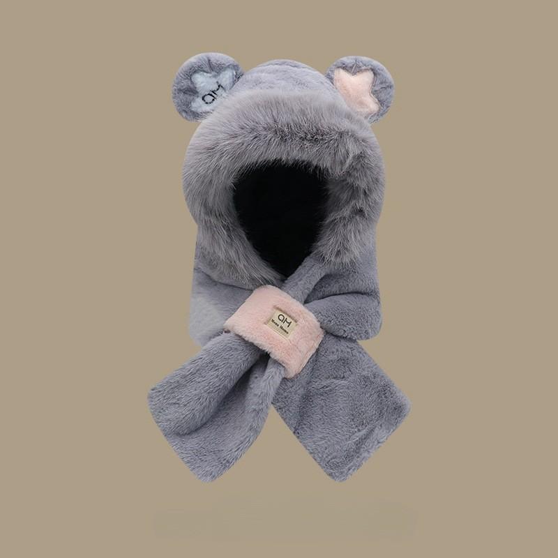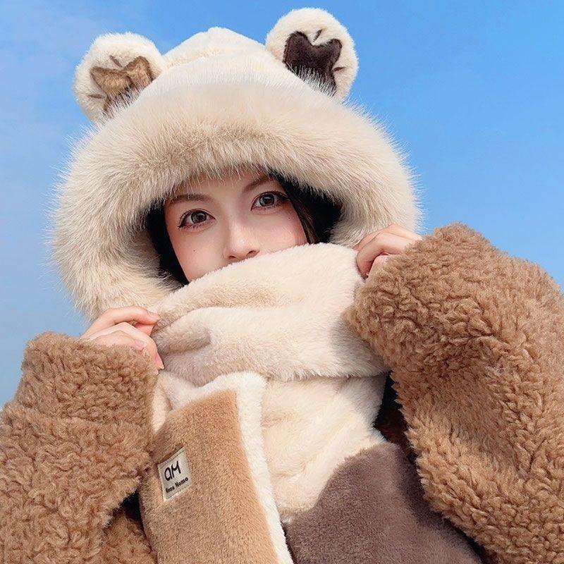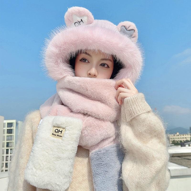 Sombrero de Mujer Otoño e Invierno Bufanda y Guantes Juego de Tres Piezas Dos Piezas Imitación Piel de Conejo Felpa Cálido Protección para las Orejas Capucha para Ciclismo
