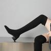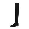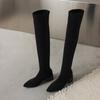 Botas de mujer de talla grande de gamuza elástica estilo coreano para poner negras tacón medio punta afilada tacón de bloque suela de goma botas por encima de la rodilla botas largas nuevas