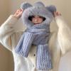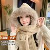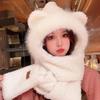 Lindo Gorro de Felpa de Oso, Bufanda y Guantes Todo en Uno para Mujeres, Otoño e Invierno a Prueba de Viento, Cálido y Protector de Orejas Tres en Uno a Cuadros