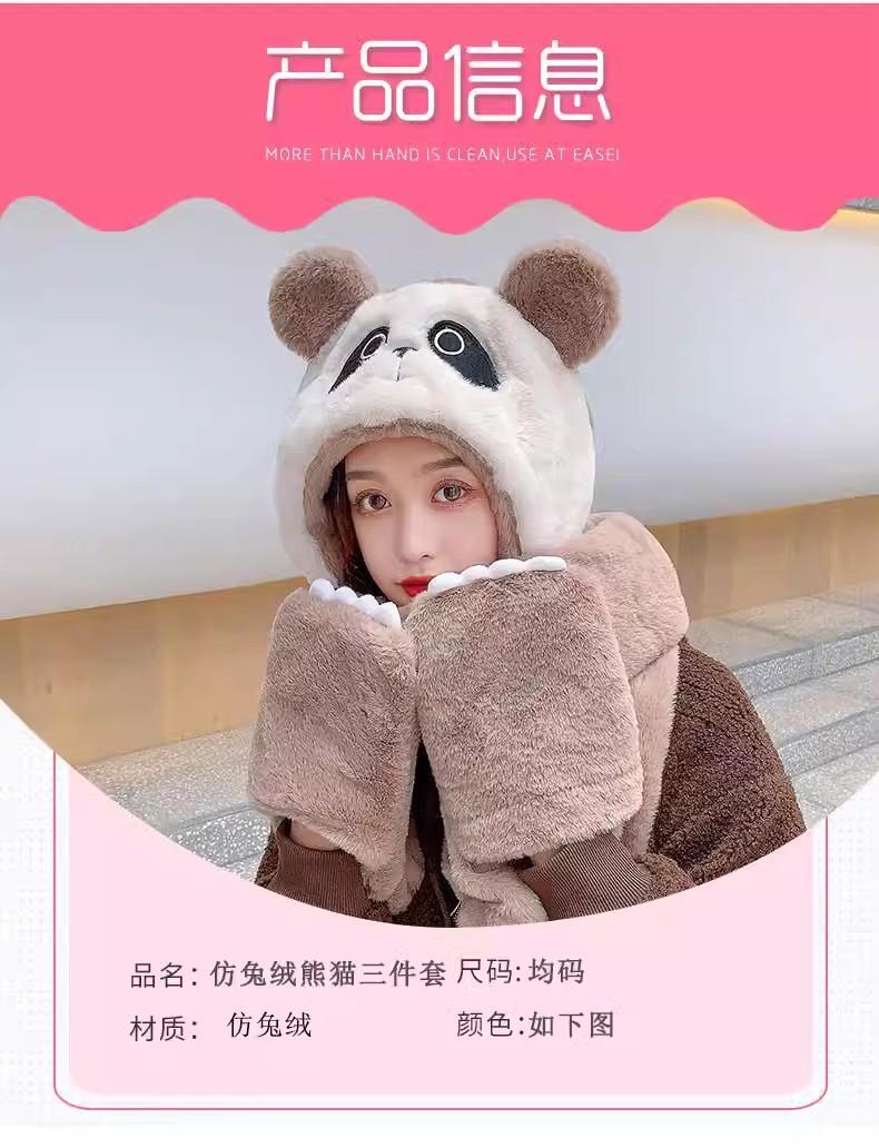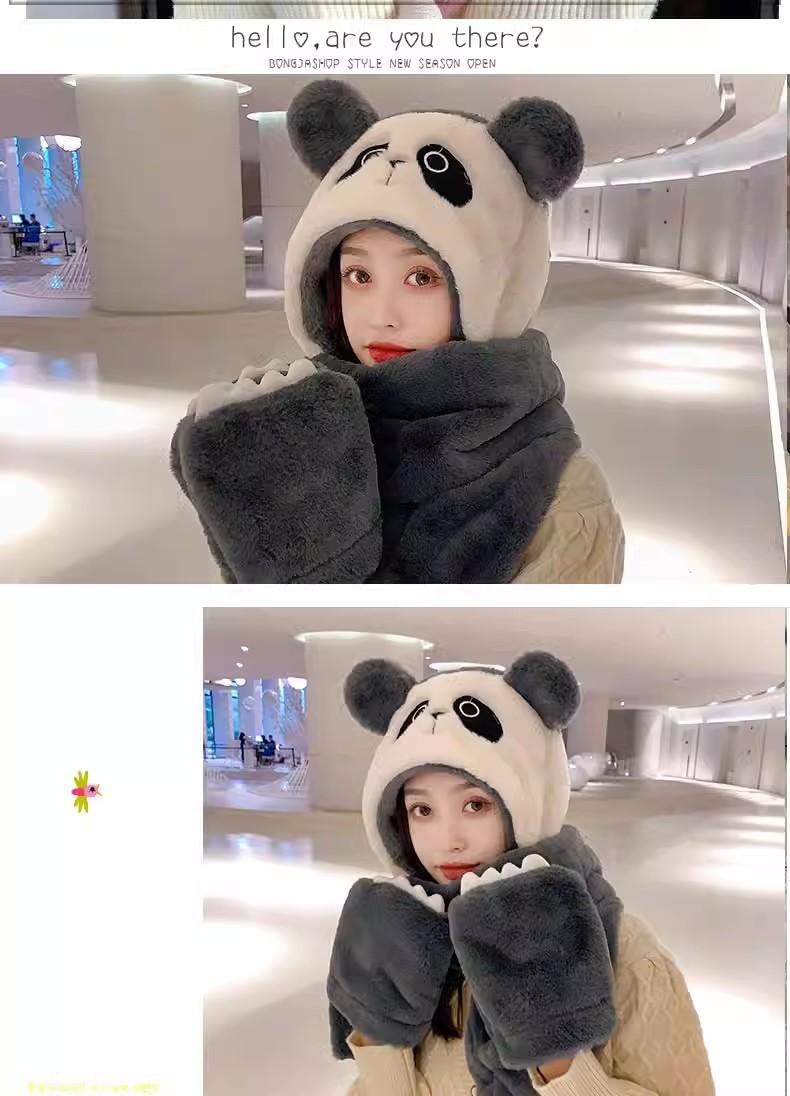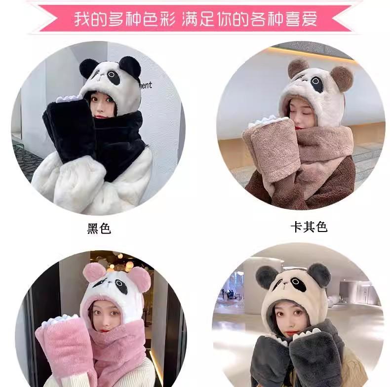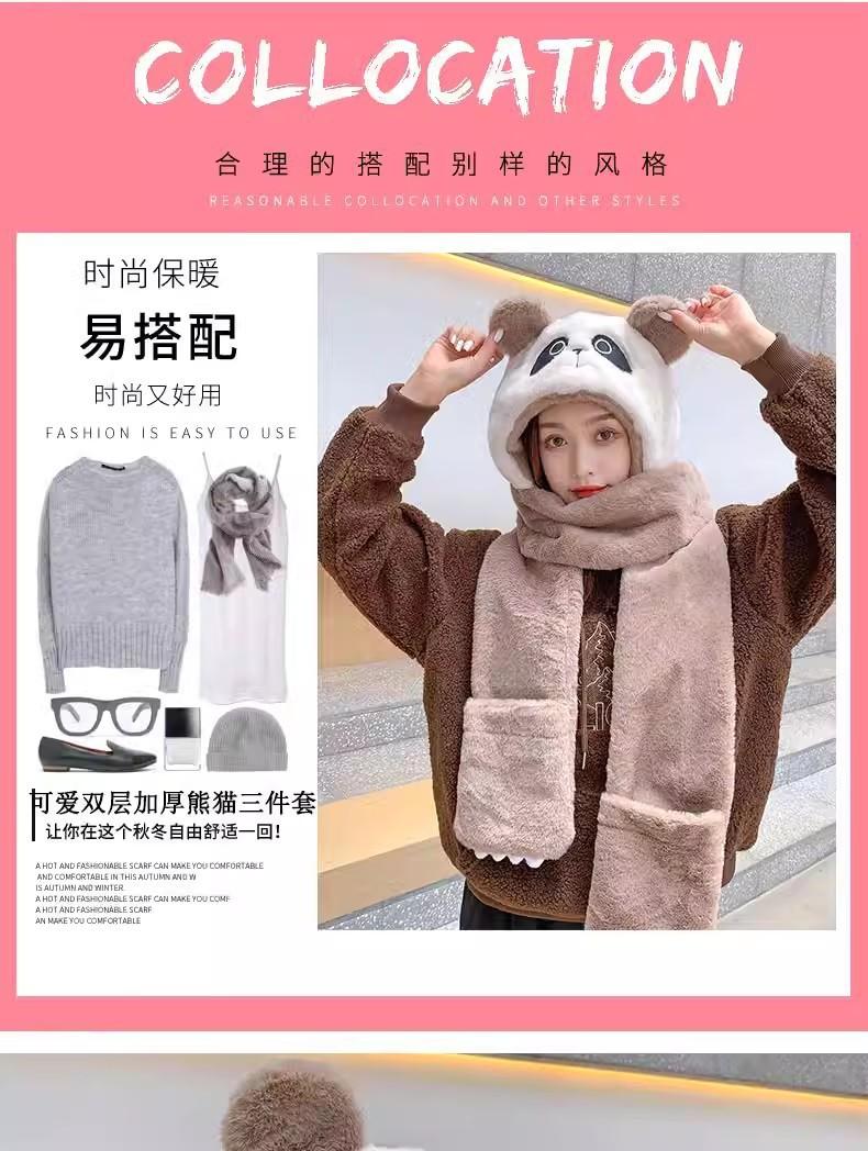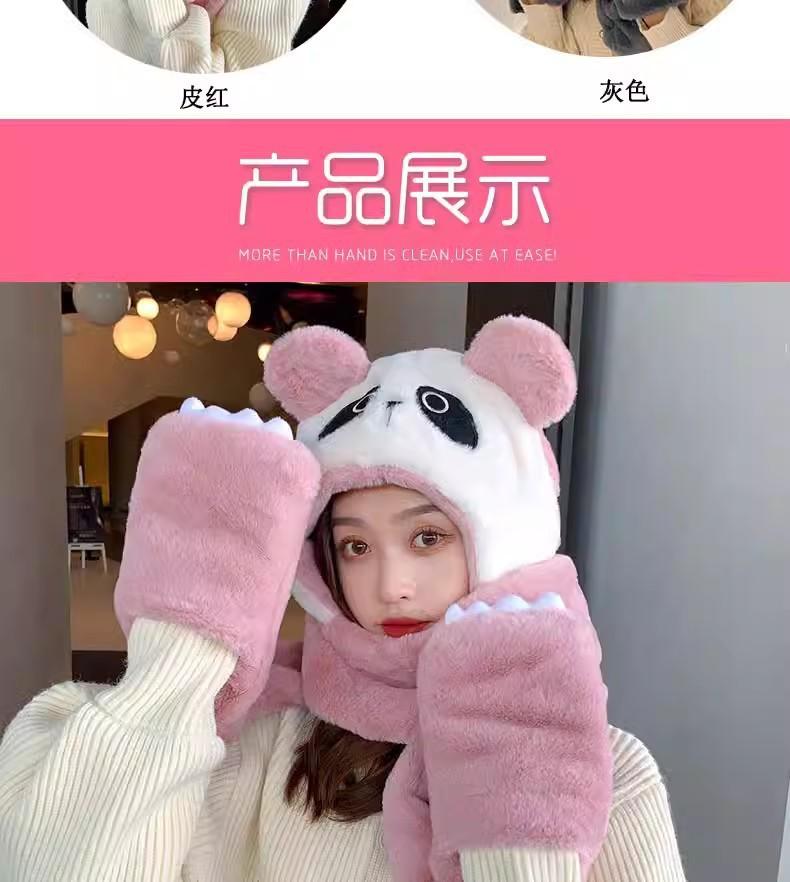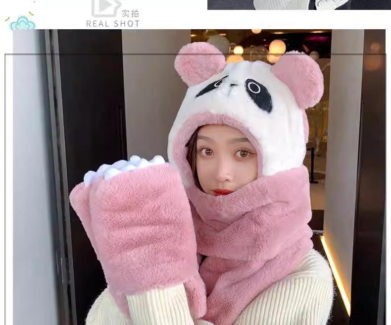 Panda black, Panda khaki, Panda pink, Panda gray, Hat, scarf and gloves in one [cute style-strawberry red], Ha...