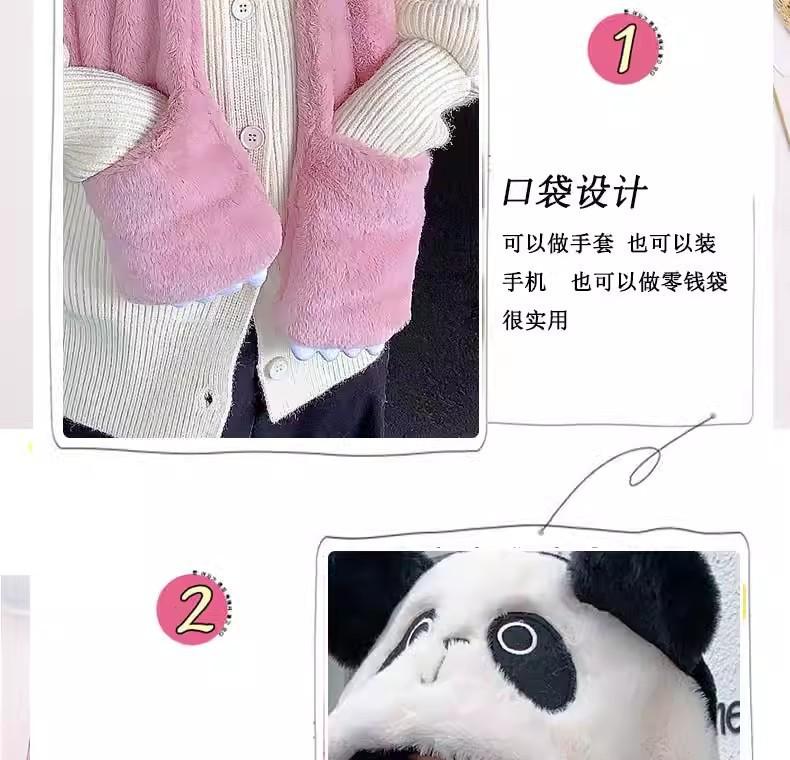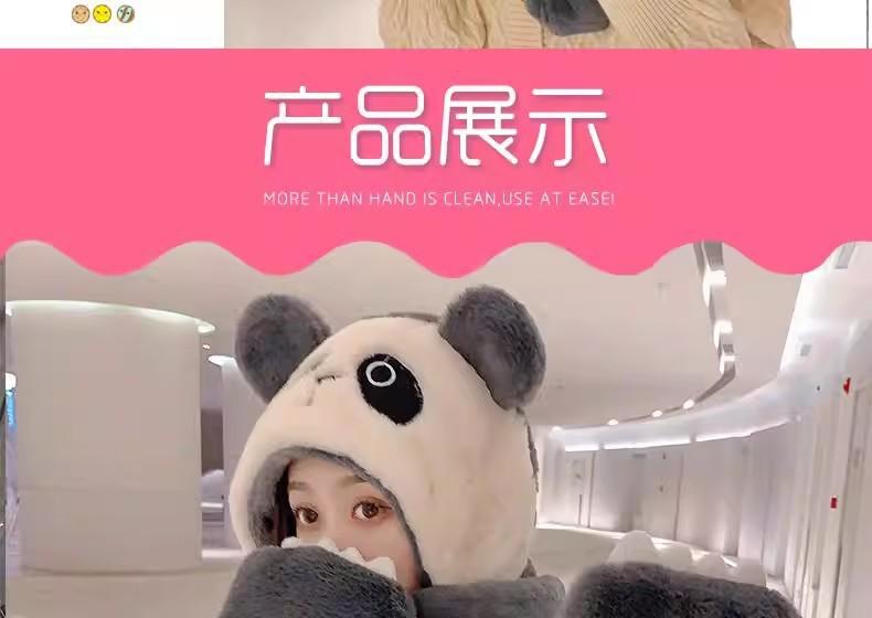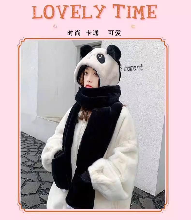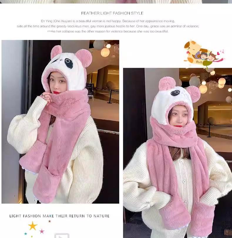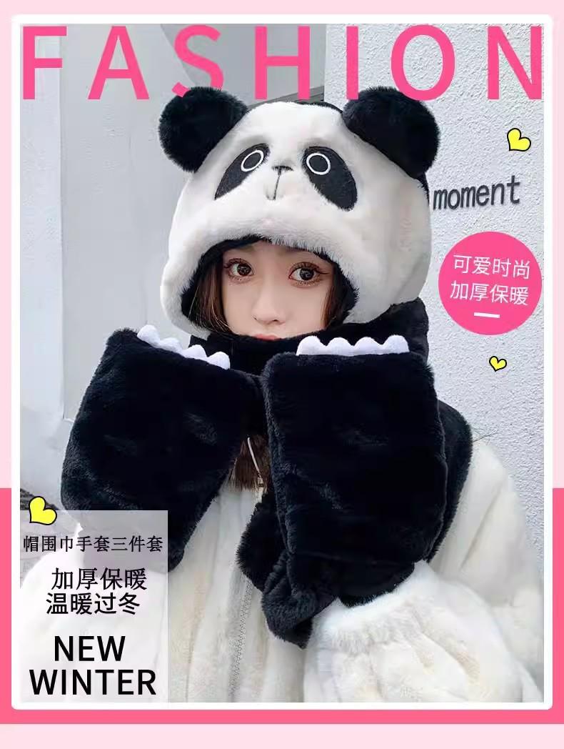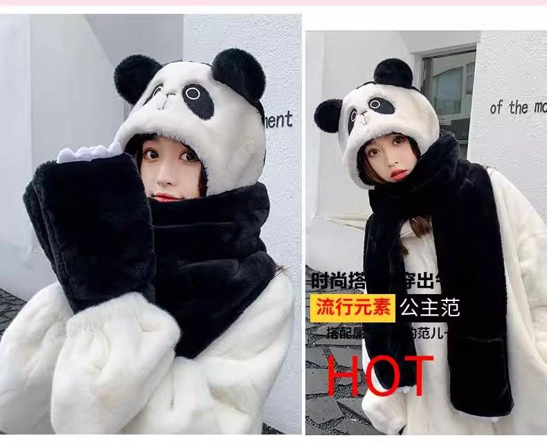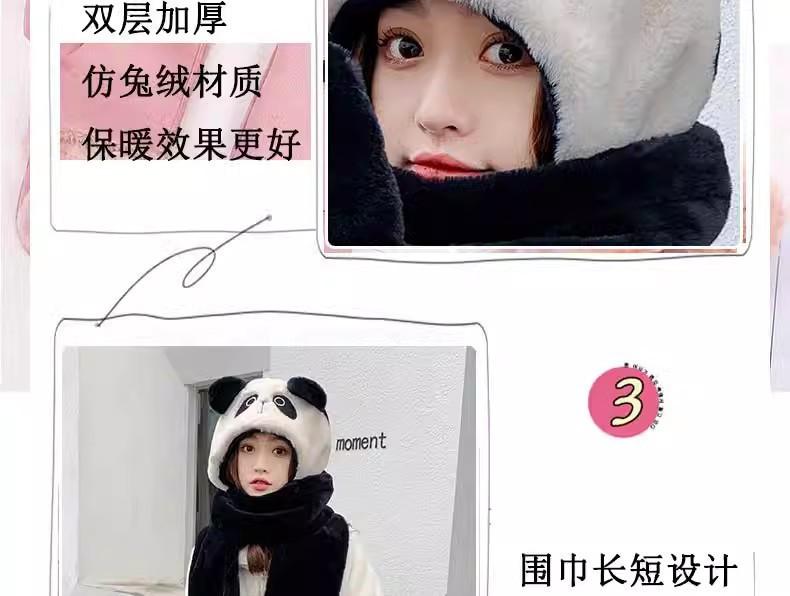 Panda black, Panda khaki, Panda pink, Panda gray, Hat, scarf and gloves in one [cute style-strawberry red], Ha...