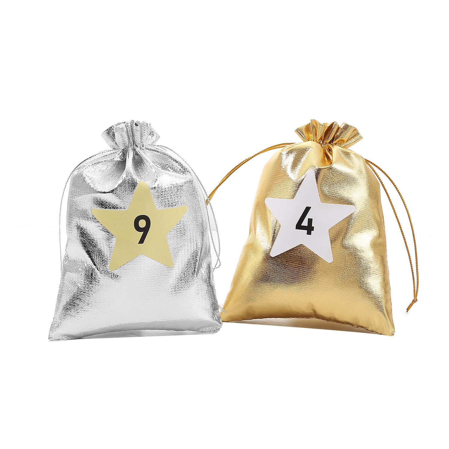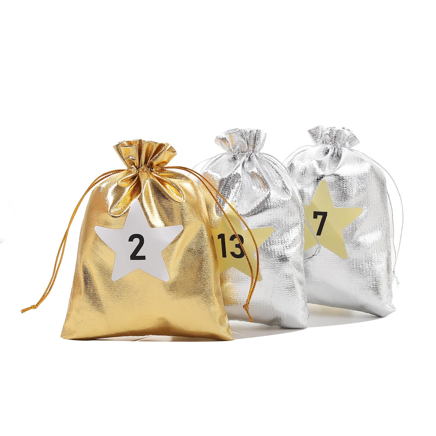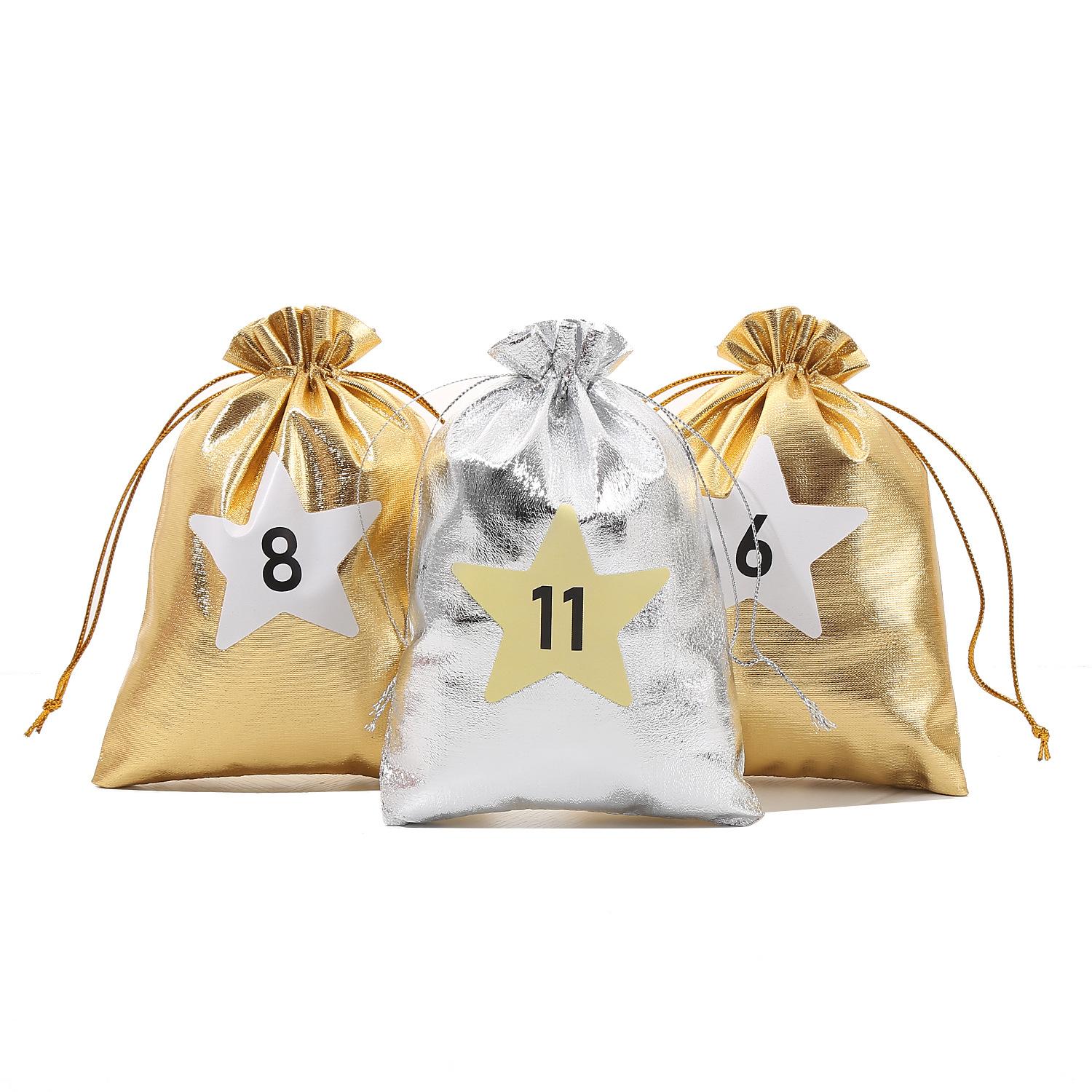 Nueva Bolsa de Regalo de Dulces Navideños Transfronteriza Bolsa con Cordón Navideño Bolsa Dorada y Plateada Bolsa con Cordón para Regalo de Navidad Bolsa Pequeña de Tela