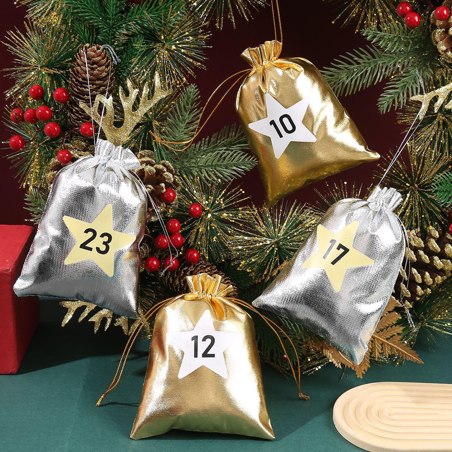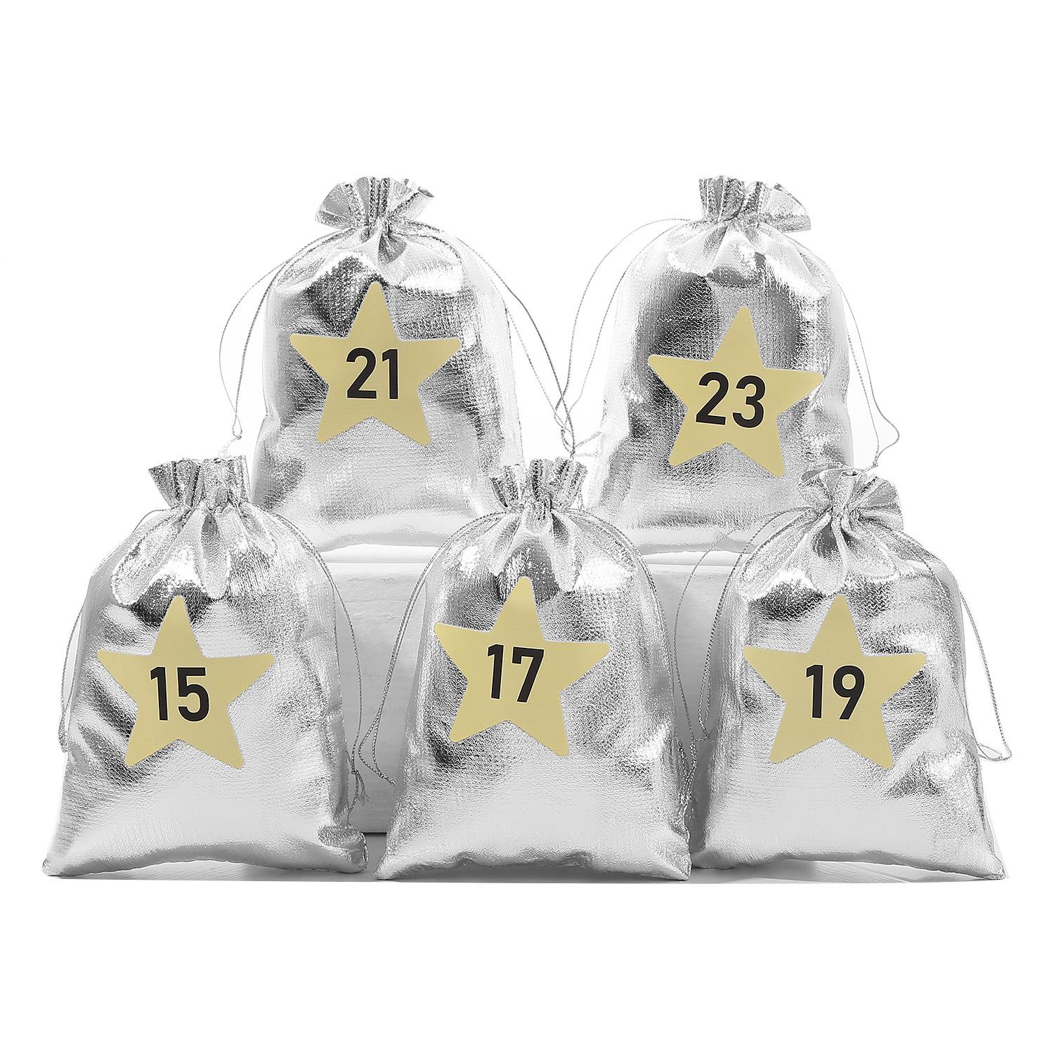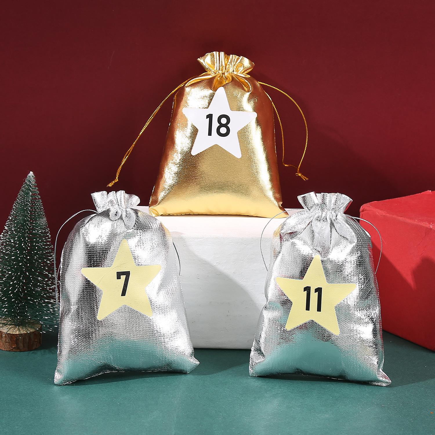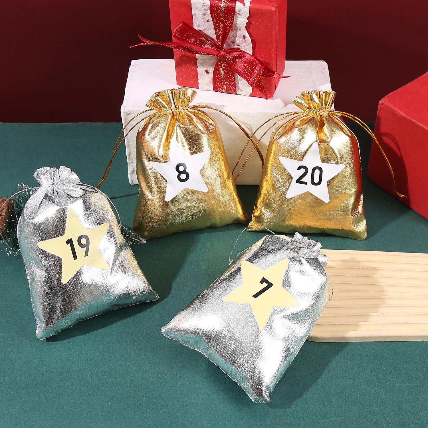 Nueva Bolsa de Regalo de Dulces Navideños Transfronteriza Bolsa con Cordón Navideño Bolsa Dorada y Plateada Bolsa con Cordón para Regalo de Navidad Bolsa Pequeña de Tela