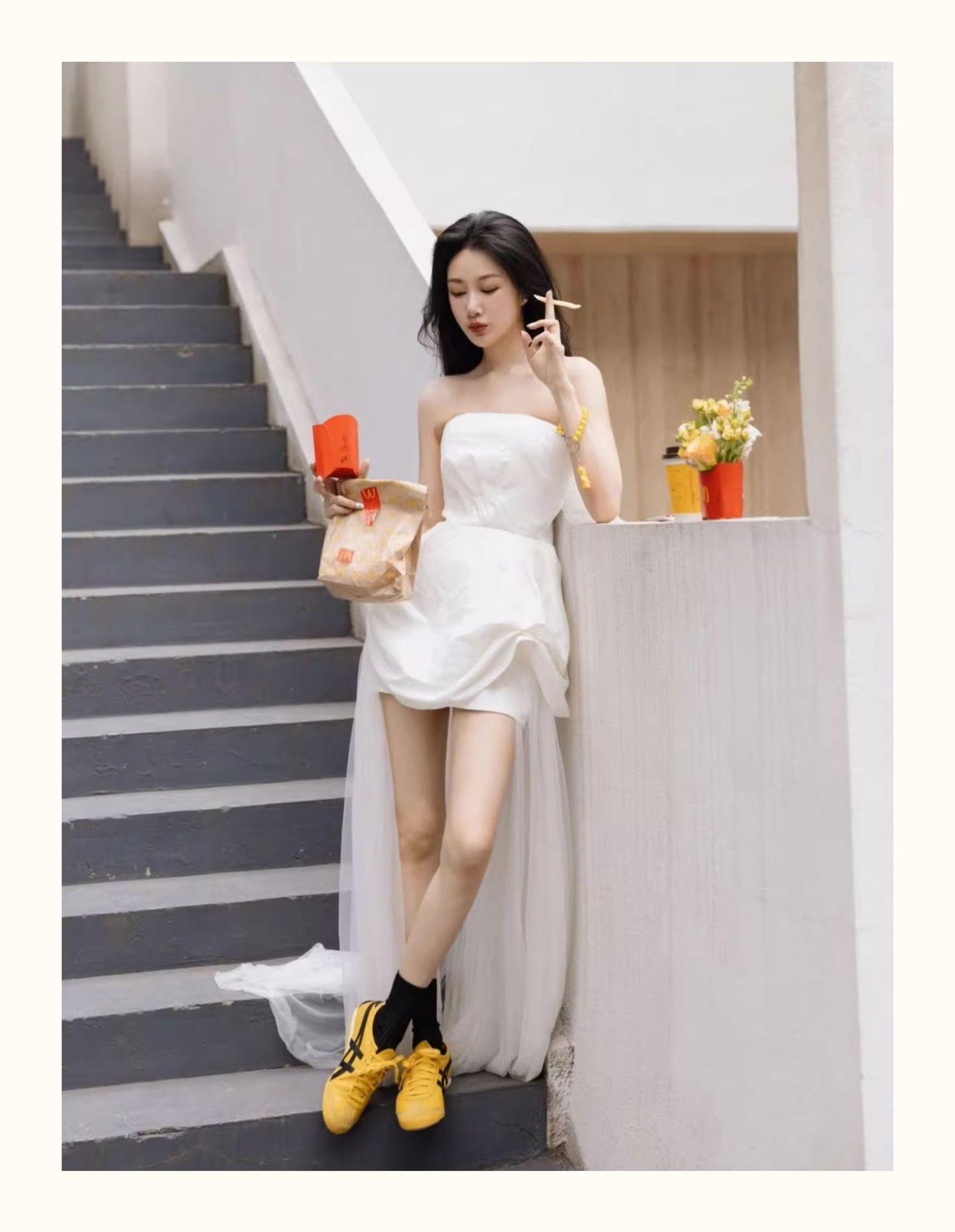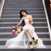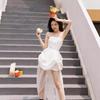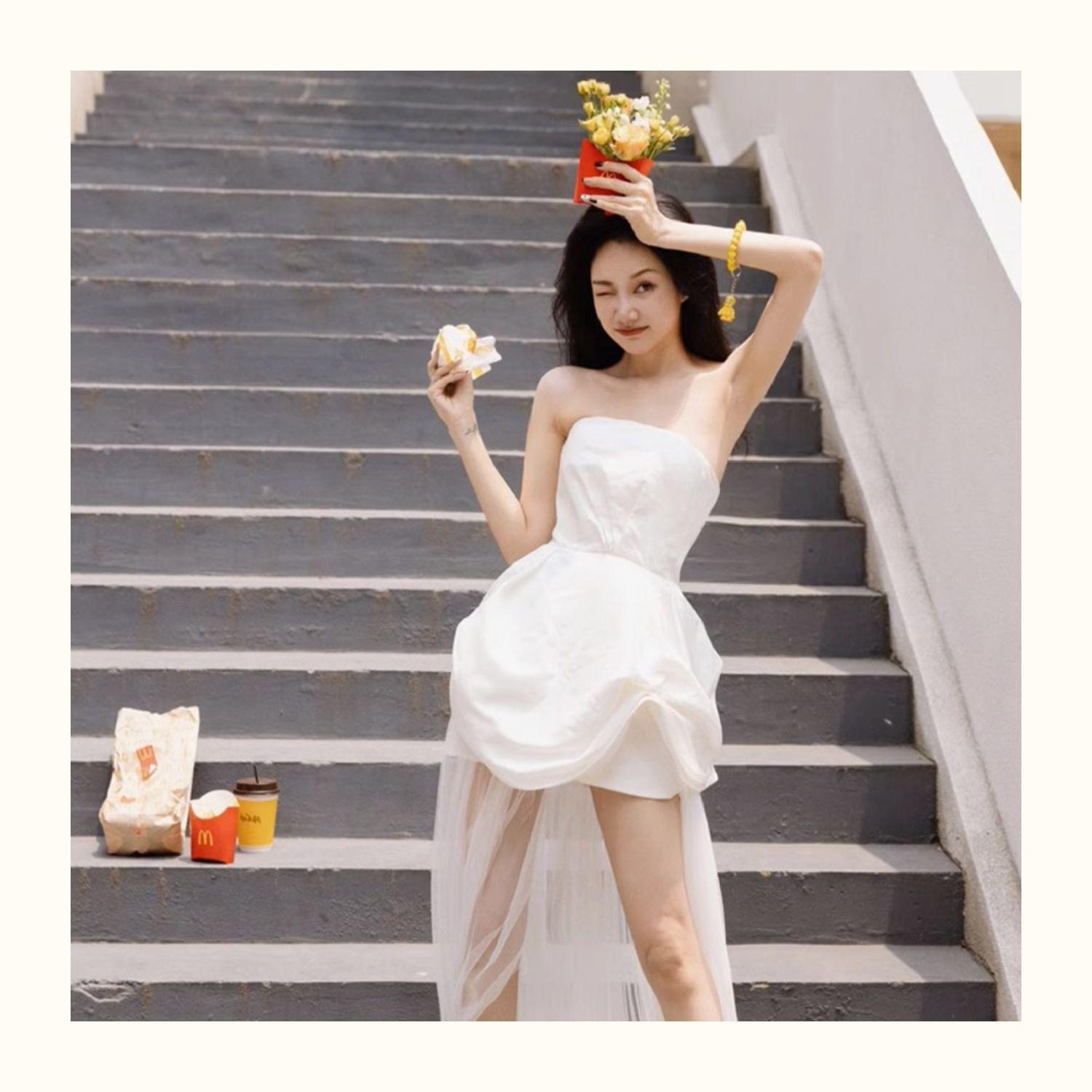 Vestido de Mañana Blanco Francés Strapless Vestido de Novia Ligero Banquete Cumpleaños Viaje Sesión de Mañana Vestido de Bienvenida Vestido de Noche vestido