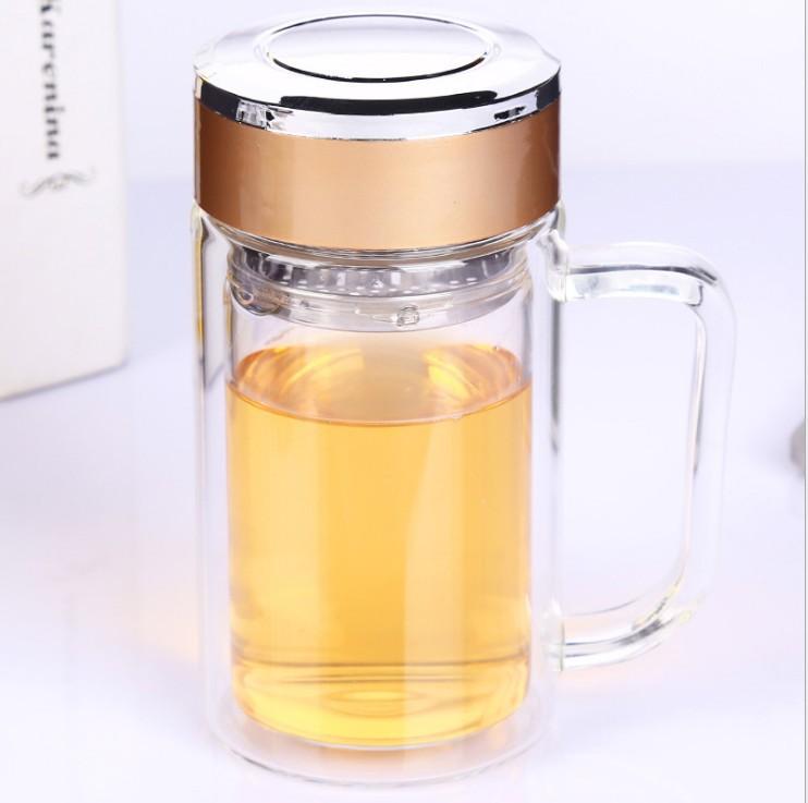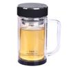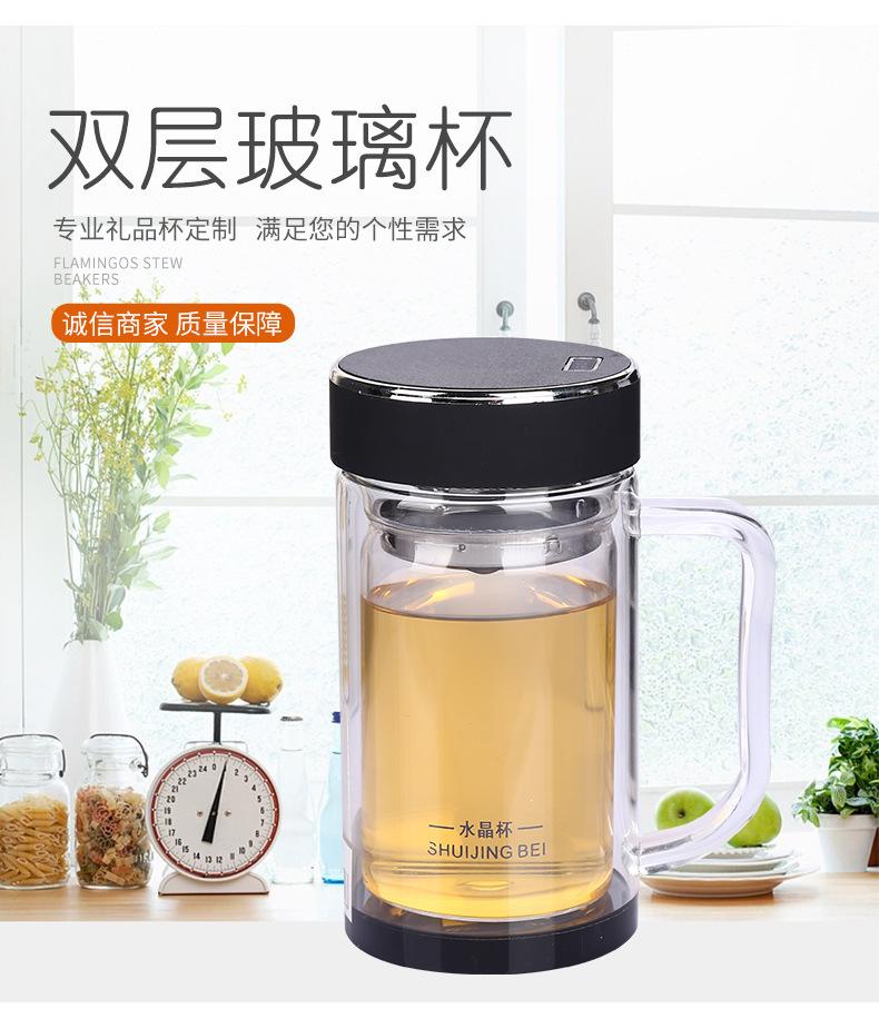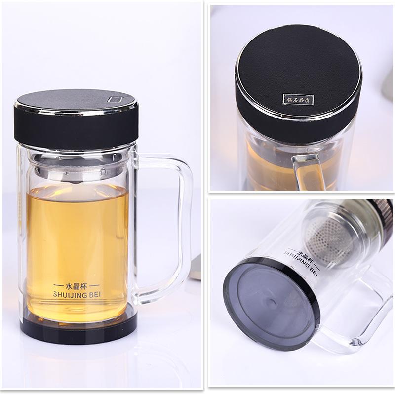Taza publicitaria al por mayor del fabricante con asa taza de oficina taza de vidrio de cristal de doble capa asa taza de agua de negocios logotipo personalizado