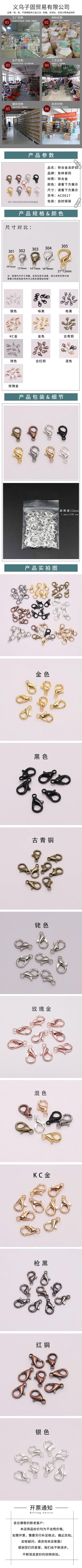 Aleación conservadora de color negro broche de langosta grande accesorios con cuentas collar pulsera cierre hebilla cabeza accesorios de joyería diy llavero