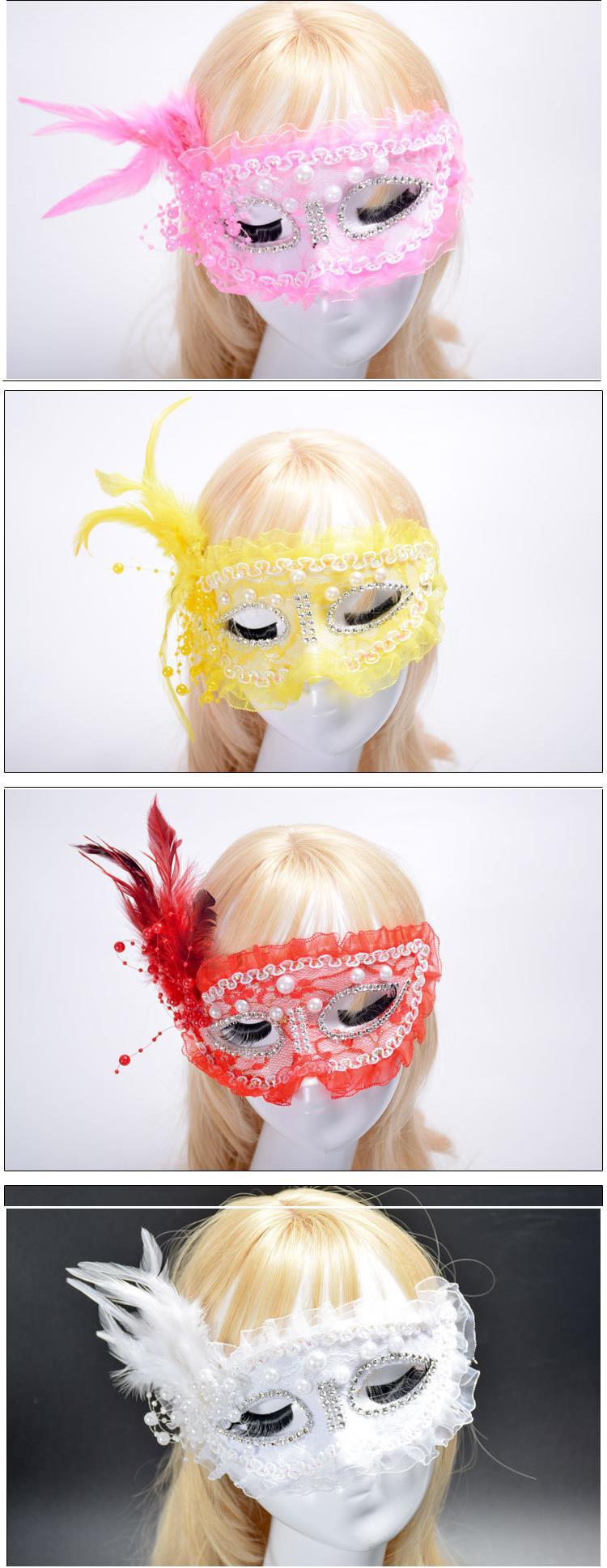 Nueva Máscara de Encaje de Mascarada de Halloween Perla Pluma Máscara Roja Media Cara Máscara de Princesa Máscara de Ojos