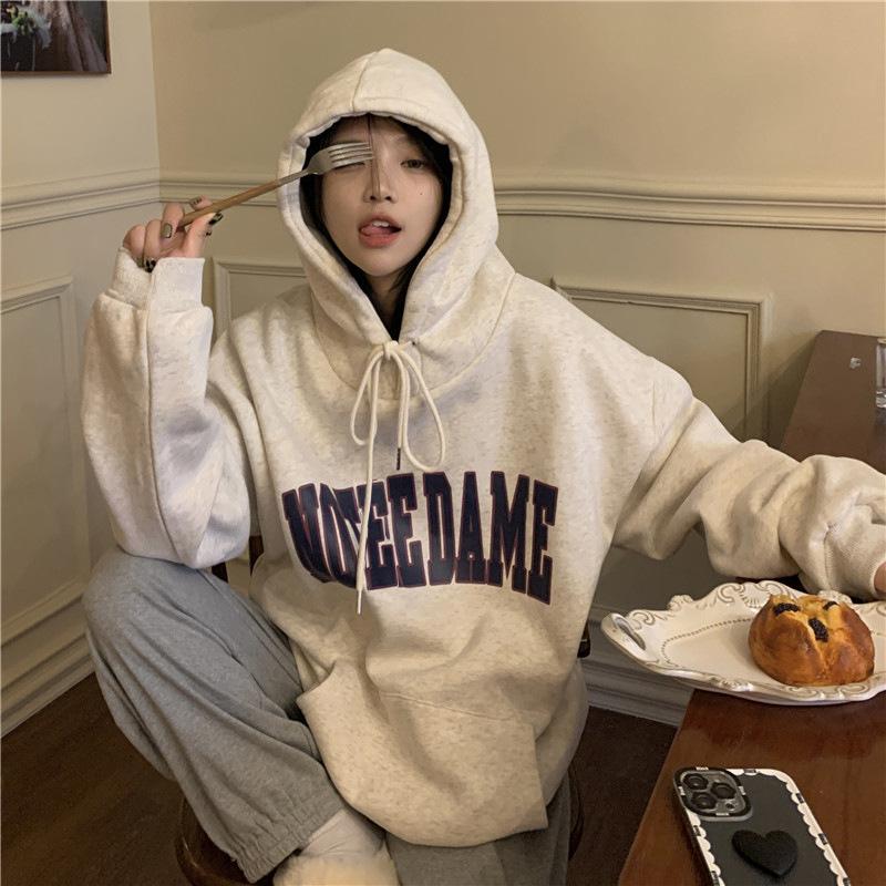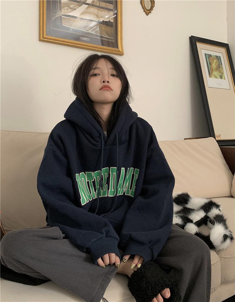 Sudadera con capucha de terciopelo para mujer 2025 Otoño e Invierno Nueva Talla Grande Estampada Suéter de Terciopelo Otoño e Invierno Americano Retro Top Suelto Trendy