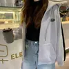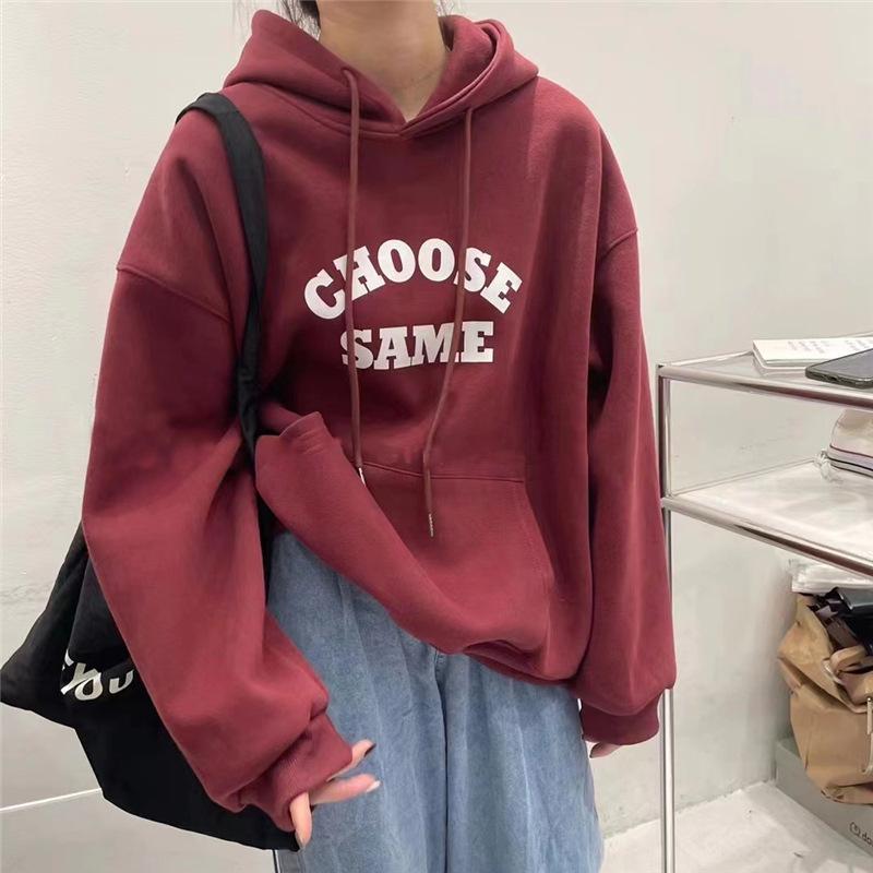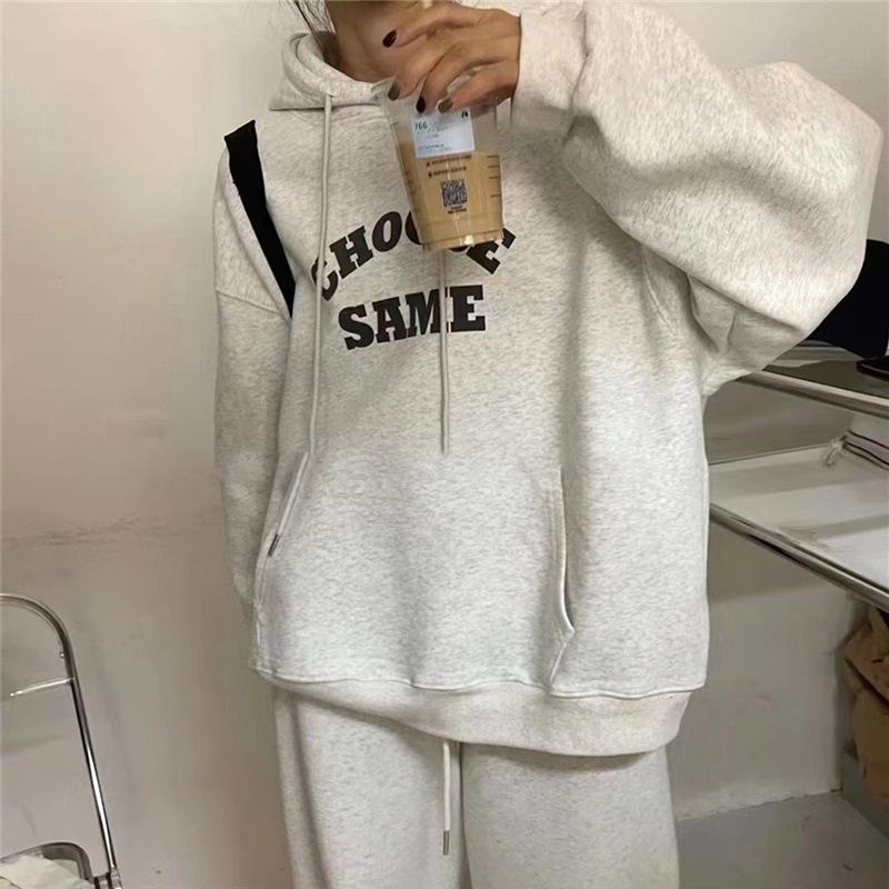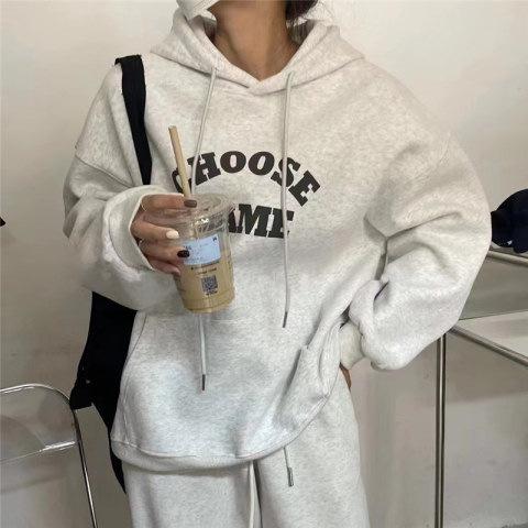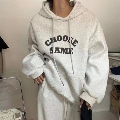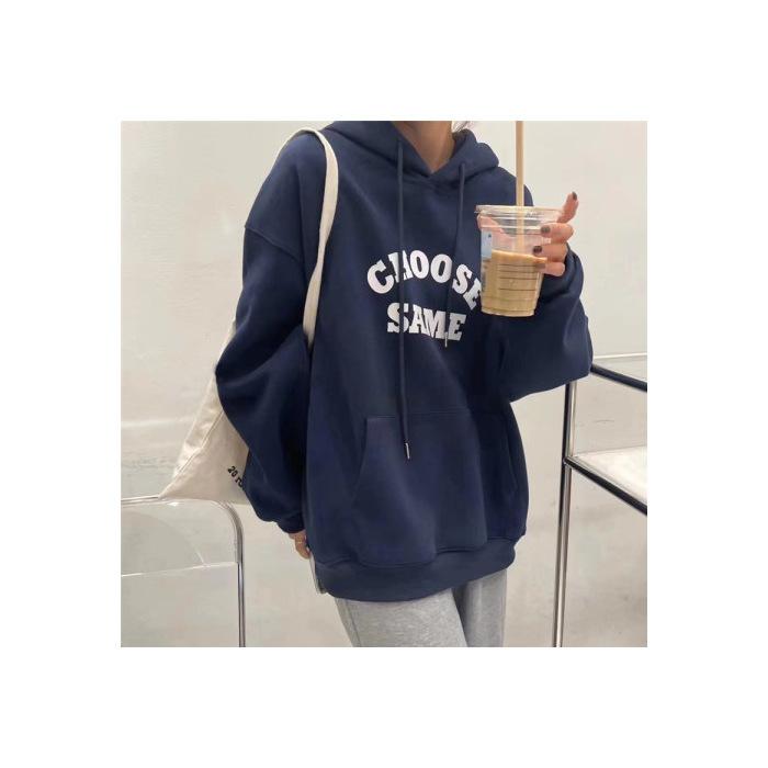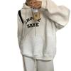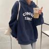 Sudadera con capucha retro estilo americano para mujer, otoño e invierno, nuevo estilo holgado, estampado de letras, forro polar, manga larga, abrigo