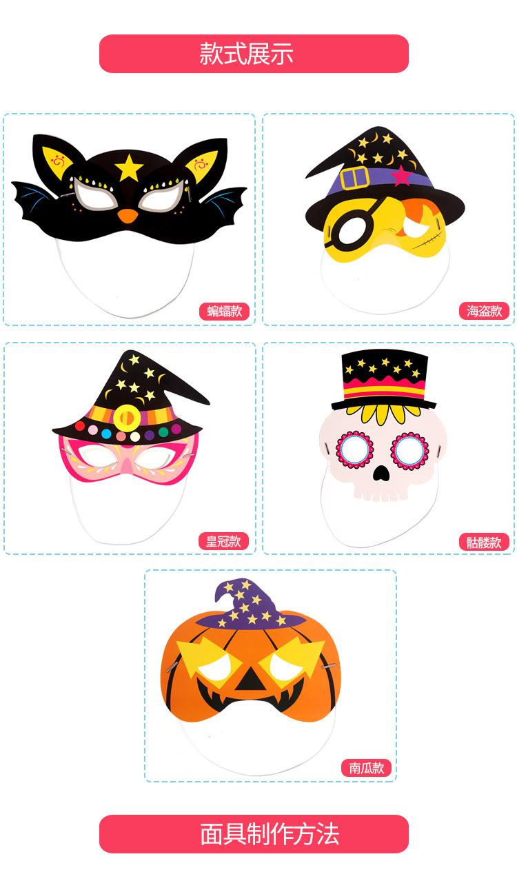 Máscara Divertida de Halloween Paquete de Materiales DIY Hecho a Mano para Niños Disfraz de Jardín de Infancia Baile de Disfraces Accesorios de Disfraz