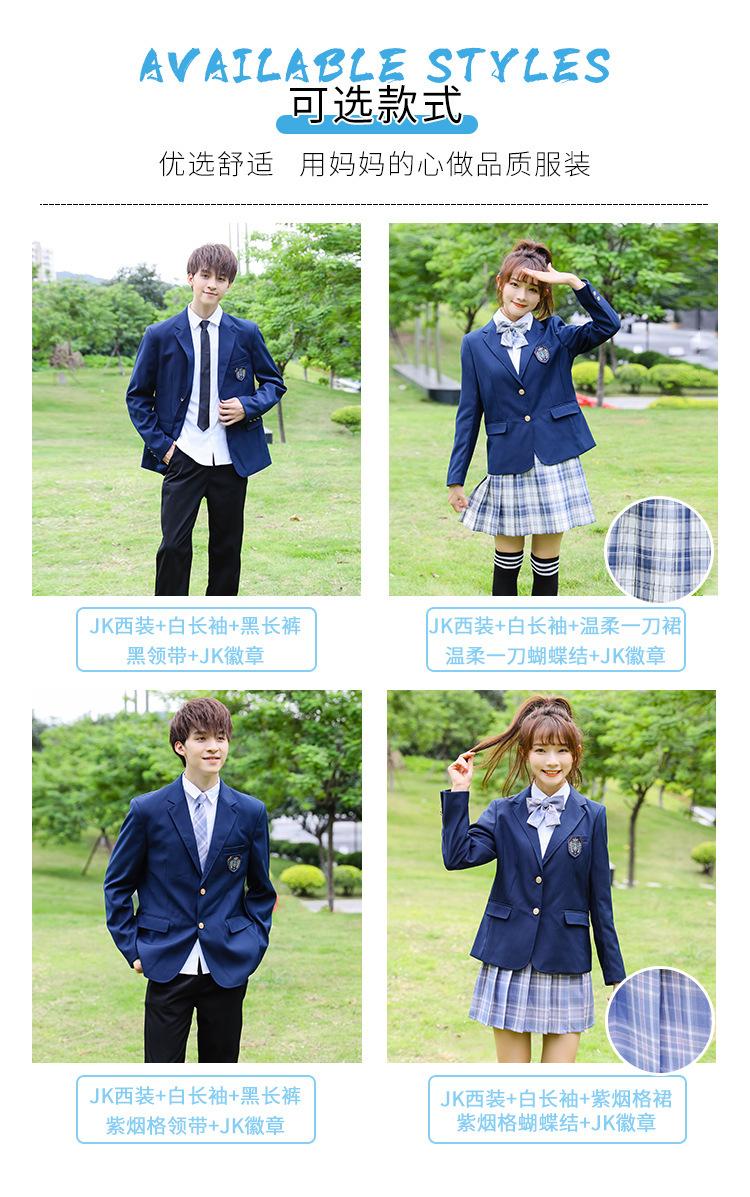 Women's JK suit + white long sleeve + gentle knife skirt + gentle knife bow + JK badge, Men's JK suit + white ...