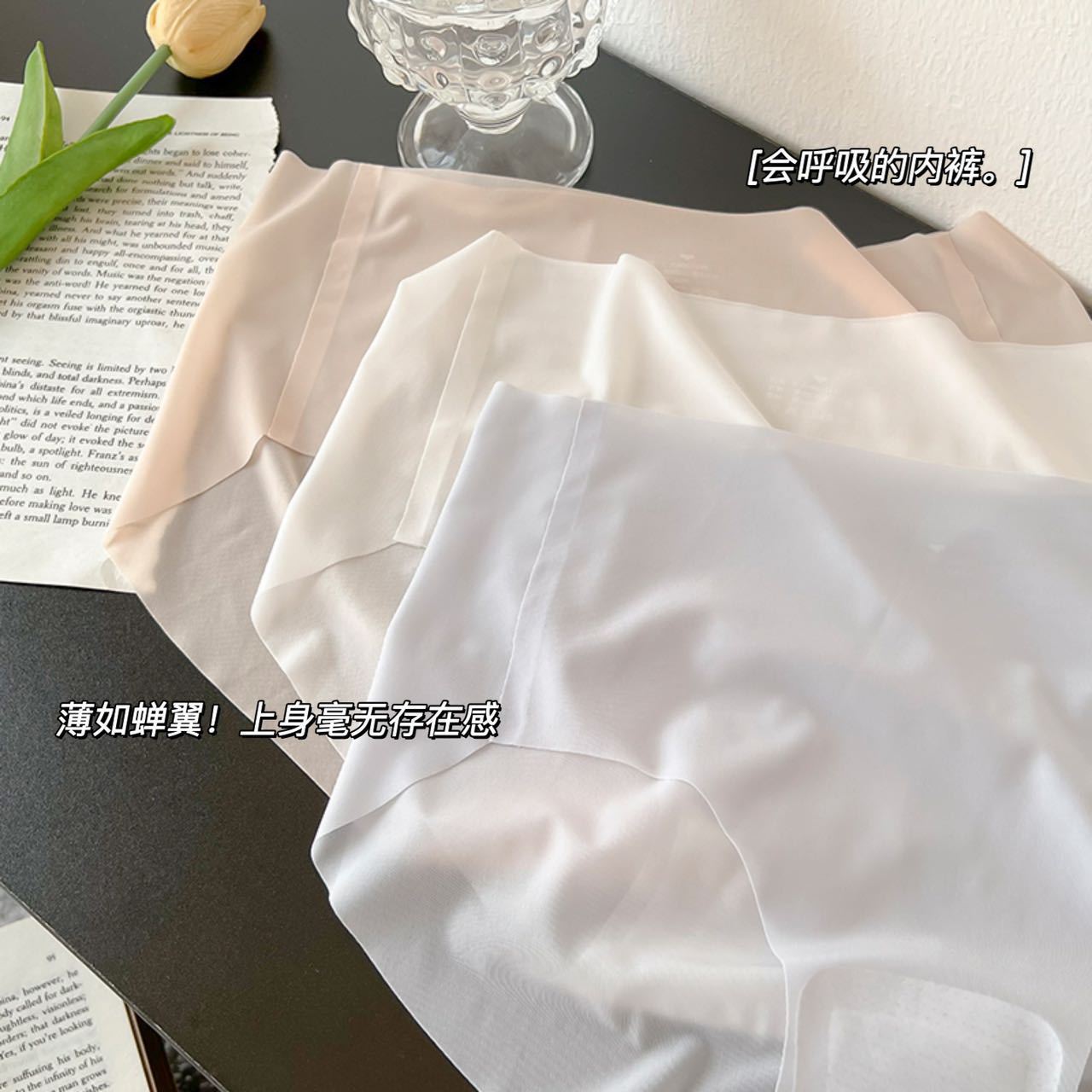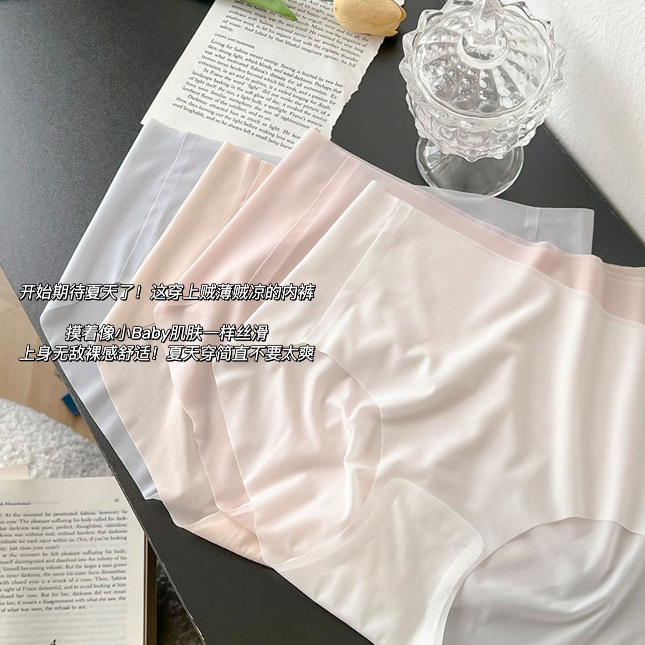 Braguitas Japonesas Sin Costuras de Seda de Hielo para Mujer Verano Delgadas Antibacterianas de Cintura Media Máscara Color Sólido Secado Rápido Sexy Braguitas Triángulo