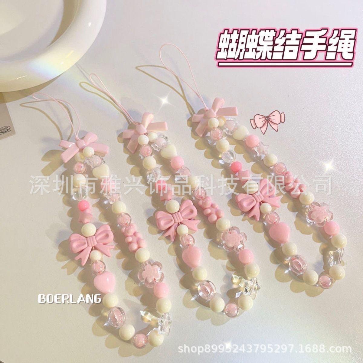 Ins nuevo cordón para teléfono móvil para mujer, fresco y dulce, cadena de cuentas colgante, corazón de amor, lazo, pulsera cordón para funda de teléfono móvil